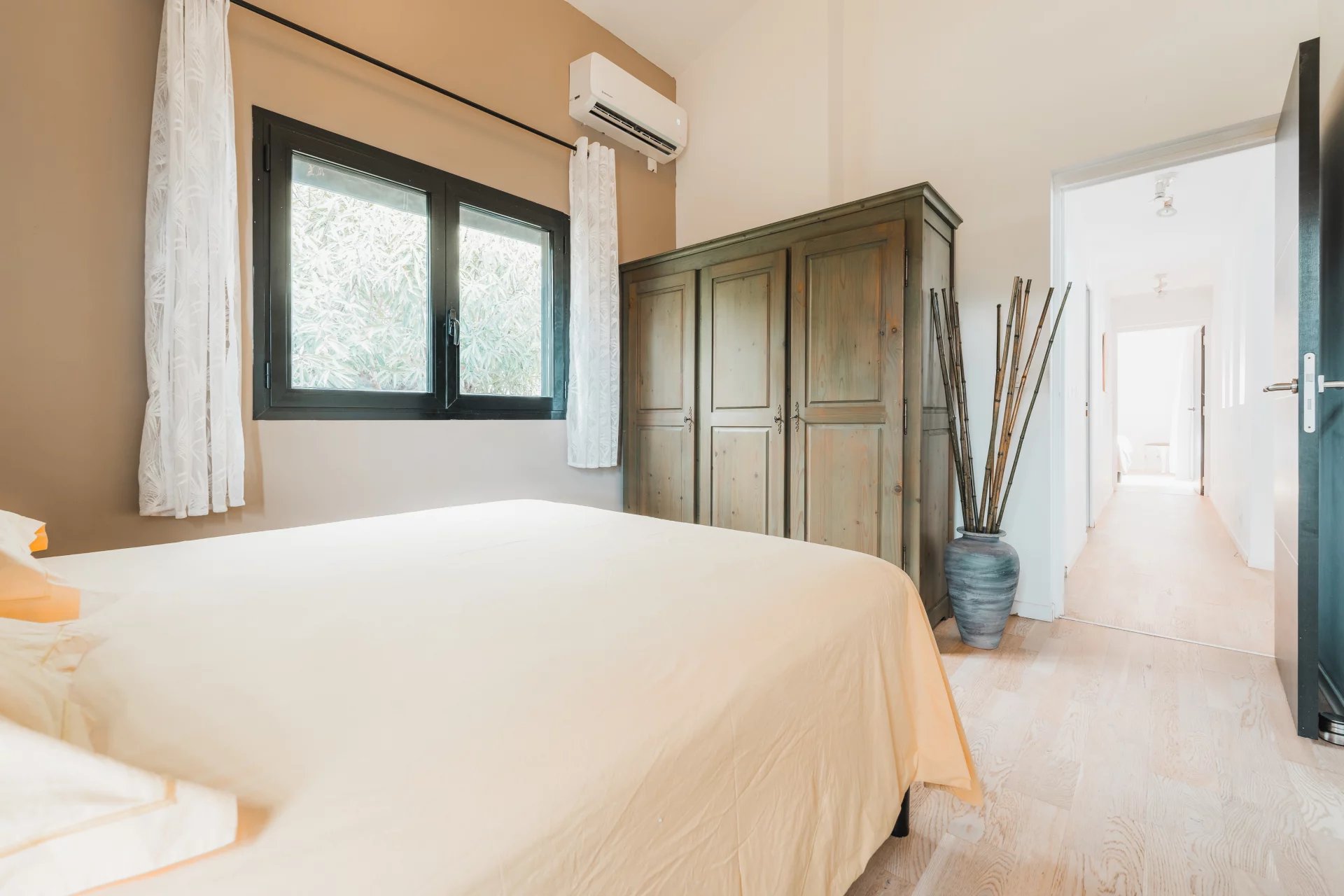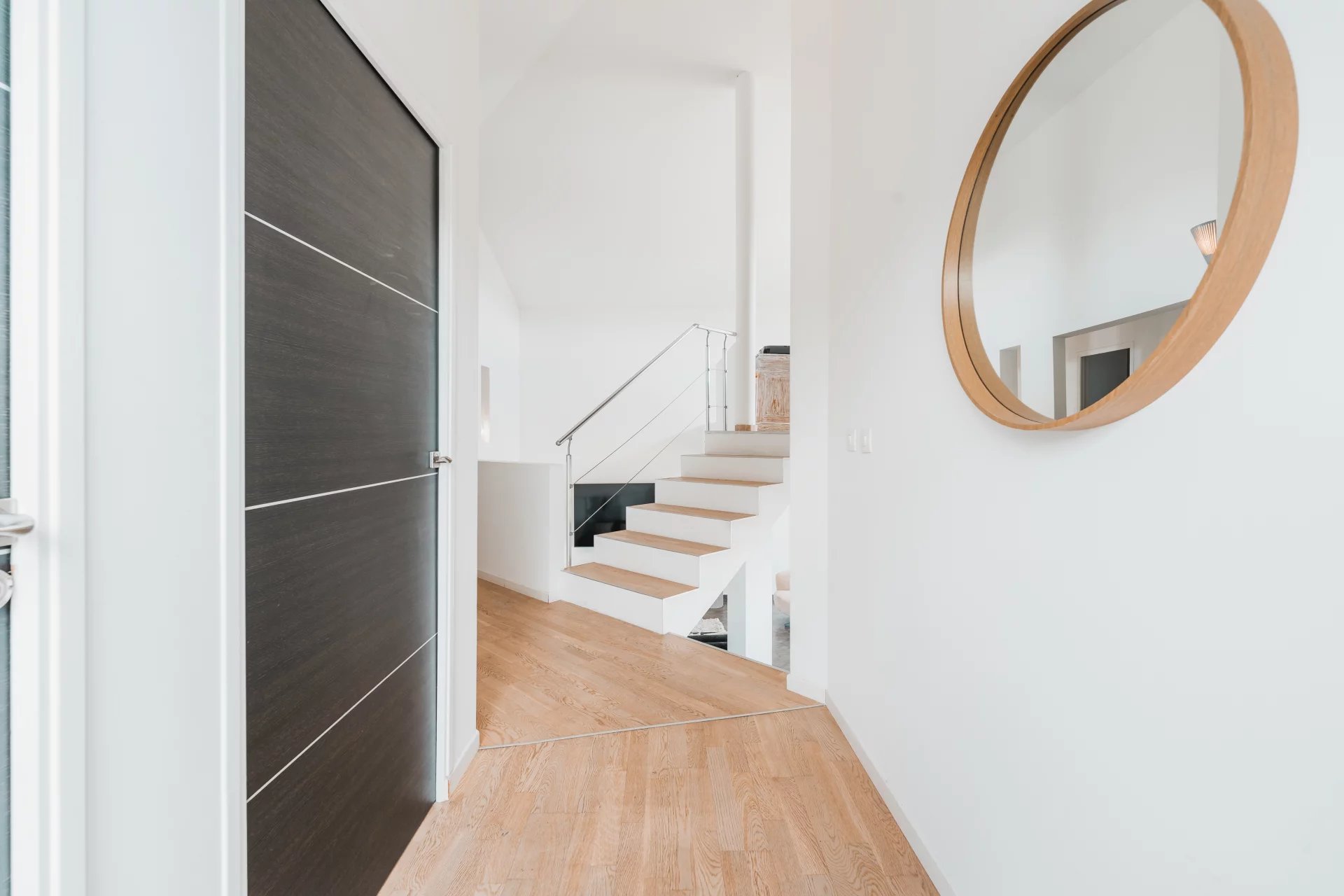 From the moment you step inside, the charm is undeniable. On the first level, enjoy a spacious open-plan living room bathed in natural light, enhanced by a majestic cathedral ceiling, creating an unparalleled sense of space and refinement. The open, high-end César kitchen, a true masterpiece of design and functionality, will delight gastronomy enthusiasts. A discreet dressing area completes this living space.