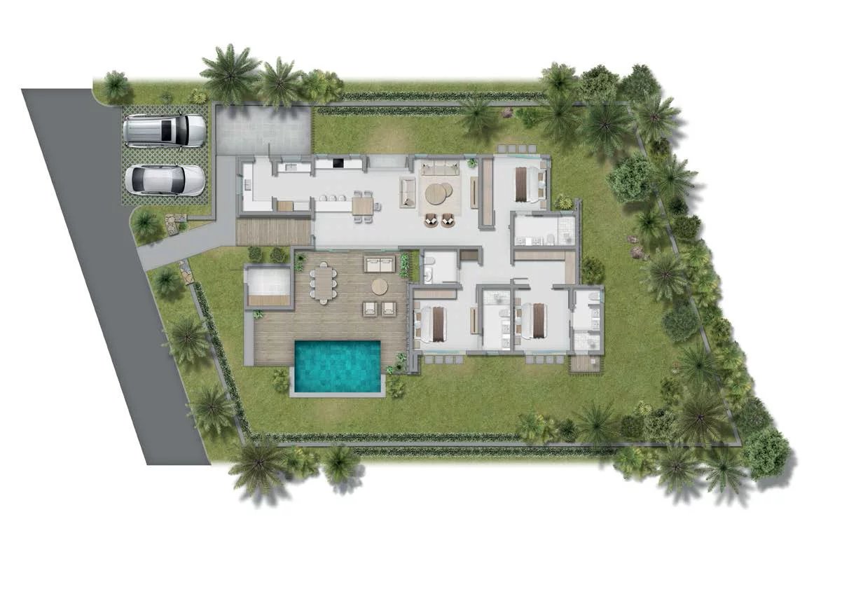 This villa, seamlessly integrated into the natural surroundings of Domaine de Palmyre, offers five different floor plan options, allowing you to choose the layout that best suits your lifestyle. It benefits from a dual east-west orientation, allowing natural light to flood the living spaces and create a warm atmosphere throughout the day.