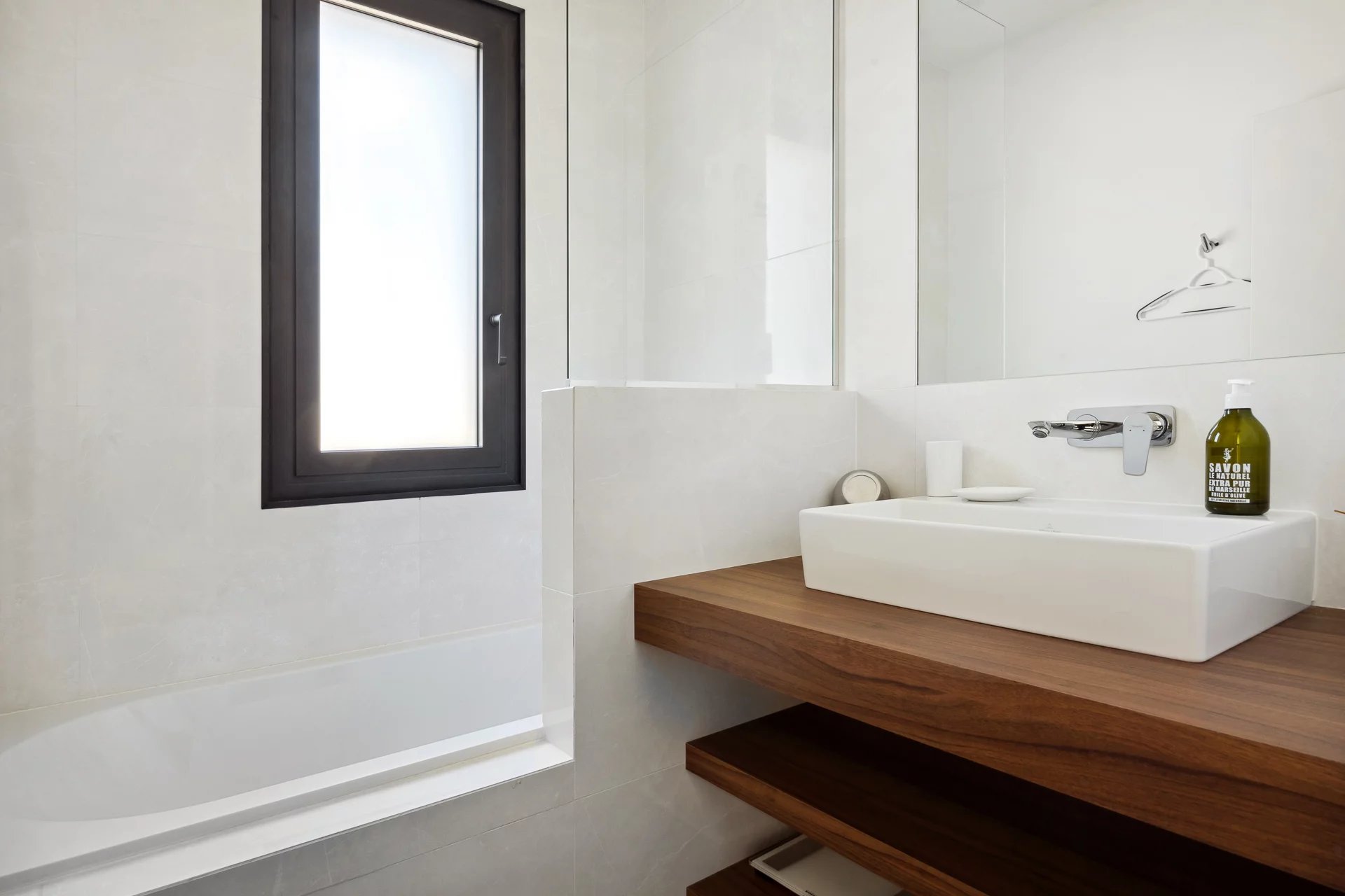 The villa features an entrance, a living room, a dining area, and an open-plan, fully equipped kitchen on the ground floor, as well as a utility room. The living areas open onto a beautiful covered terrace and the swimming pool. There is also a bedroom with 4 bunk beds and an en-suite bathroom, as well as a bedroom with a shower room.