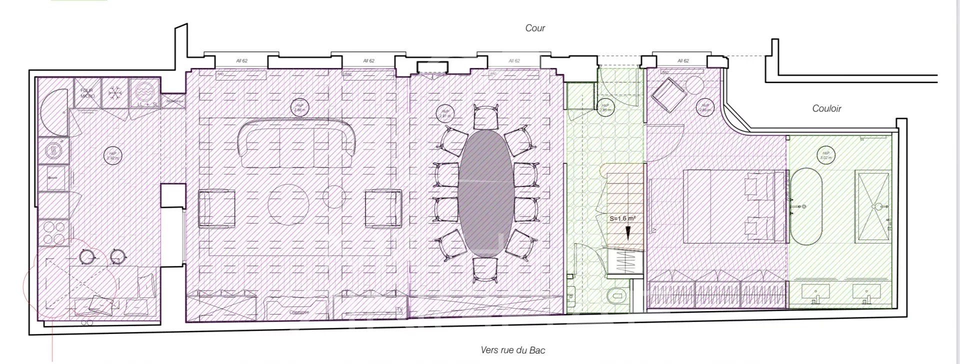 Completely renovated by an architect, this residence offers an exceptional and unique living space in the heart of Rue du Bac, within a peaceful and highly secure environment.