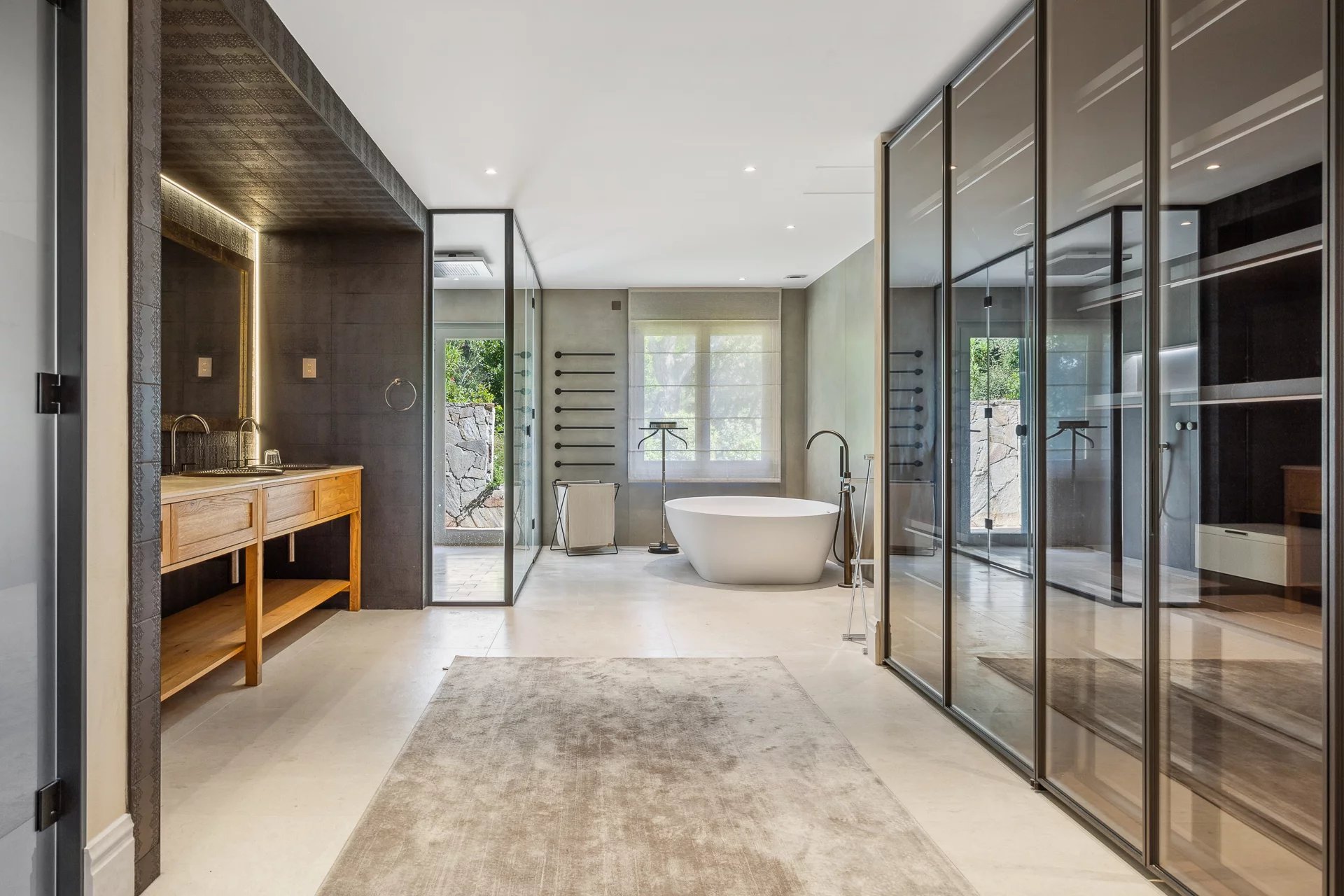 Renovated with meticulous care, every detail has been thoughtfully crafted to the highest standards, blending an original and modern style with a warm and inviting atmosphere. Highlights include a vaulted living space with a fireplace, a spacious master suite with a dressing room, a private terrace, and a mezzanine office, as well as five additional bedrooms. A long terrace extends across the entire ground floor, allowing every room to open onto breathtaking sea views. The spa, with its natural rock features, is another remarkable space.