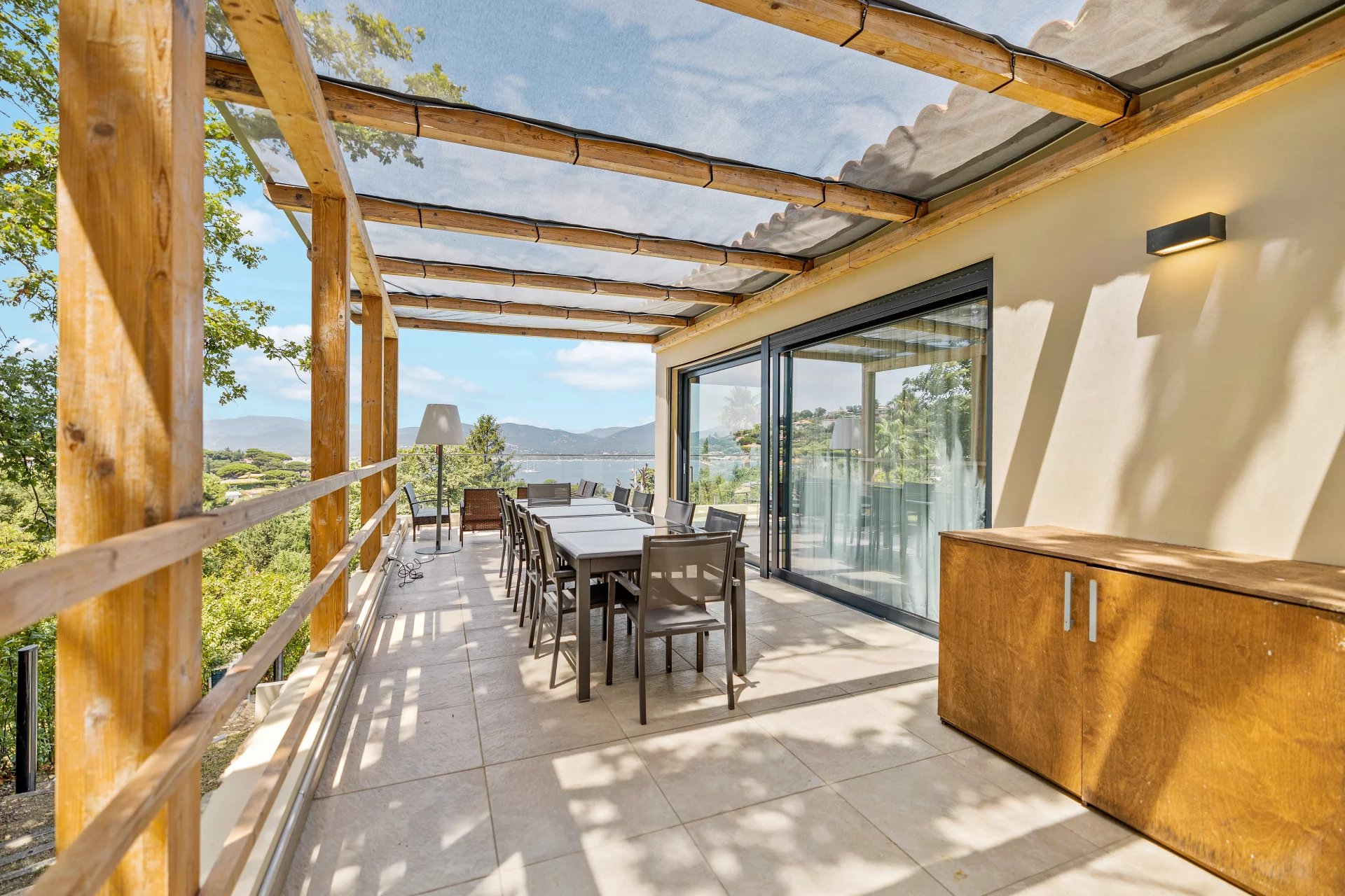 Situated in a peaceful setting in the heights of the secure Sinopolis residence, just a few minutes from Saint-Tropez, this magnificent new villa boasts wonderful sea views.