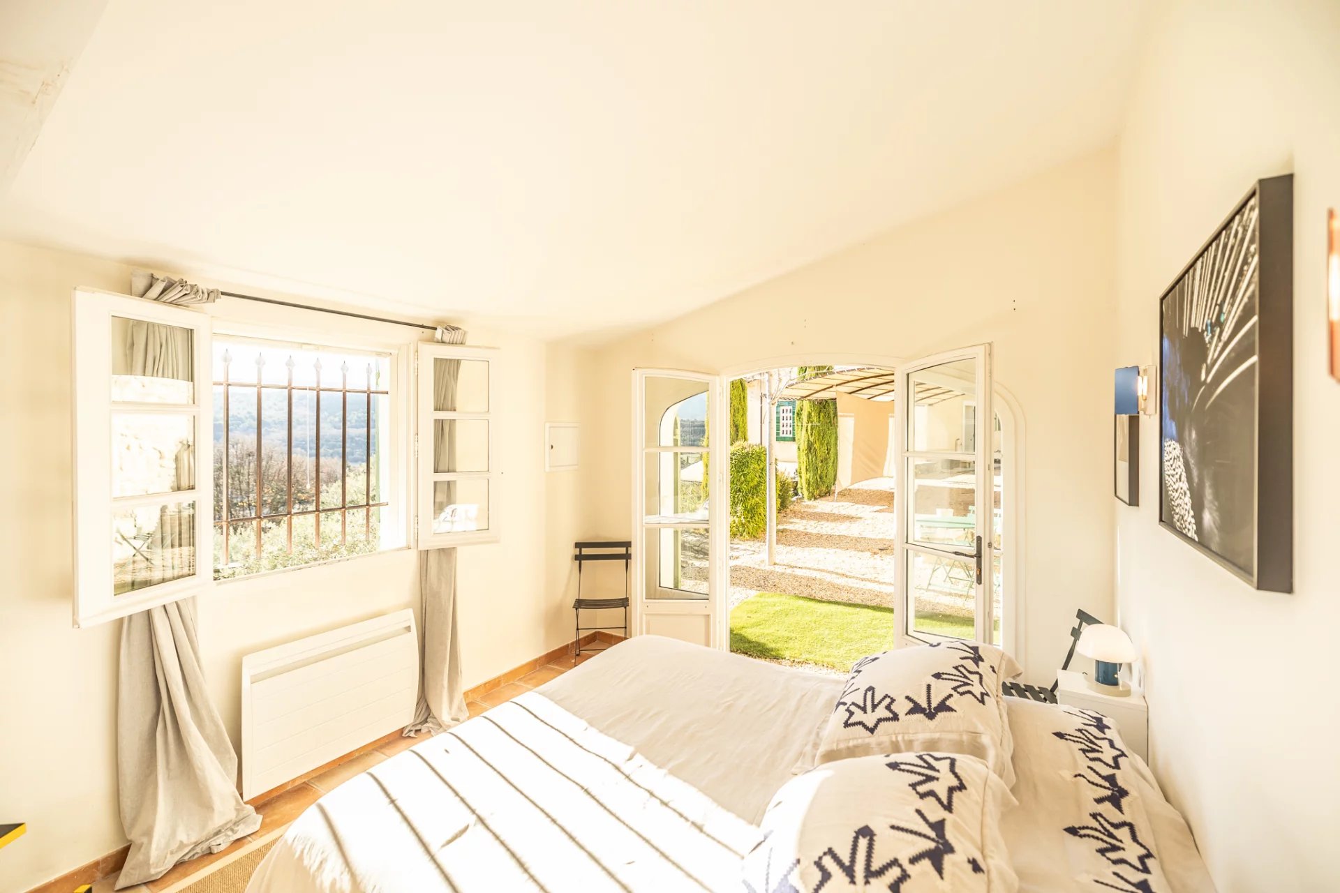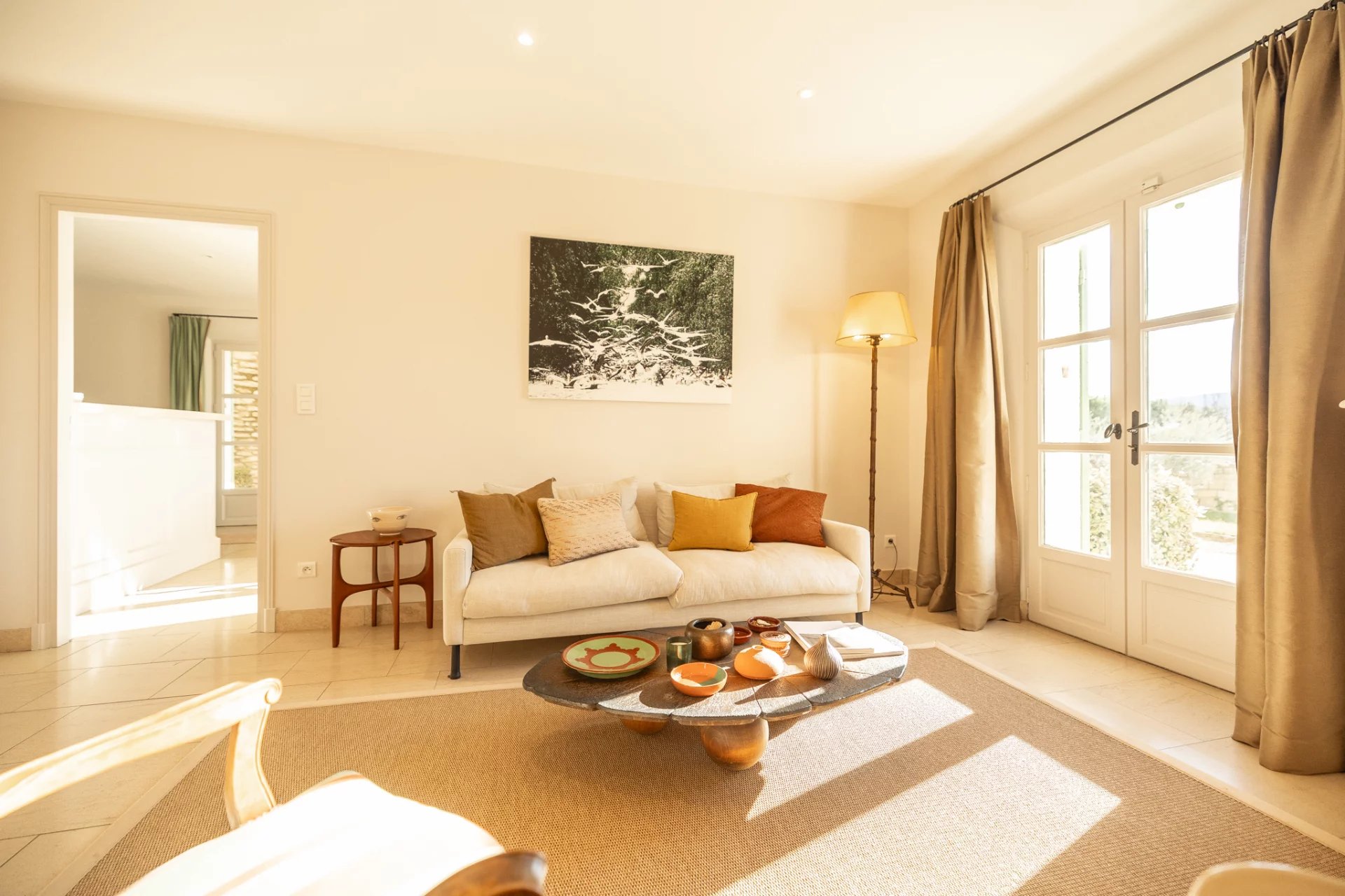 Inside, four beautiful bedrooms, each with its own bathroom, and living spaces as spacious as they are welcoming, will enable you to enjoy the peaceful atmosphere that reigns in this house, but with the Luberon mountain visible from every room.