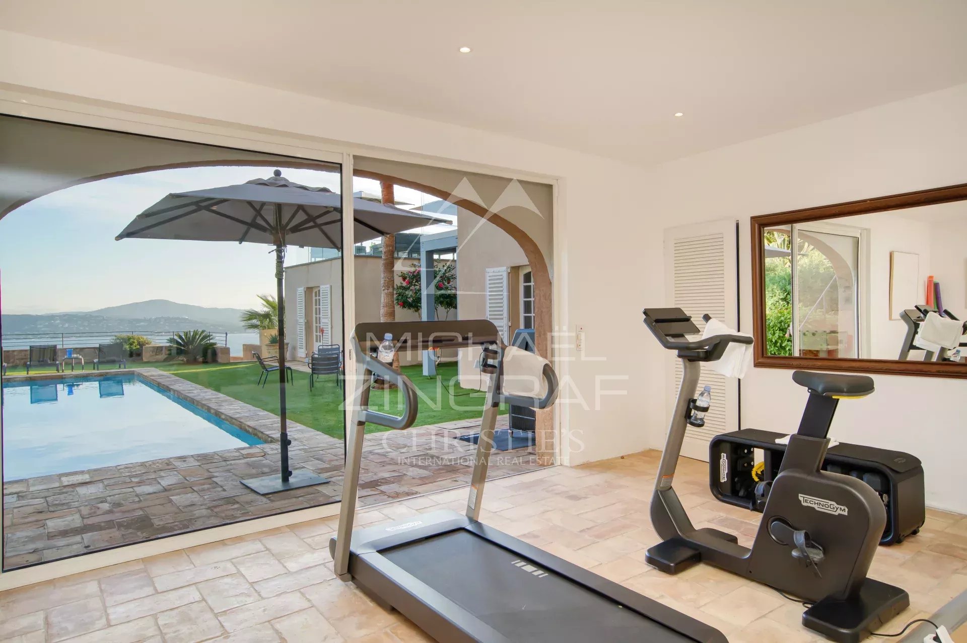The villa overlooks the entire Gulf of Saint-Tropez, offering breathtaking panoramic views of the sea, the surrounding hills, and the legendary village of Saint-Tropez.