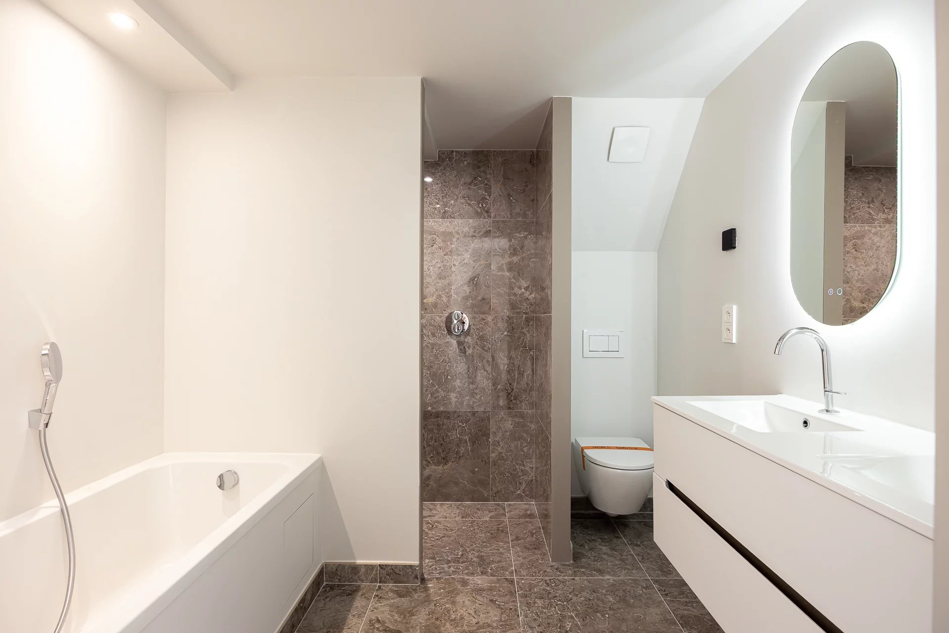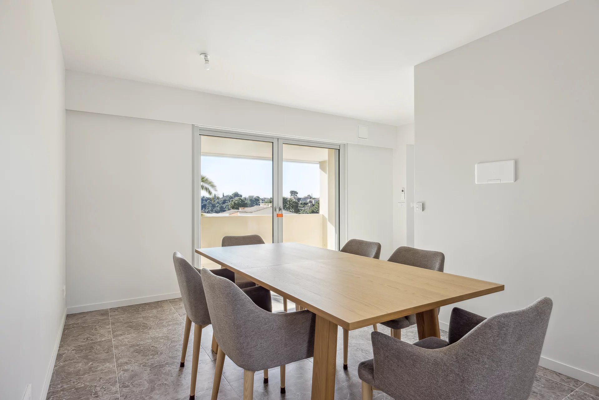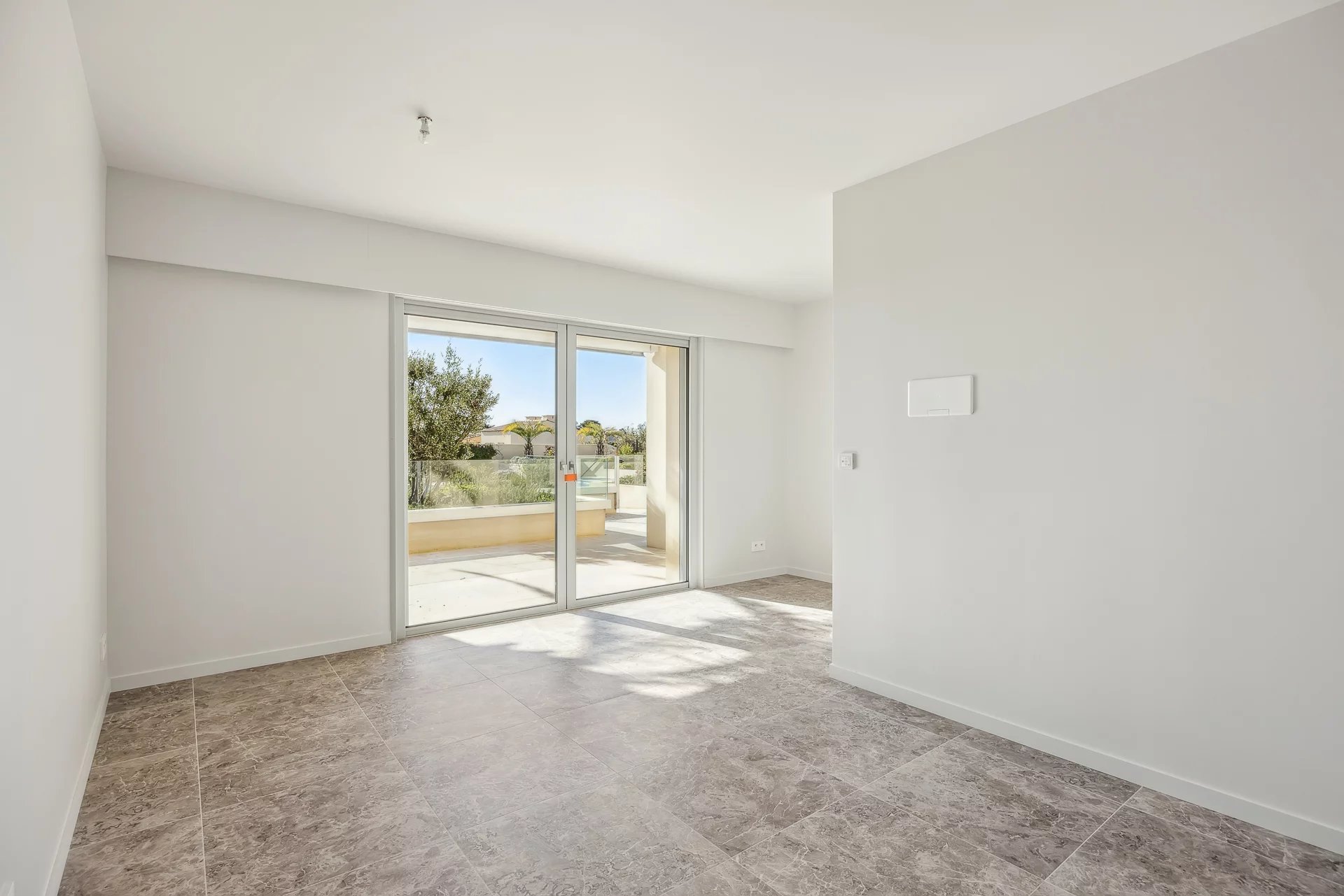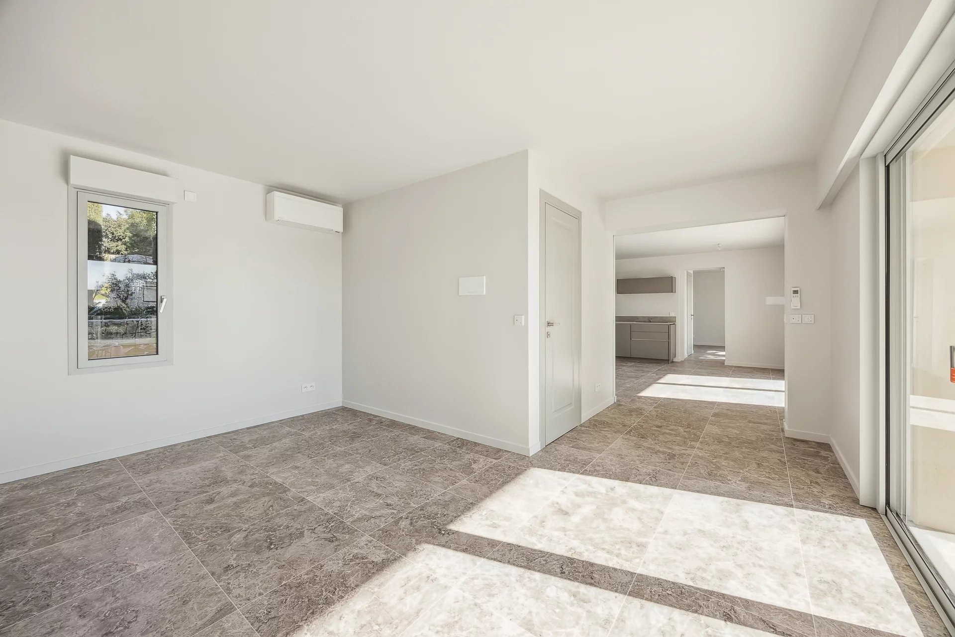 The third apartment, approximately 69 m², consists of an entrance with a guest toilet, a living room/dining area with an open-plan kitchen opening onto a large terrace. It has two bedrooms, two shower rooms with toilets, as well as parking spaces.