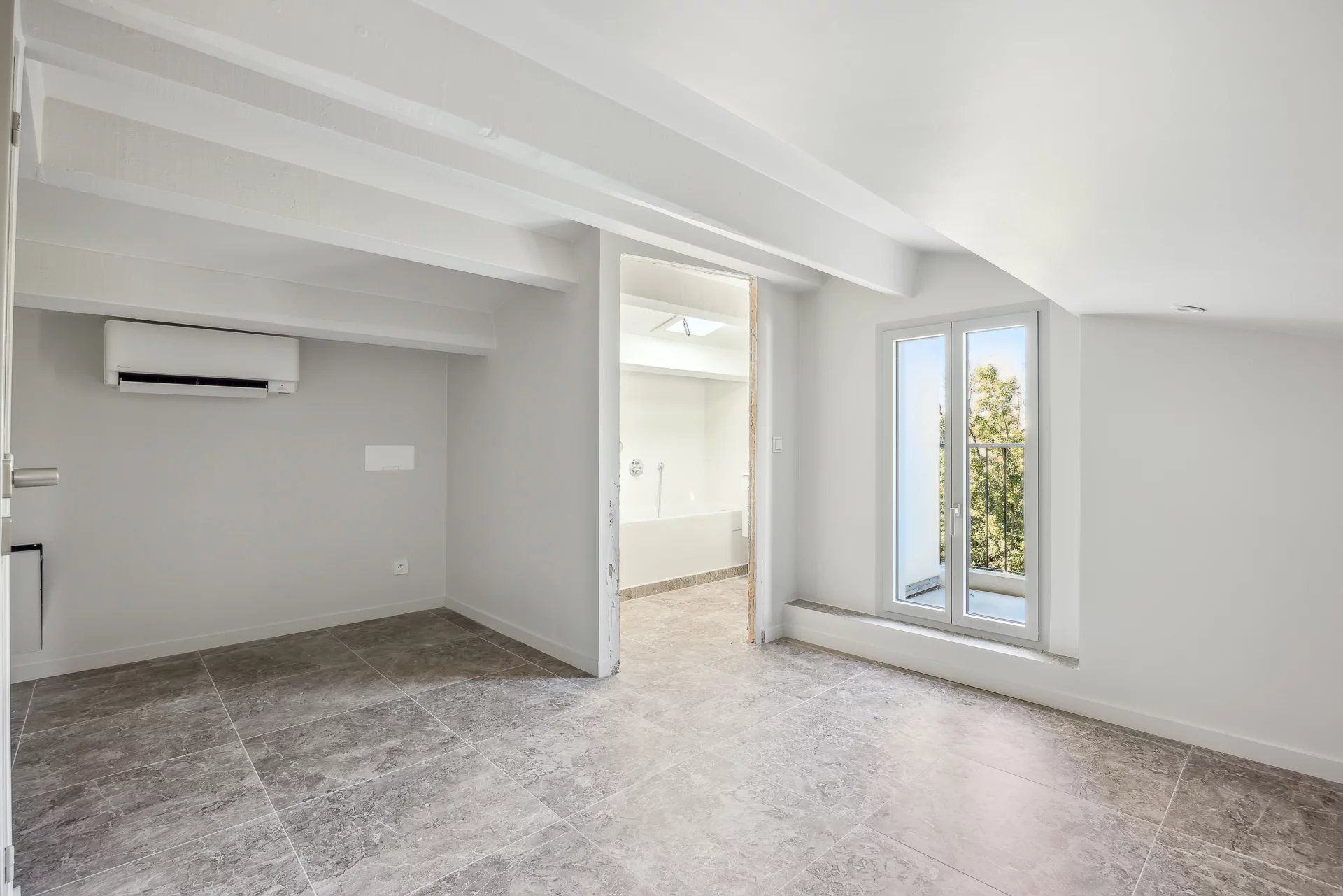 The first apartment, approximately 200 m², includes an entrance with built-in closets, a spacious living room/dining area bathed in light thanks to its large bay windows, as well as a fully equipped open-plan kitchen. It has three en-suite bedrooms, a guest toilet, a wine cellar, an additional cellar, and an open garage.