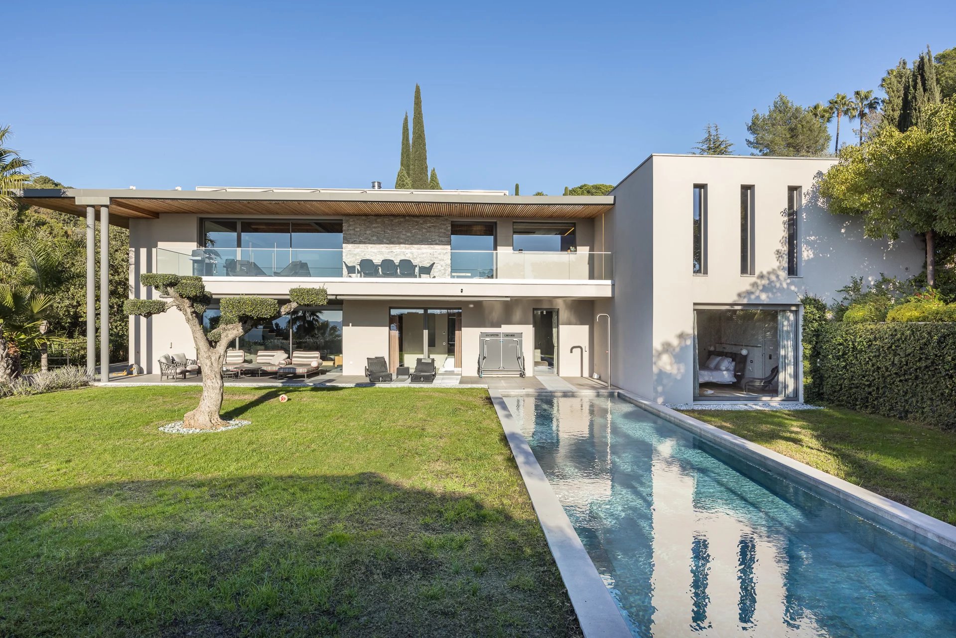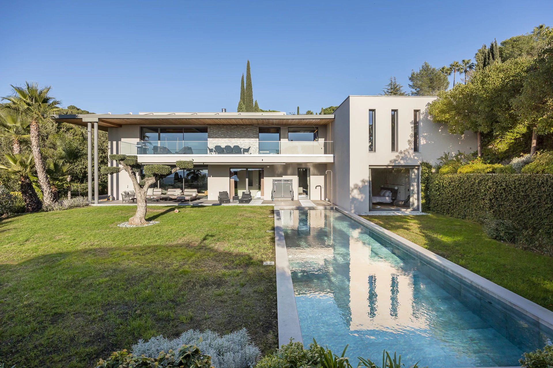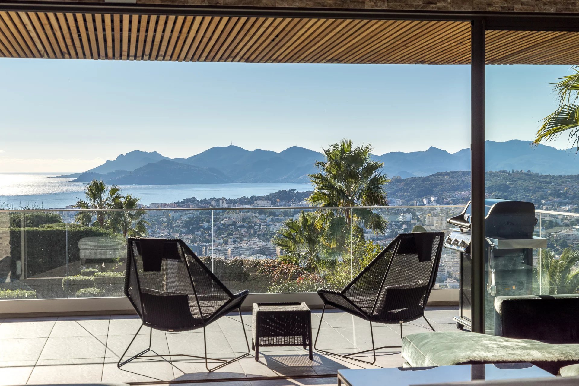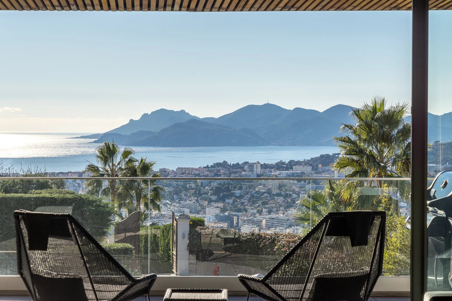 Rare, a few minutes from the city center of Cannes, in the heart of a closed domain, exceptional contemporary property with refined decoration, approximately 362m². Offering a sea view over the bay of Cannes and the Estérel, 5 en-suite bedrooms, living room, dining room, kitchen. Land with fully landscaped swimming pool with sauna and garage.