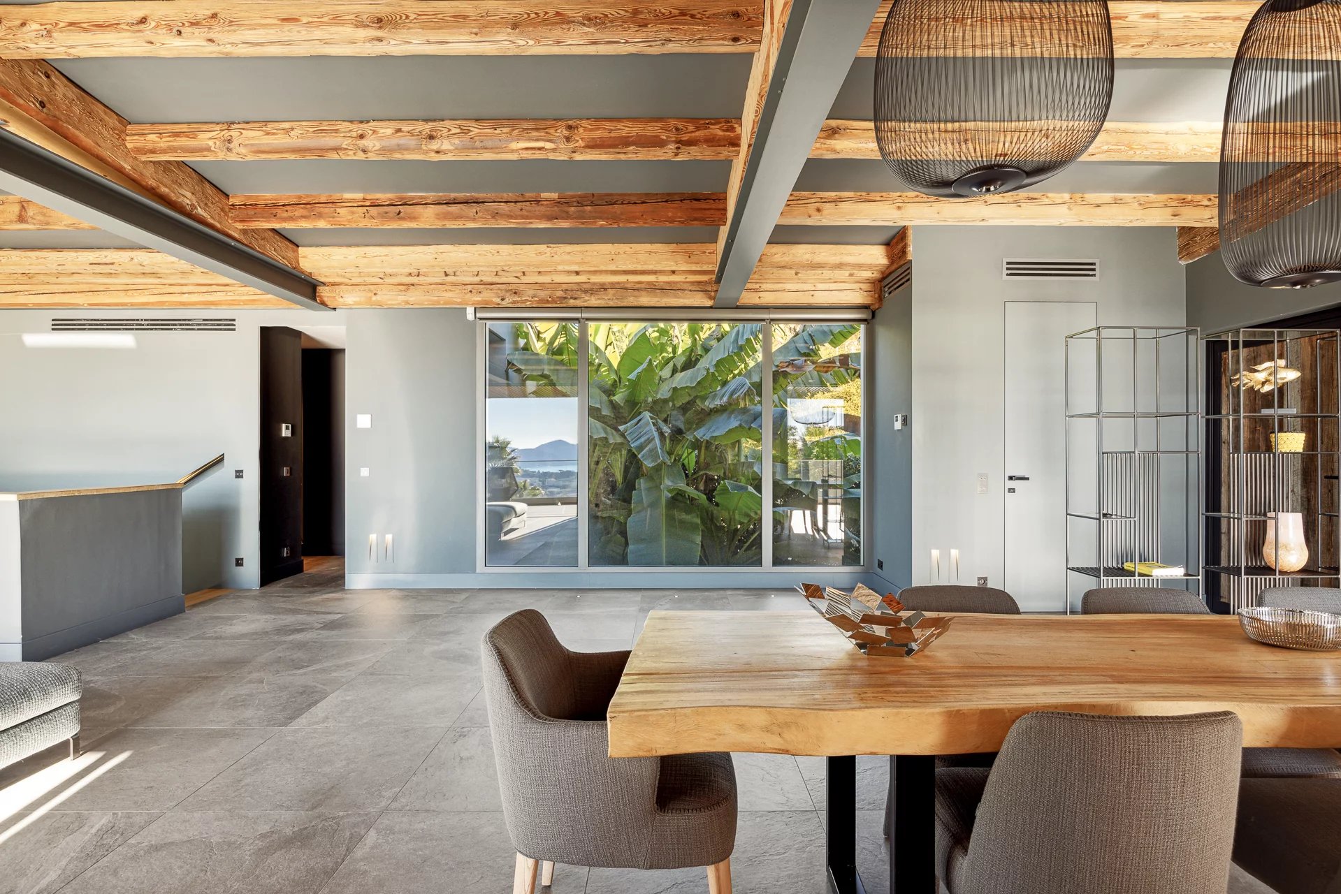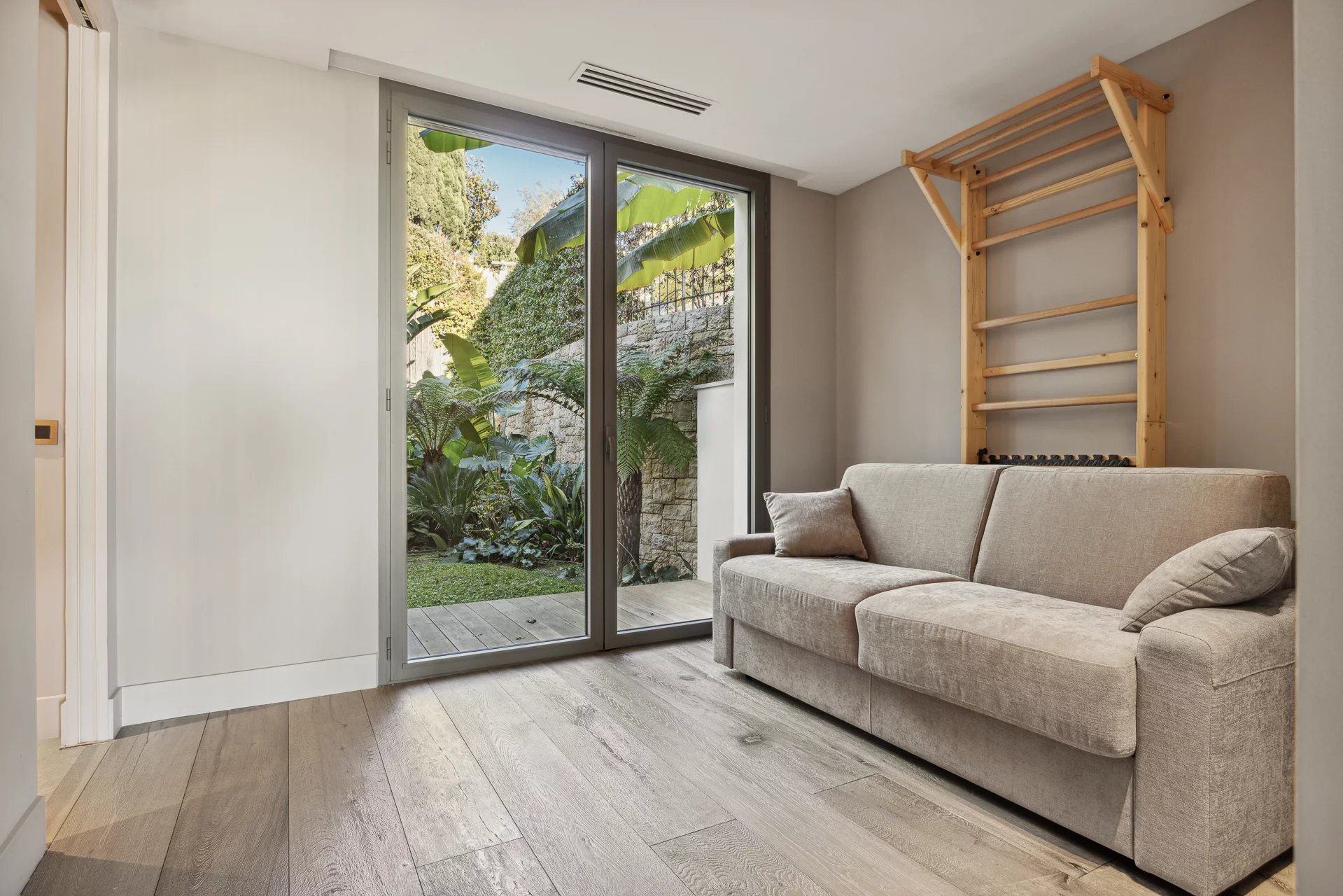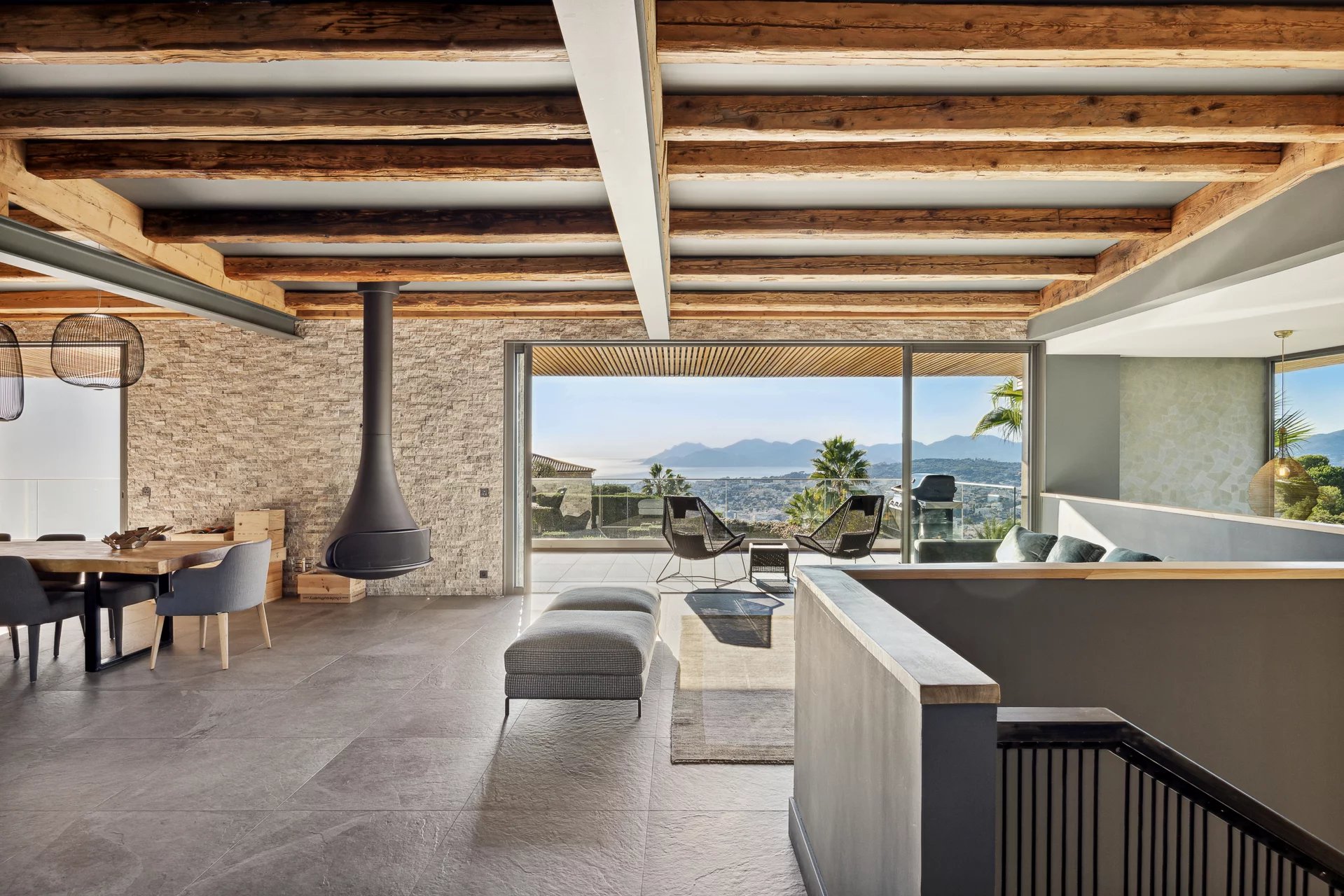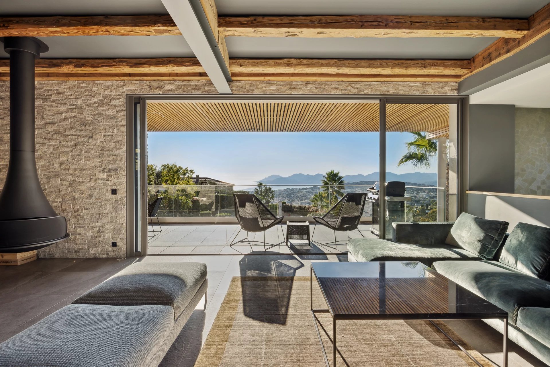 Rare, a few minutes from the city center of Cannes, in the heart of a closed domain, exceptional contemporary property with refined decoration, approximately 362m². Offering a sea view over the bay of Cannes and the Estérel, 5 en-suite bedrooms, living room, dining room, kitchen. Land with fully landscaped swimming pool with sauna and garage.