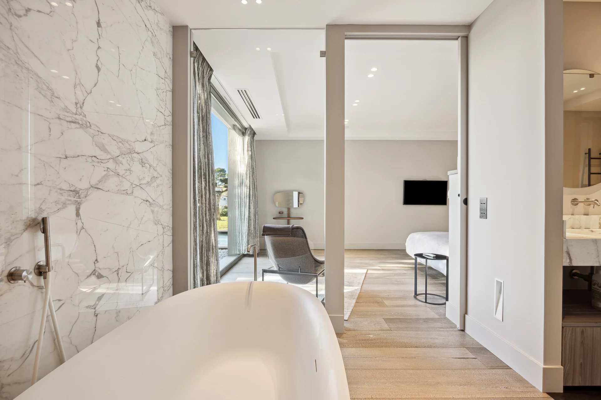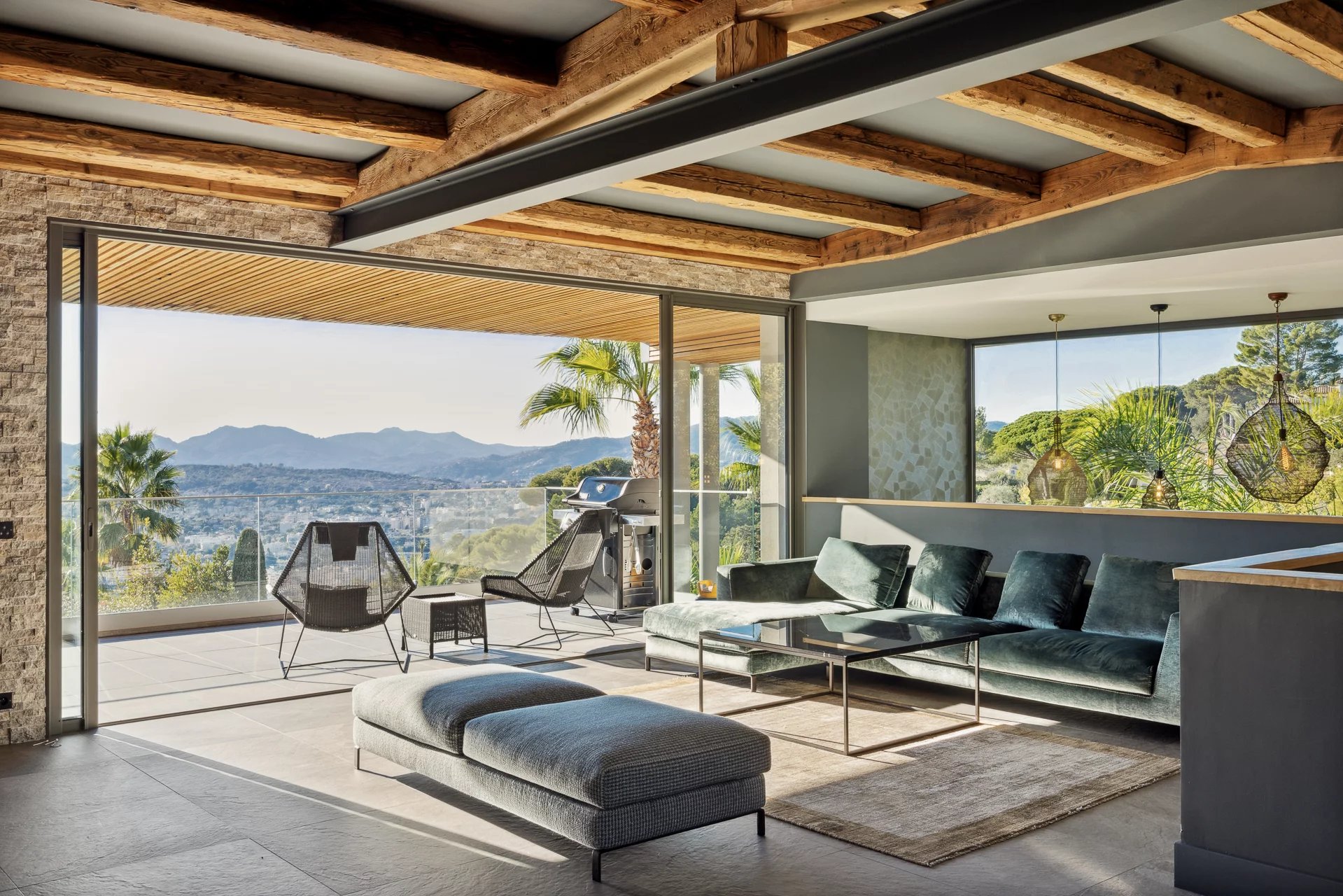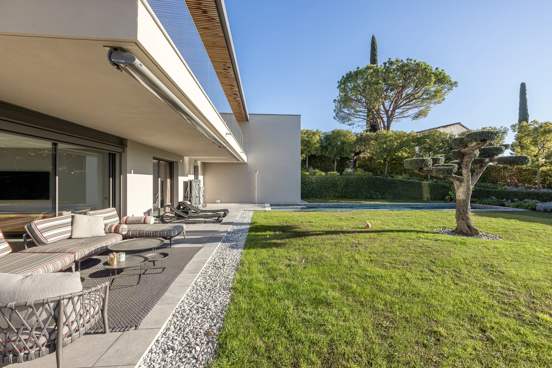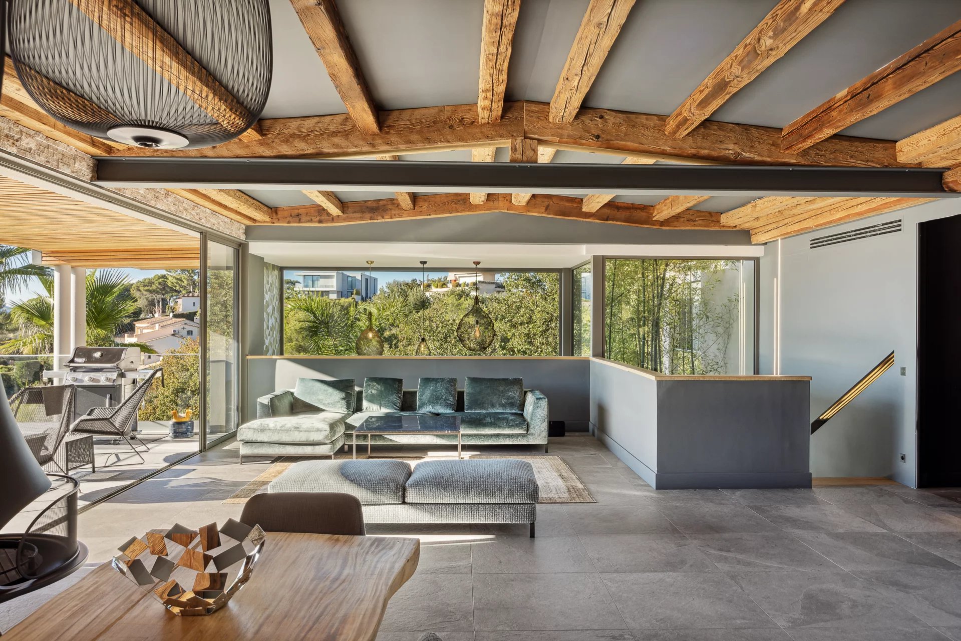 Rare, a few minutes from the city center of Cannes, in the heart of a closed domain, exceptional contemporary property with refined decoration, approximately 362m². Offering a sea view over the bay of Cannes and the Estérel, 5 en-suite bedrooms, living room, dining room, kitchen. Land with fully landscaped swimming pool with sauna and garage.