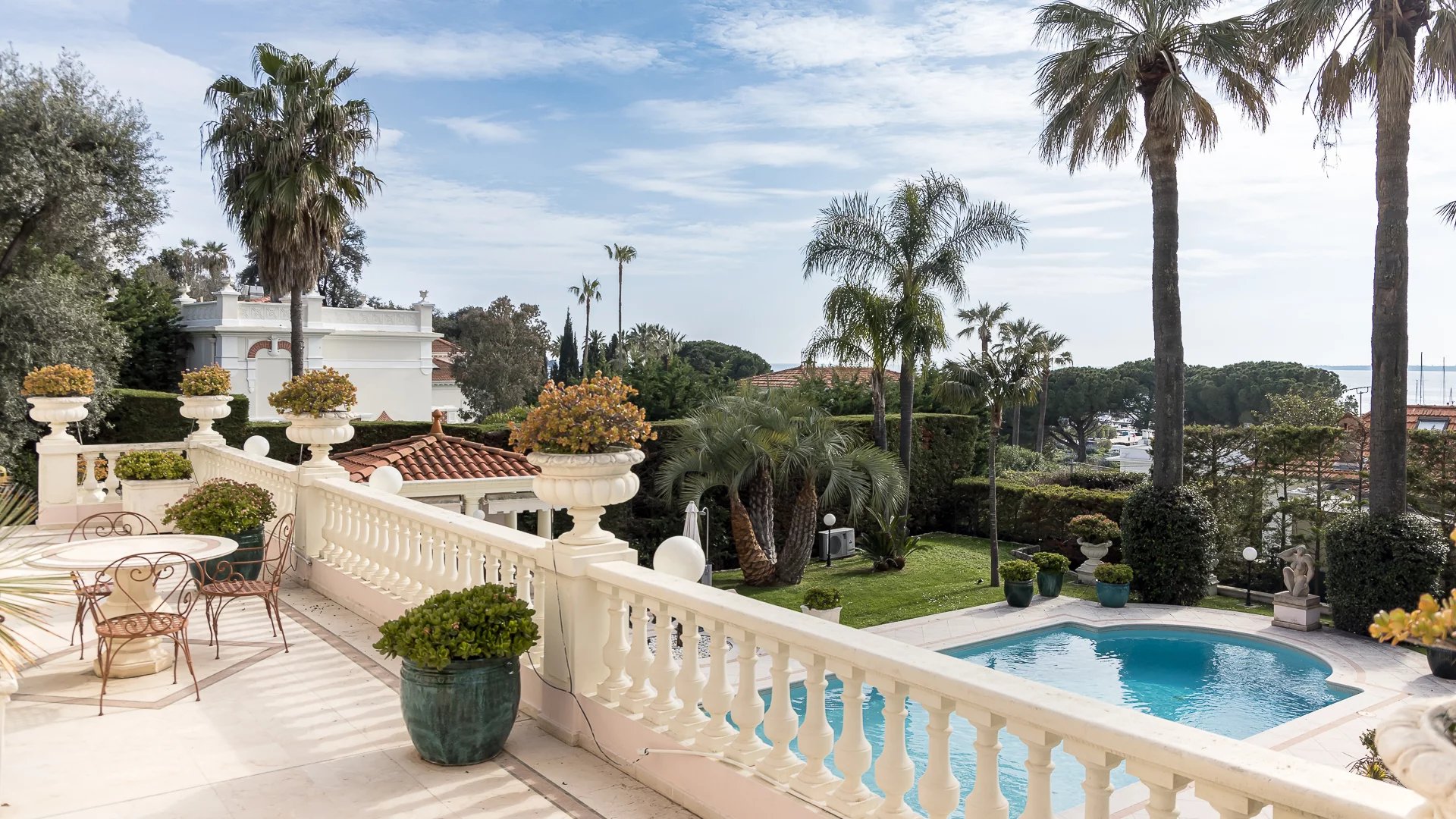 Magnificent Belle Époque style property established in 1901, nestled on the western slope of Cap d'Antibes. This historic residence offers nearly 400 square meters of living space, located on a flat plot of 2,400 square meters.