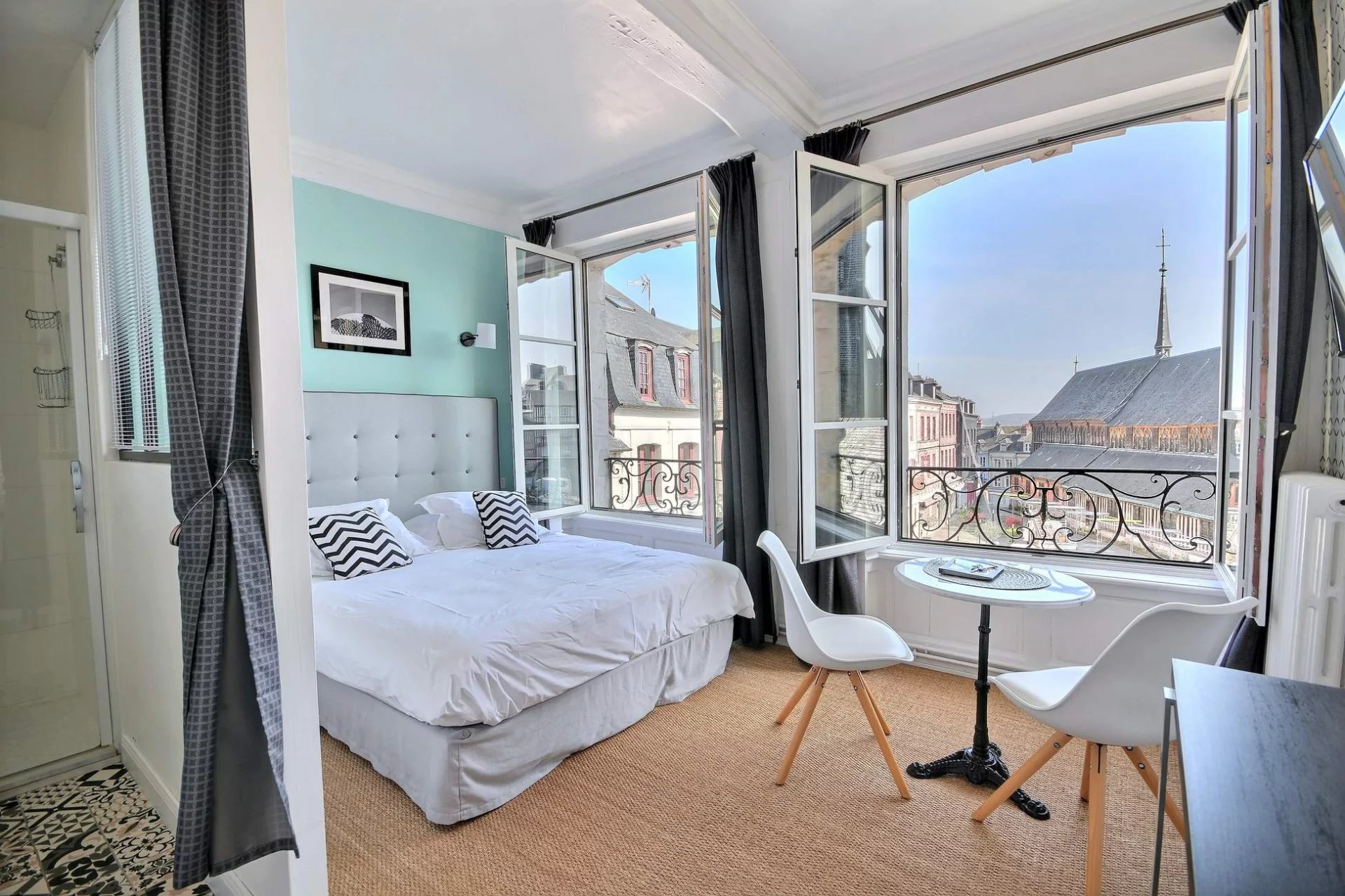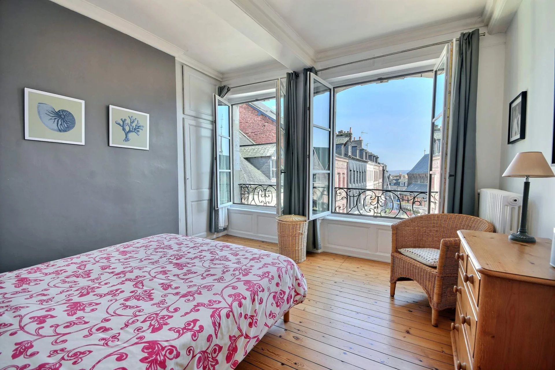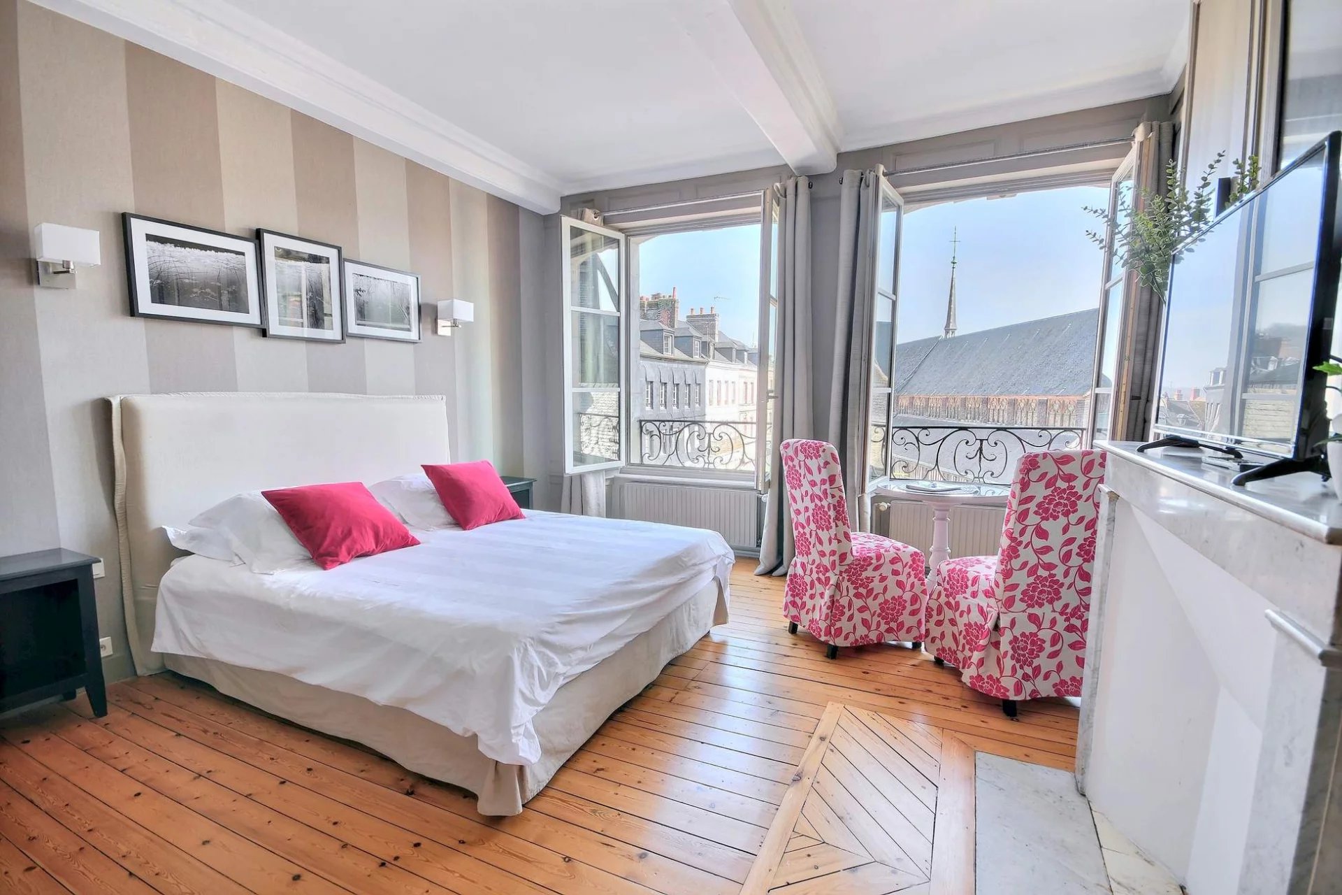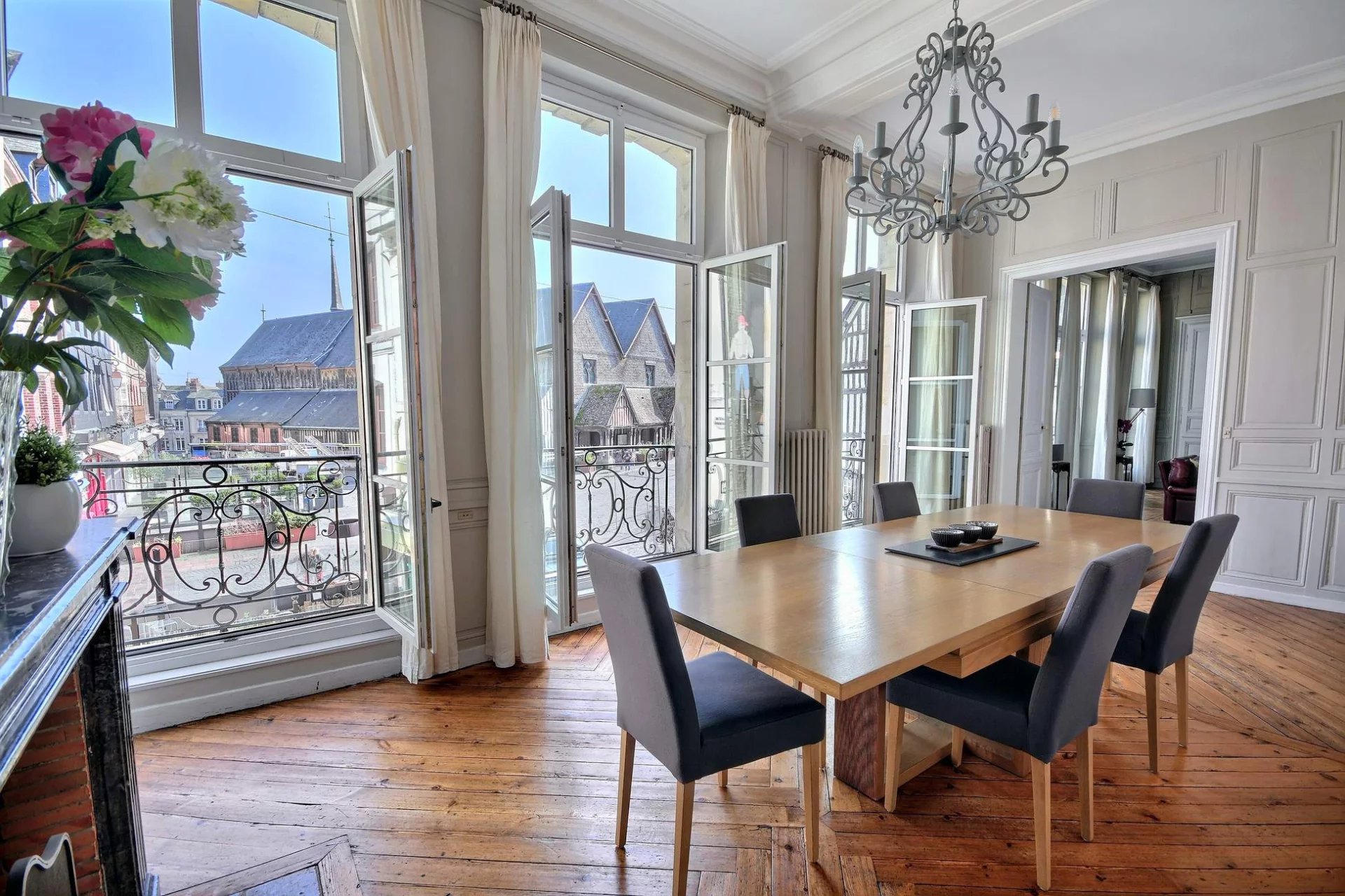 The large windows provide plenty of light and a magnificent view of the Church of Sainte Catherine, the jewel of Honfleur.