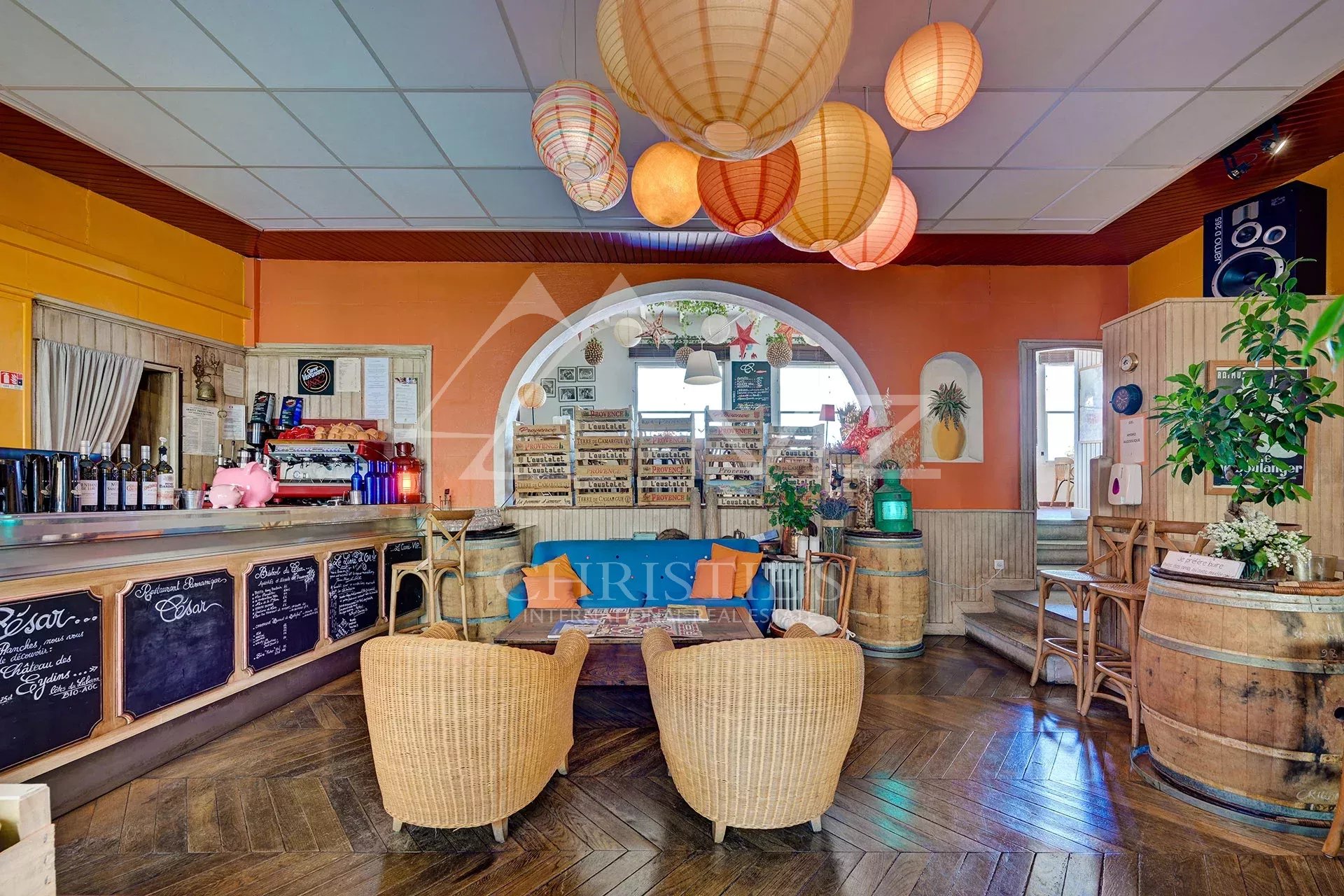 The ground floor is divided between the reception area with a bar, the hotel lobby, and the raised restaurant room, which can seat about 40 people and offers a superb view.