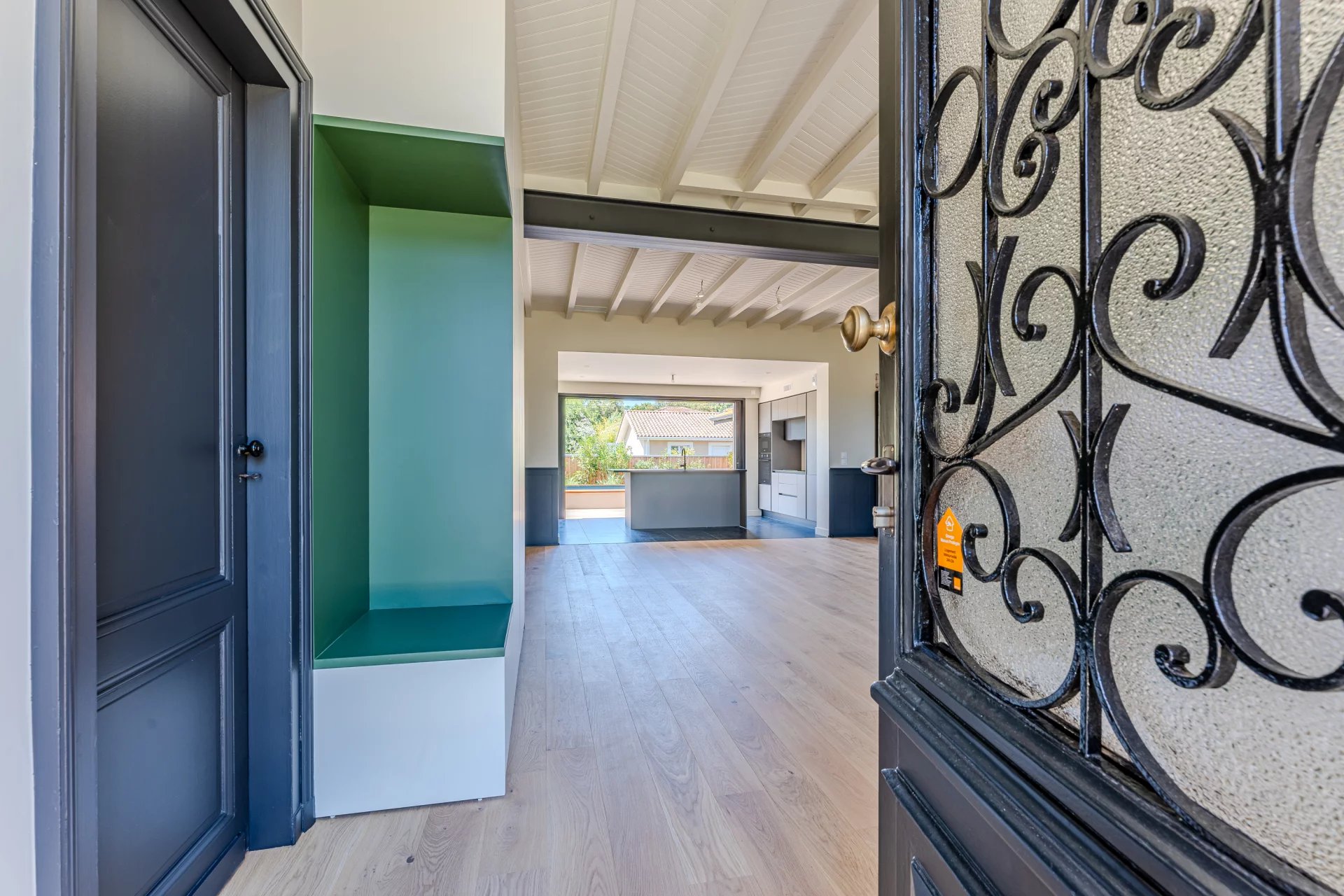 This renovated house in Gujan Mestras offers a pleasant living space with a bright living room equipped with a modern kitchen.
