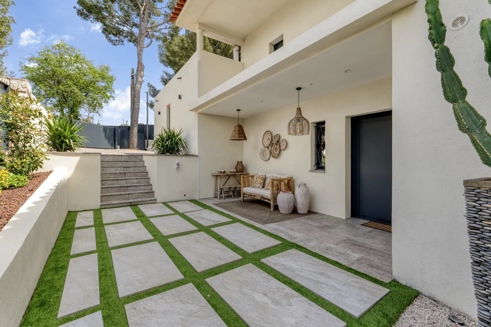 Located on the heights of a sought-after residential area of Le Cannet, this fully renovated neo-Provençal villa stands out with its generous volumes and high-quality finishes.