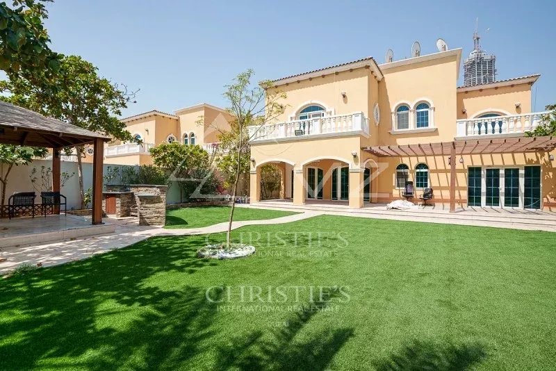 The is villa is located in District 2 in Jumeirah Park, the villa is a single row location with a park view location. The Villa is currently rented the viewings can be done with appointments. The pictures in the add are from illustration purposes. The Villa has a lovely layout with a huge living area and large spacious kitchen. There is one ensuite bedroom on the ground floor. The second floor has 4 bedrooms and a dry pantry with a huge terrace in the master bedroom.