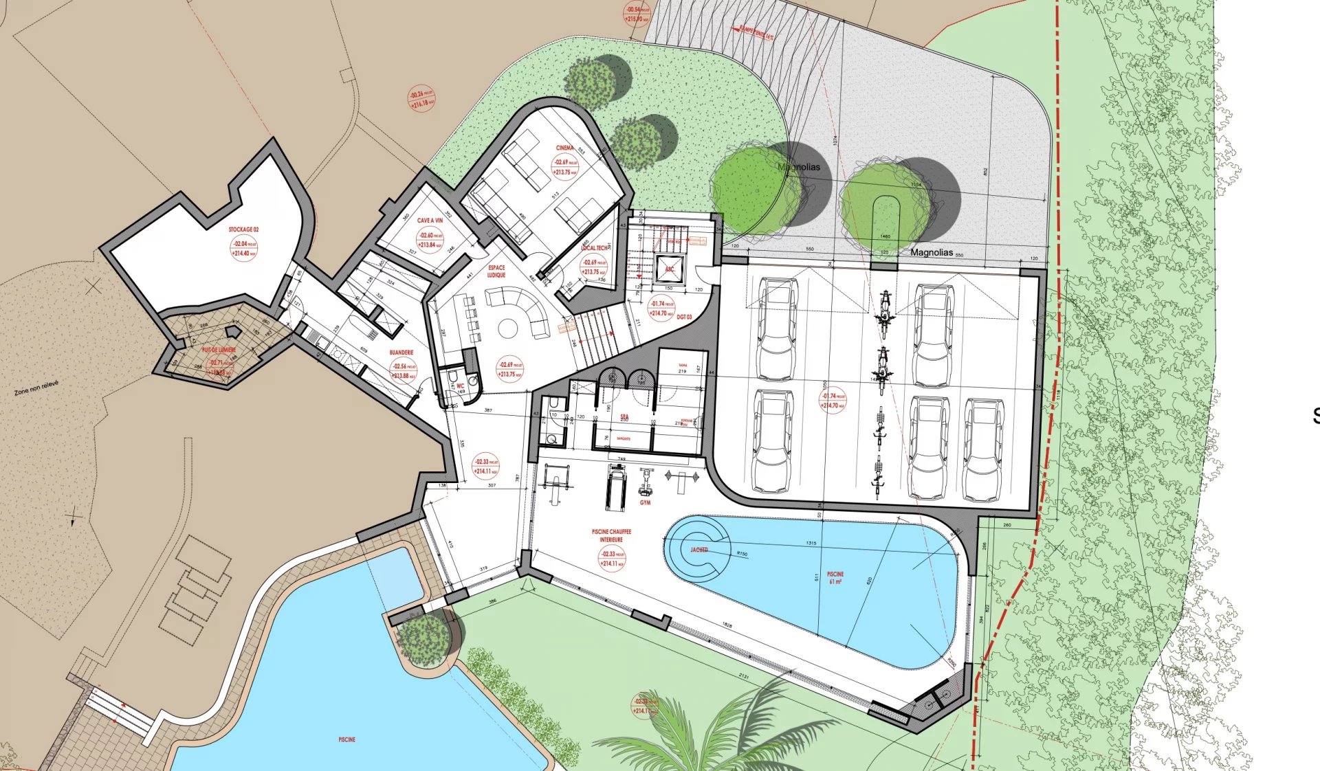 In the Parcs de Mougins area, a magnificent renovation and extension project for a Couëlle-inspired villa. Set in flat grounds of over 10 000 m2, the property will offer around 1,000 m2 of living space, comprising 7 en suite bedrooms, a 52 m2 independent caretaker's flat, a 8-car garage and an indoor swimming pool. The flat, family-friendly garden includes a large swimming pool with pool house.