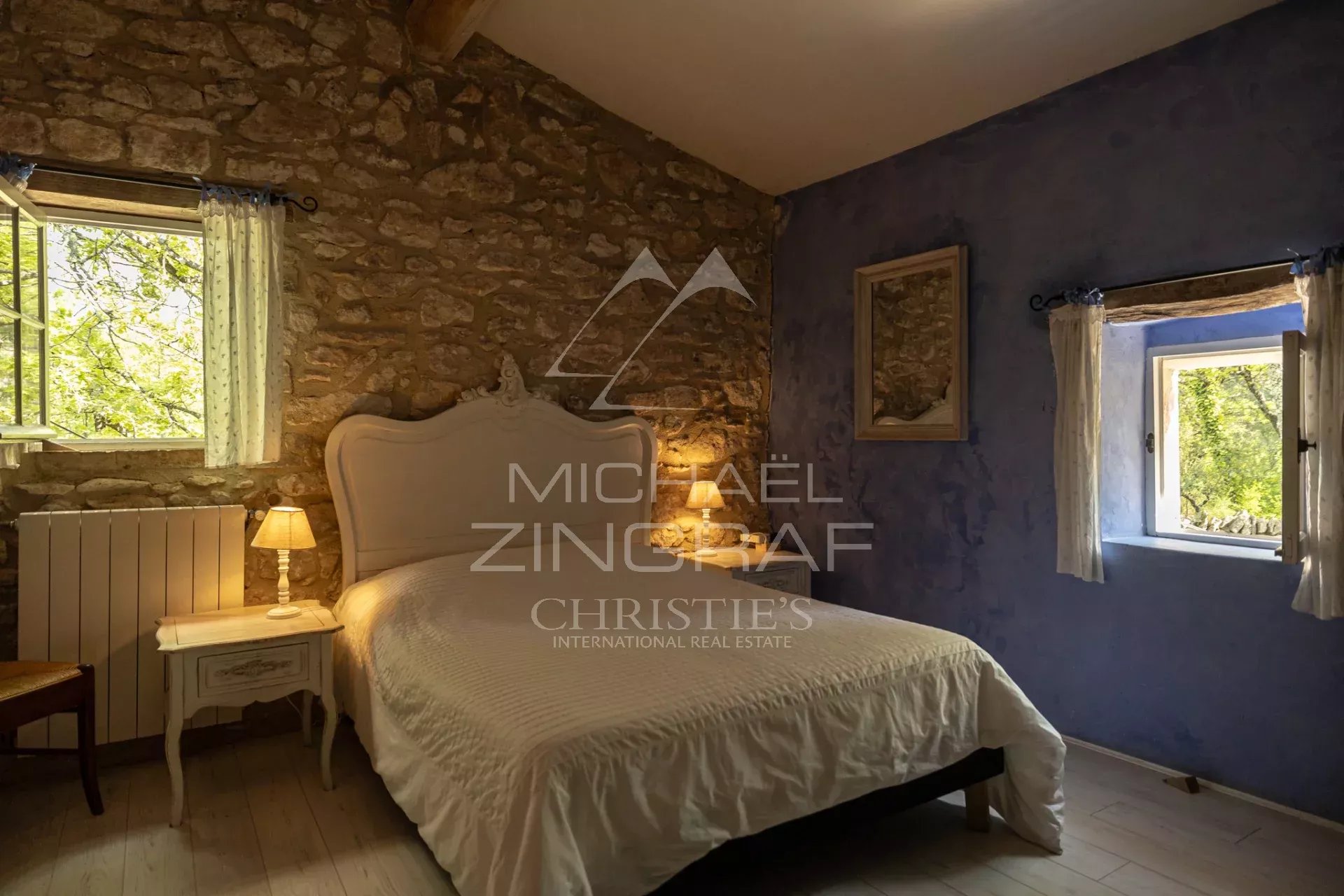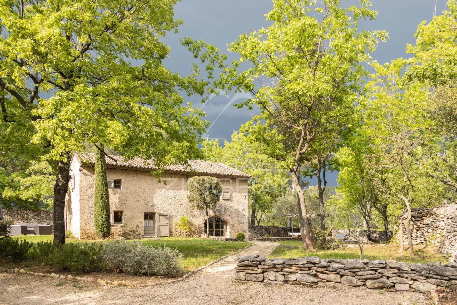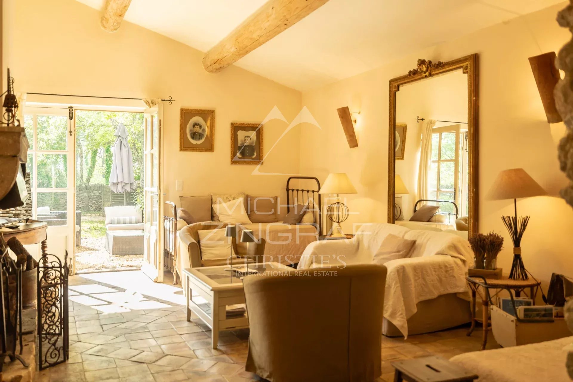 Close to the villages of Ménerbes and Lacoste, in the middle of the woods and in absolute peace and quiet, this authentic Provencal sheepfold has been tastefully restored in 6,000 m² of grounds planted with oak and pine trees. From the swimming pool, you can enjoy a beautiful, peaceful view of the Luberon and Mont Ventoux. Shady terraces, a bowling green and hiking trails directly from the sheepfold for an unforgettable holiday with family or friends. Inside, thick stone walls keep the house perfectly cool, with 4 bedrooms and 3 bathrooms for your comfort.