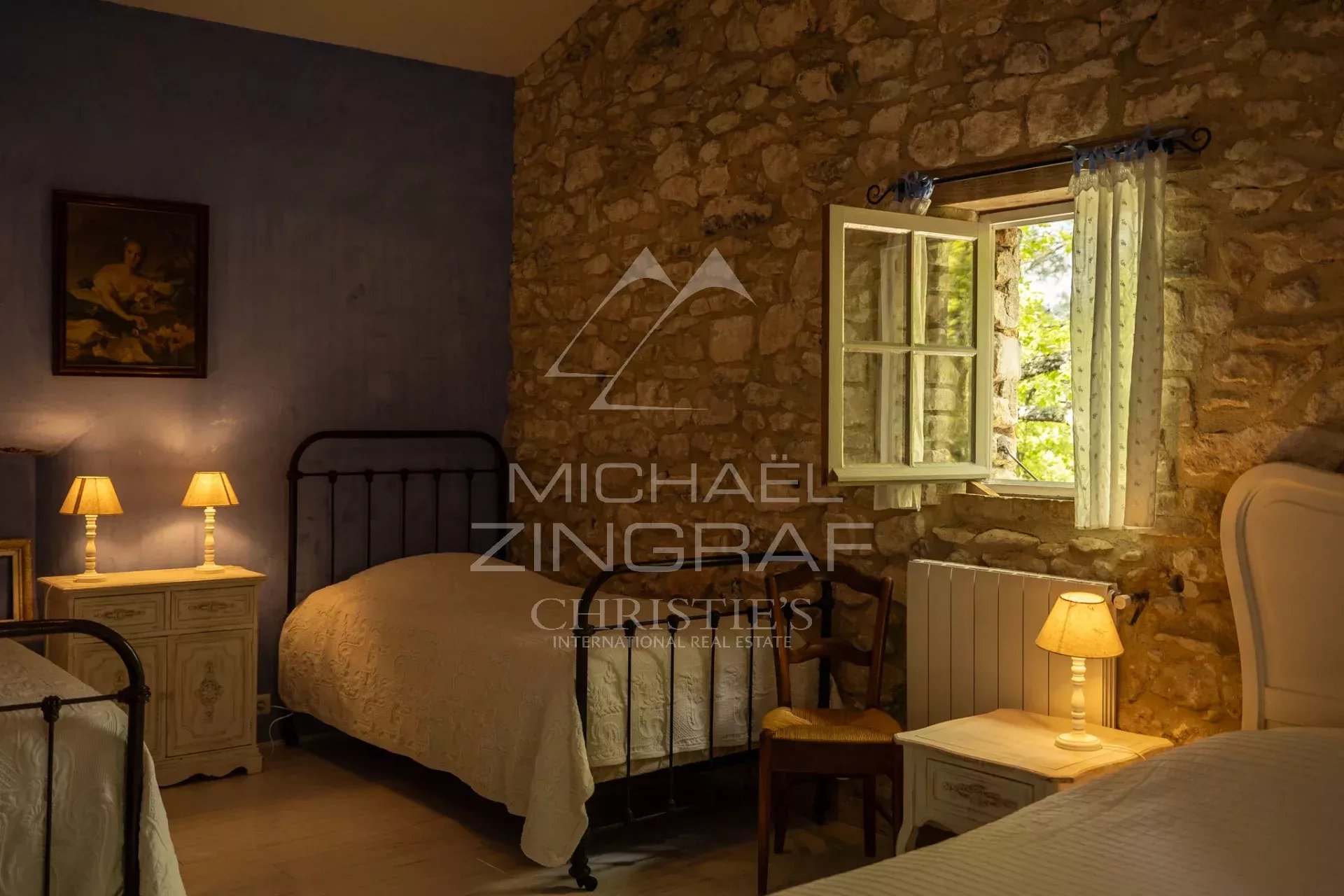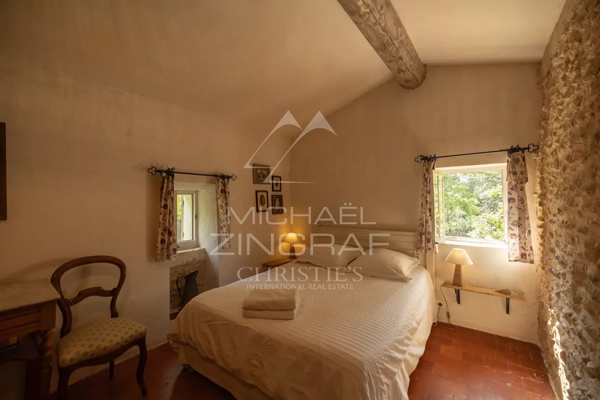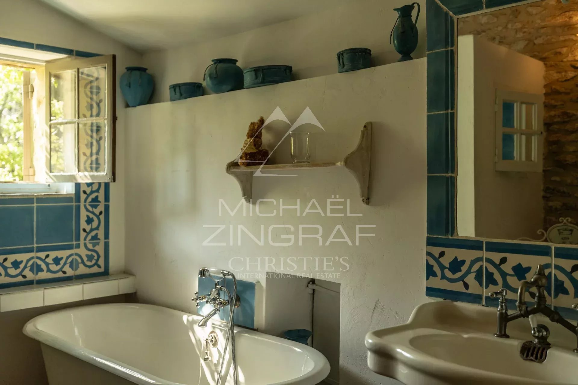 Close to the villages of Ménerbes and Lacoste, in the middle of the woods and in absolute peace and quiet, this authentic Provencal sheepfold has been tastefully restored in 6,000 m² of grounds planted with oak and pine trees. From the swimming pool, you can enjoy a beautiful, peaceful view of the Luberon and Mont Ventoux. Shady terraces, a bowling green and hiking trails directly from the sheepfold for an unforgettable holiday with family or friends. Inside, thick stone walls keep the house perfectly cool, with 4 bedrooms and 3 bathrooms for your comfort.