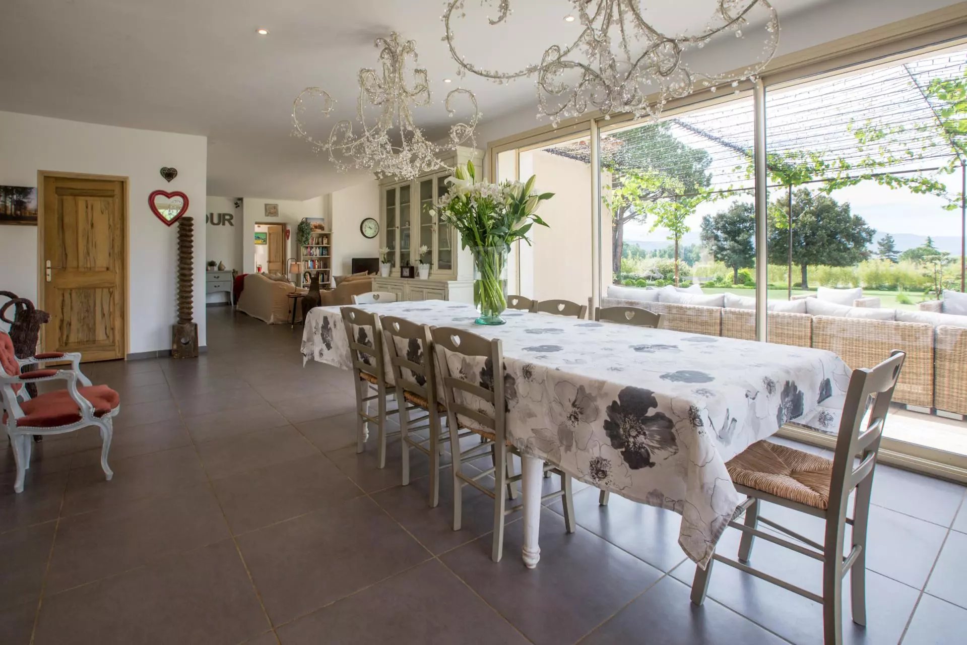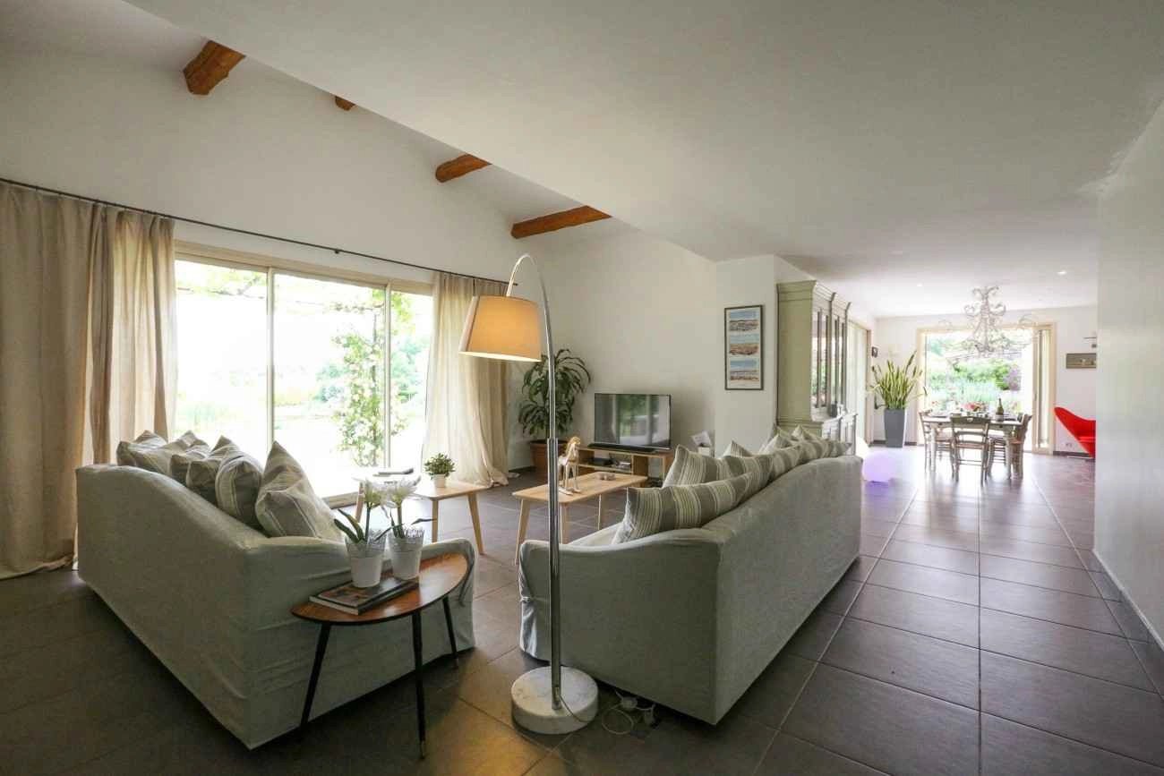 Discover this beautiful holiday home (approx. 220 sqm)in the heart of the Luberon, a few minutes drive from the center of the charming village of Saint-Saturnin-les-Apt. Inevitably you will be seduced by the park which offers a large heated swimming-pool, a beautiful bucolic pond connected by a small stream with wooden bridges. Summer kitchen and outdoor furniture. The main house opens onto a large shady terrace. It offers 4 en suite bedrooms (one on the garden level). A lovely fully-equipped annex (approx. 75sqm), with 2 bedrooms, living room, kitchenette and private terrace, can be rented or not with the main house. Comfortable, very well equipped and easy-living house, tastefully decorated.