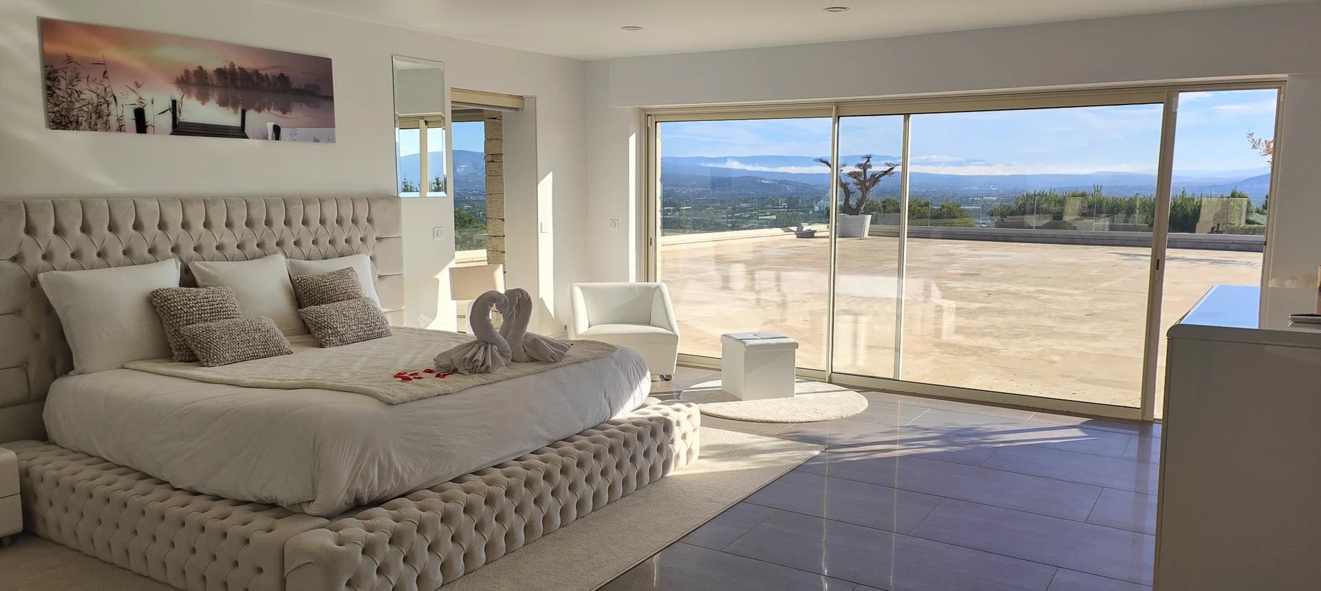 Outside, there's a terrace of over 400m2 with a huge infinity mirror pool, a jacuzzi and a petanque court.