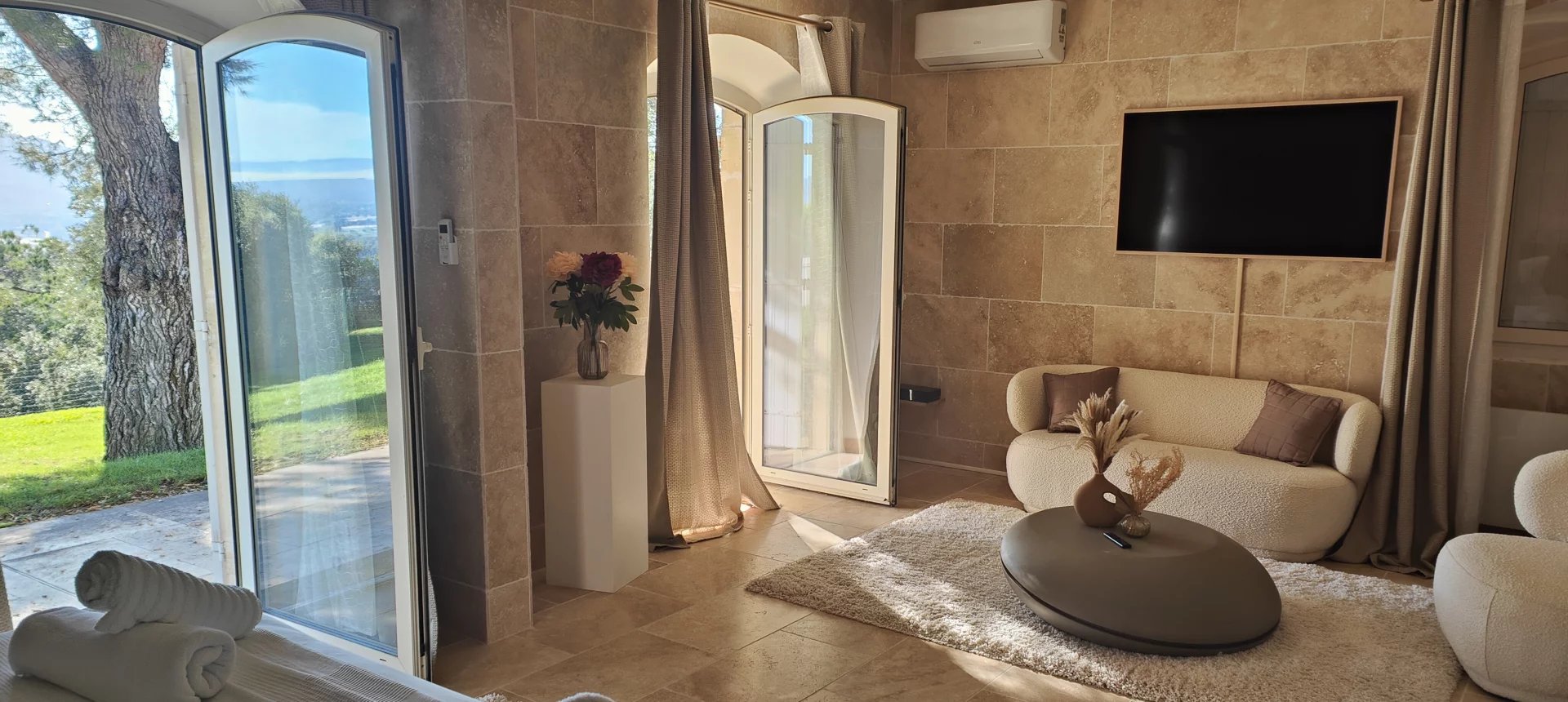 Inside, living rooms and 5 spacious, light-filled bedrooms, 3 of which are en suite. All air-conditioned, with direct access to the outdoors and breathtaking views of the surrounding area. A gym of over 100m2 with hammam.