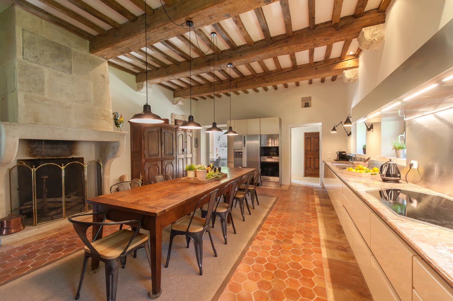 It is made up of several stone buildings, a total of 1000 sqm, with 11 bedrooms (up to 24 guests), large reception rooms decorated to a high standard with stunning features such as French ceilings, original Louis XIII - XV period fireplaces and doors… The property can be rented with the 11 bedrooms or only the main house with its 6 bedrooms and the closed annex with 5 bedrooms (and vice versa)
