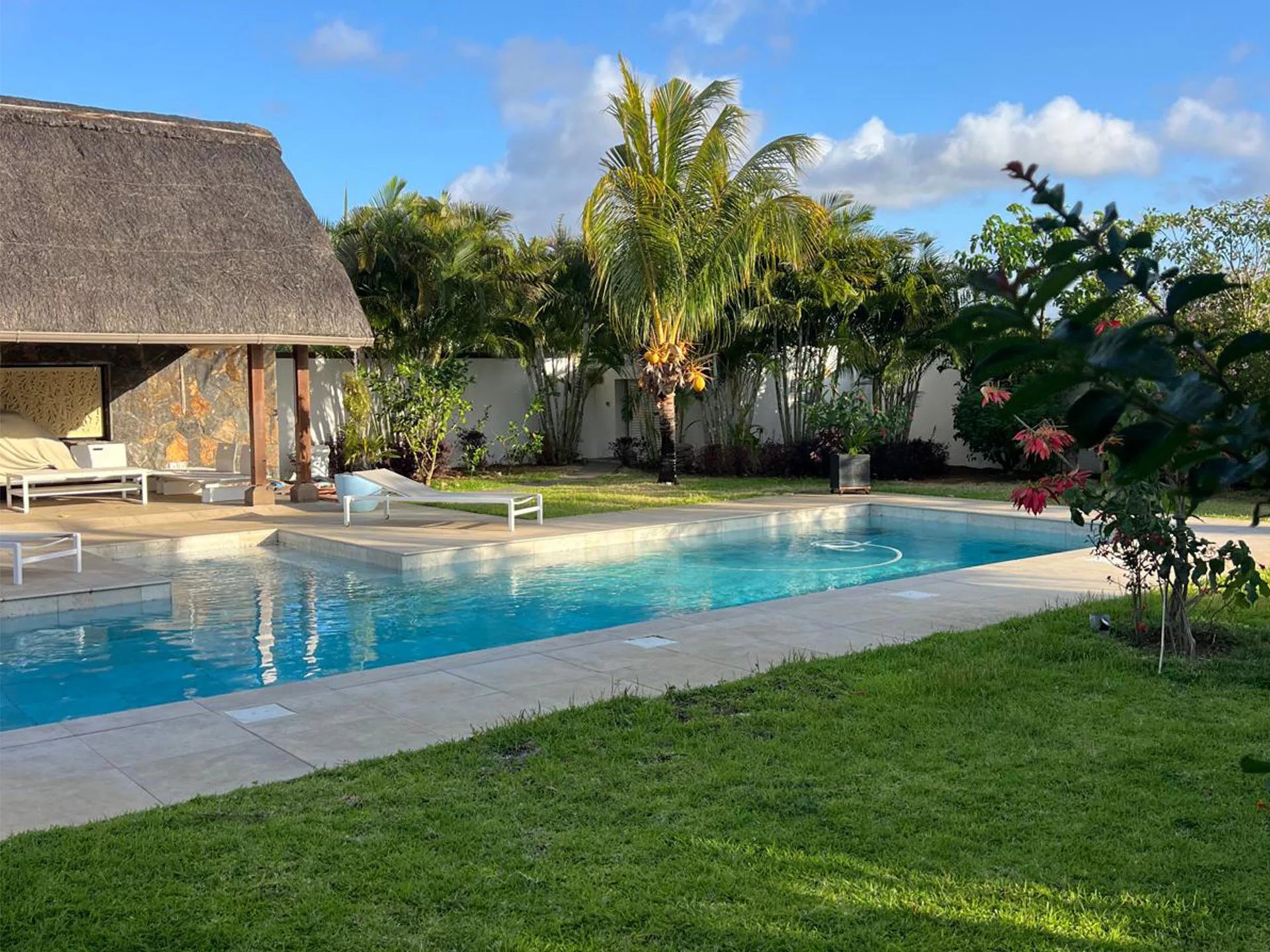 This villa, nestled in a green setting, offers an exceptional living environment. It is a rare opportunity to acquire a prestigious property in the most sought -after seaside resort in Mauritius. The villa has 5 bedrooms with adjoining bathrooms. Its large living space, bringing together the living room, the dining room and the kitchen, opens onto a large terrace. The exterior is sublimated by a private garden, a swimming pool and a kiosk, offering a real oasis of tranquility.