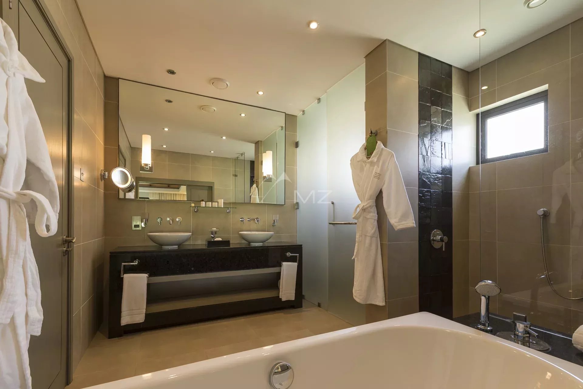 The private space offers 2 to 3 en-suite bedrooms, including a master bedroom opening onto the terrace, as well as an office room which can be converted into a bedroom for certain apartments.