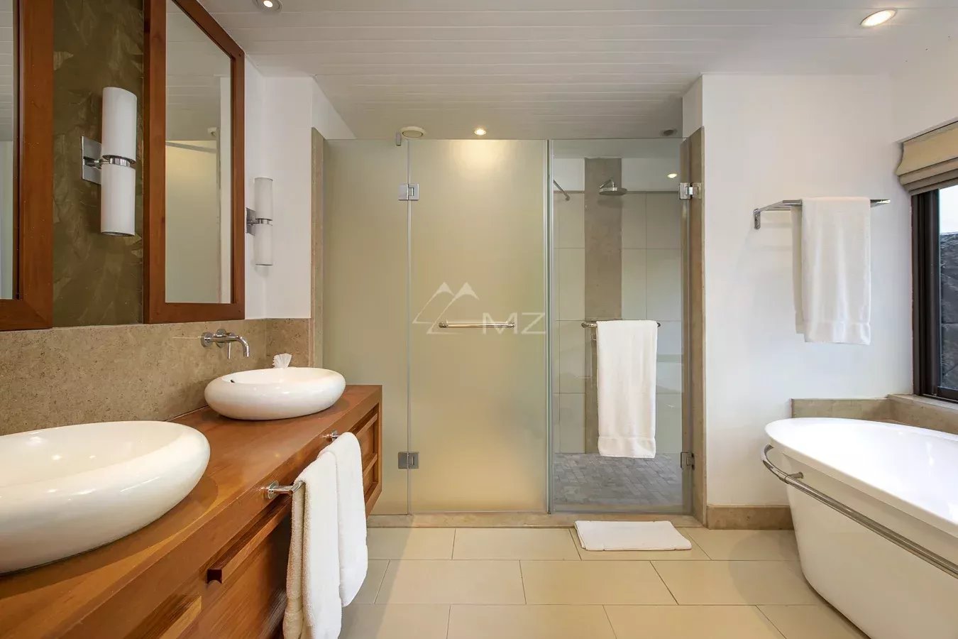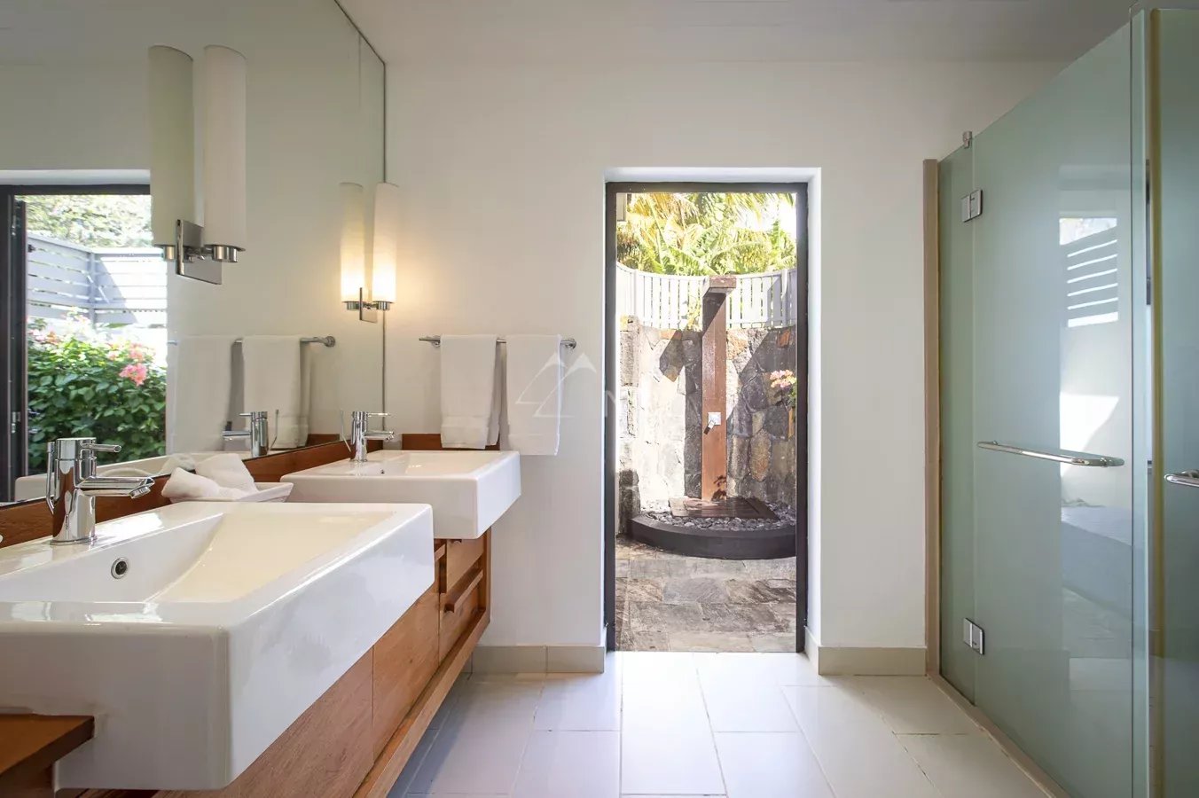The property has also a relaxation area with hammam and rest room, a large outdoor kiosk adjacent to the swimming pool and opening onto one of the most beautiful panoramas of Anahita, as well as a beautiful infinity pool for moments of absolute relaxation facing the turquoise blue of the Indian Ocean. This villa is located in the Lunea neighborhood, very close on foot to all the facilities offered by the estate (restaurants, club house, spa pool, beach and departure pontoon to the exclusive beach of Anahita on Ile aux Cerfs)