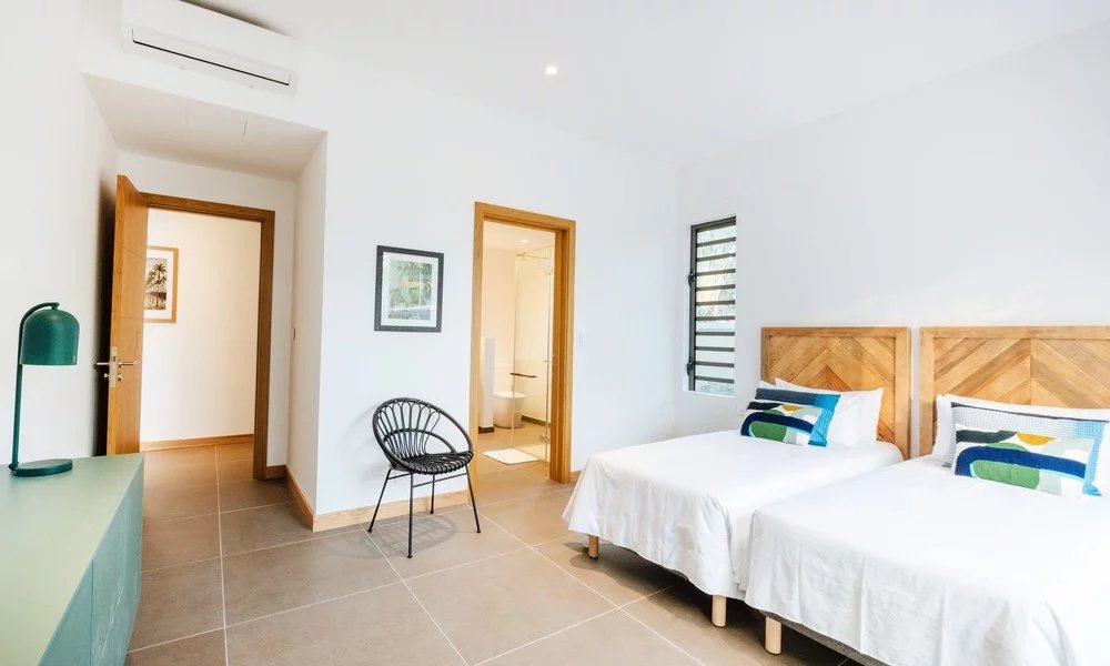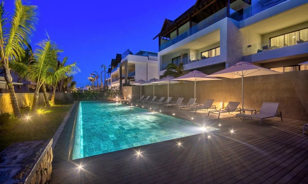 The complex is at the confluence of two worlds: that of Grand-Baie, a renowned tourist center, and the wilder one of the east coast. On an area of 2.2 hectares, 550 m from the beach, the apartment makes room for tropical gardens and green landscapes to ensure everyone privacy and space. Entirely closed and secure, the estate is a clever mix of contemporary architecture and an authentic living atmosphere in the north of the island.
