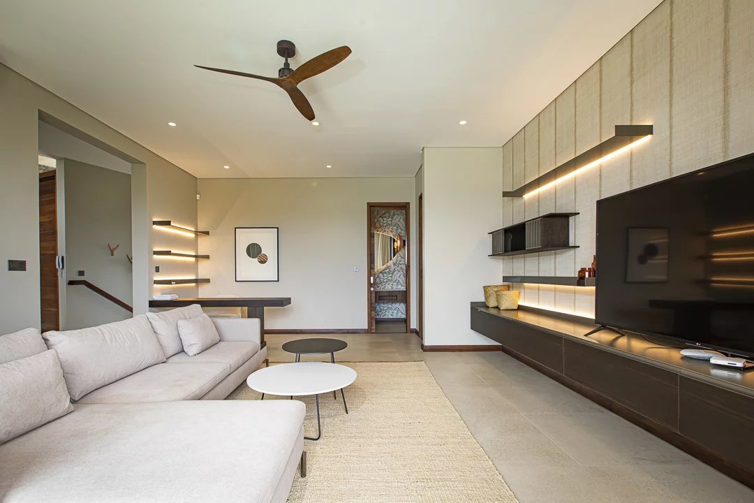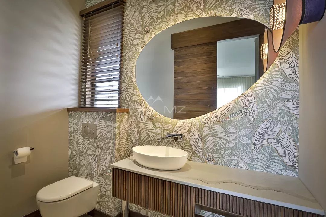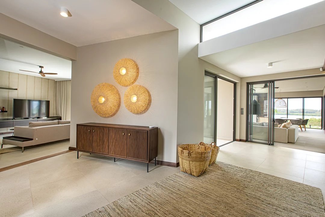 Nestled in a tropical green setting offering a generous opening onto the lagoon, the villas are an invitation to well-being and contemplation. With a very contemporary architecture, a combination of clean lines and of compositional play, they draw on the elegance of natural and noble materials to create intimate, warm and bright spaces.