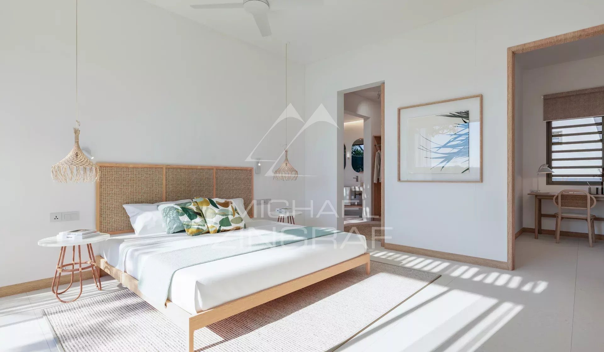 The first phase includes 81 villas and residential plots in the heart of the estate, and will be accompanied by the construction of the clubhouse and the first 9 holes of the golf course. Phases 2 and 3 will follow with 78 and 61 units respectively. The 2nd phase will be accompanied by the construction of the last 9 holes of the course. Each phase is expected to be completed within three years of commencing commercialization. Three models of villas with an actual built surface of more than 400 m² are offered on land with an average surface area of ​​2,000 m². Based on the concept of sustainable architecture, each villa has a different orientation, with the lowest possible environmental impact by taking advantage in particular of the topology of the land, as well as natural ventilation and light. This unique project of exceptional scale in a very sought-after environment offers a breathtaking view of Le Morne and the Indian Ocean.