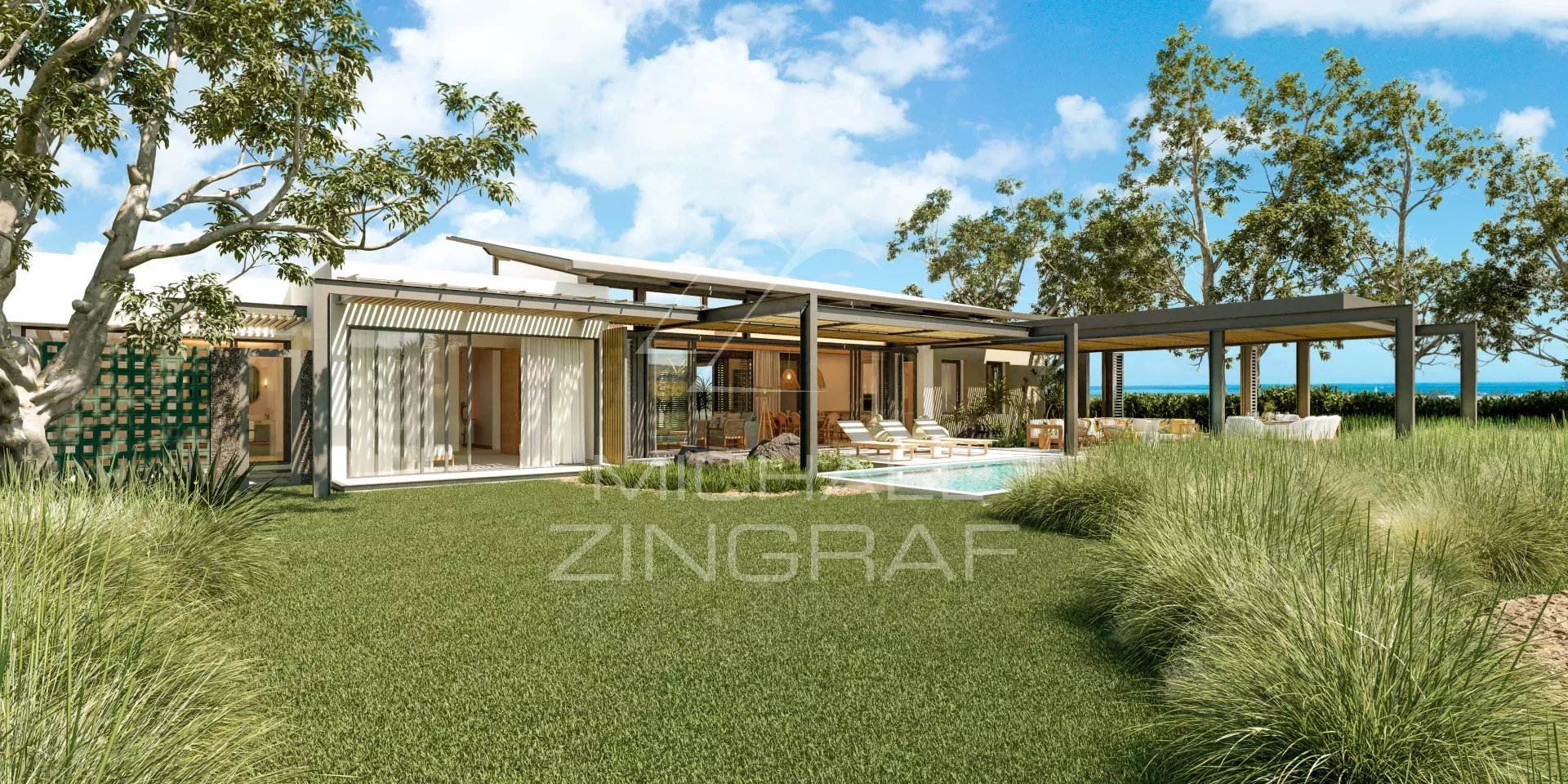The site benefits from a unique savannah atmosphere. Its climate is very dry and its current landscapes are composed of a combination of tall Black River grasses, endemic trees, black wood trees, tamarind trees, Creole agaves and volcanic rocks. The landscaping concept aims to preserve the beauty of the site by reusing 100% of the site's existing plants for the roadsides, and by landscaping 90% of the environment around each villa with existing plants from the site and plants endemic to Mauritius