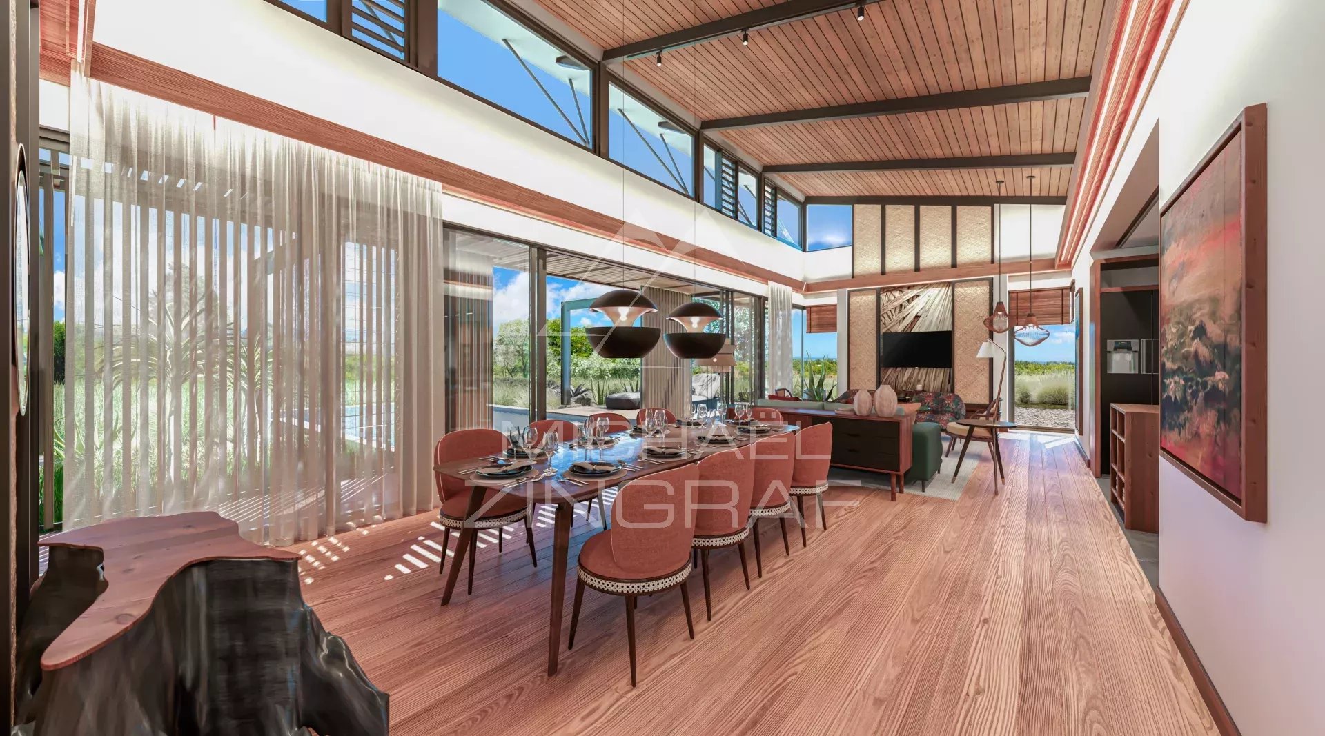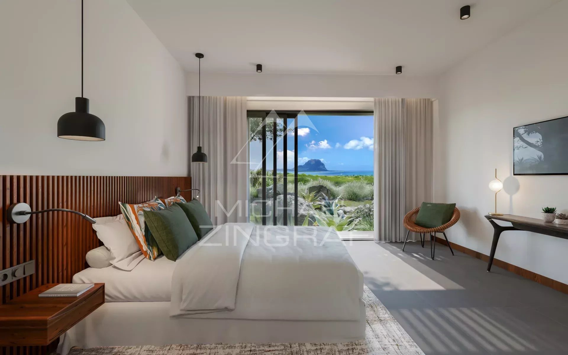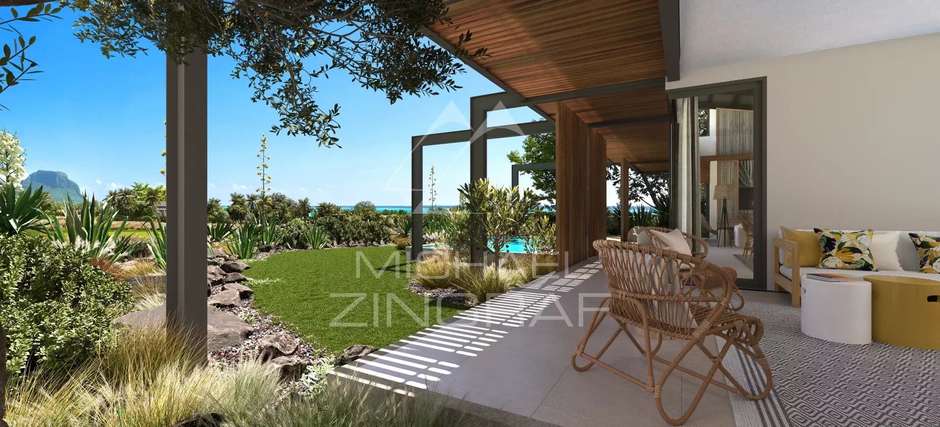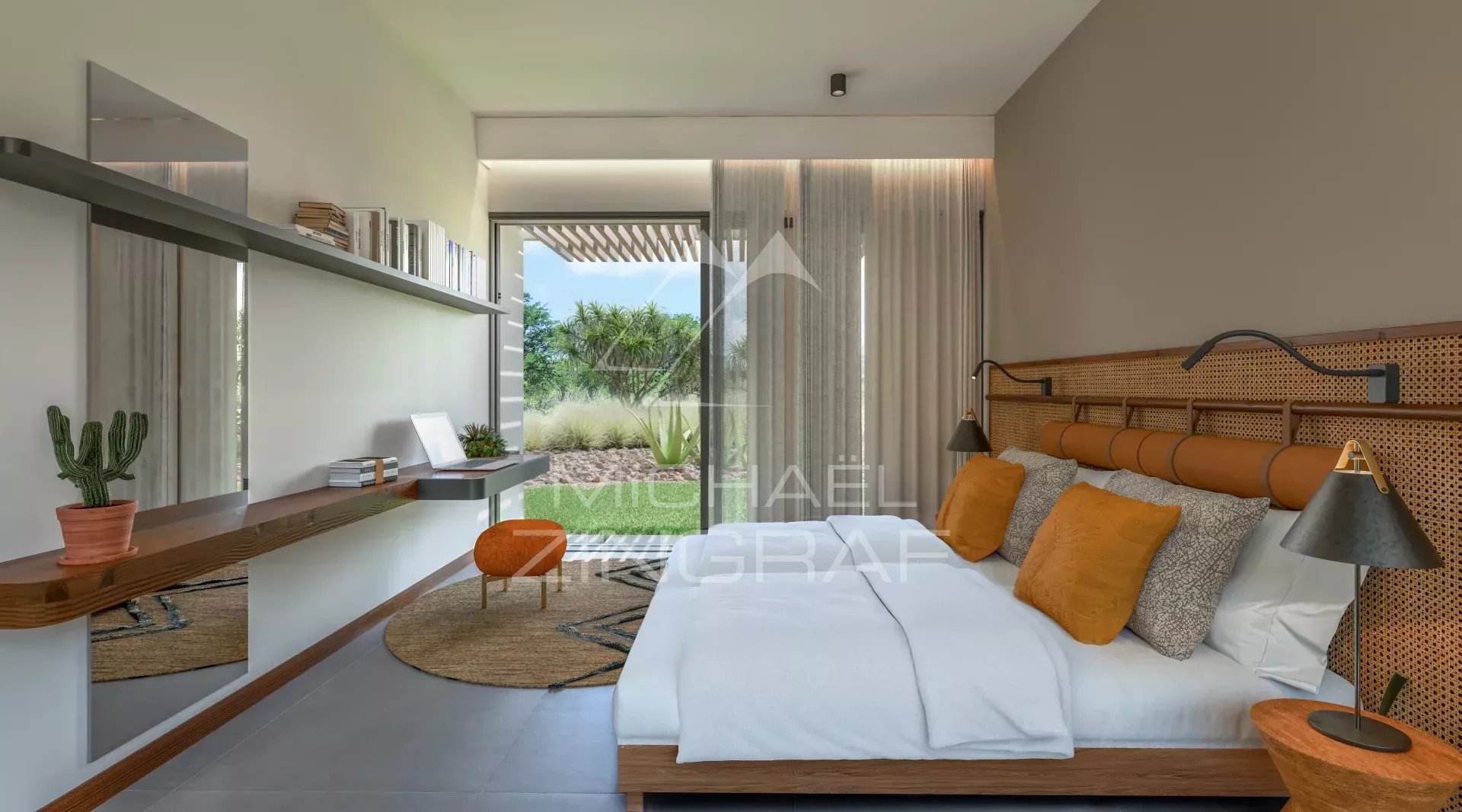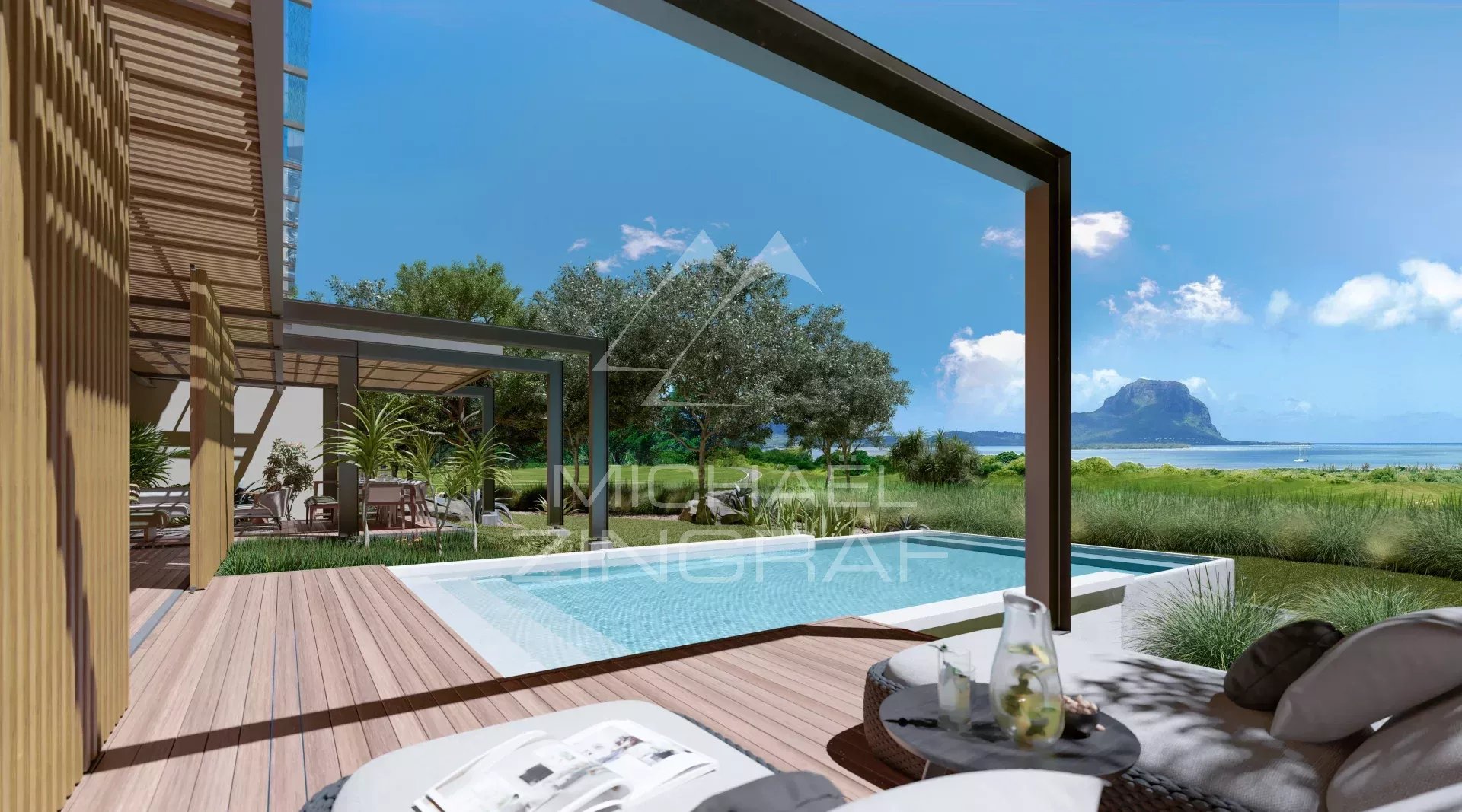 The first phase includes 81 villas and residential plots in the heart of the estate, and will be accompanied by the construction of the clubhouse and the first 9 holes of the golf course. Phases 2 and 3 will follow with 78 and 61 units respectively. The 2nd phase will be accompanied by the construction of the last 9 holes of the course. Each phase is expected to be completed within three years of commencing commercialization. Three models of villas with an actual built surface of more than 400 m² are offered on land with an average surface area of 2,000 m². Based on the concept of sustainable architecture, each villa has a different orientation, with the lowest possible environmental impact by taking advantage in particular of the topology of the land, as well as natural ventilation and light. This unique project of exceptional scale in a very sought-after environment offers a breathtaking view of Le Morne and the Indian Ocean.