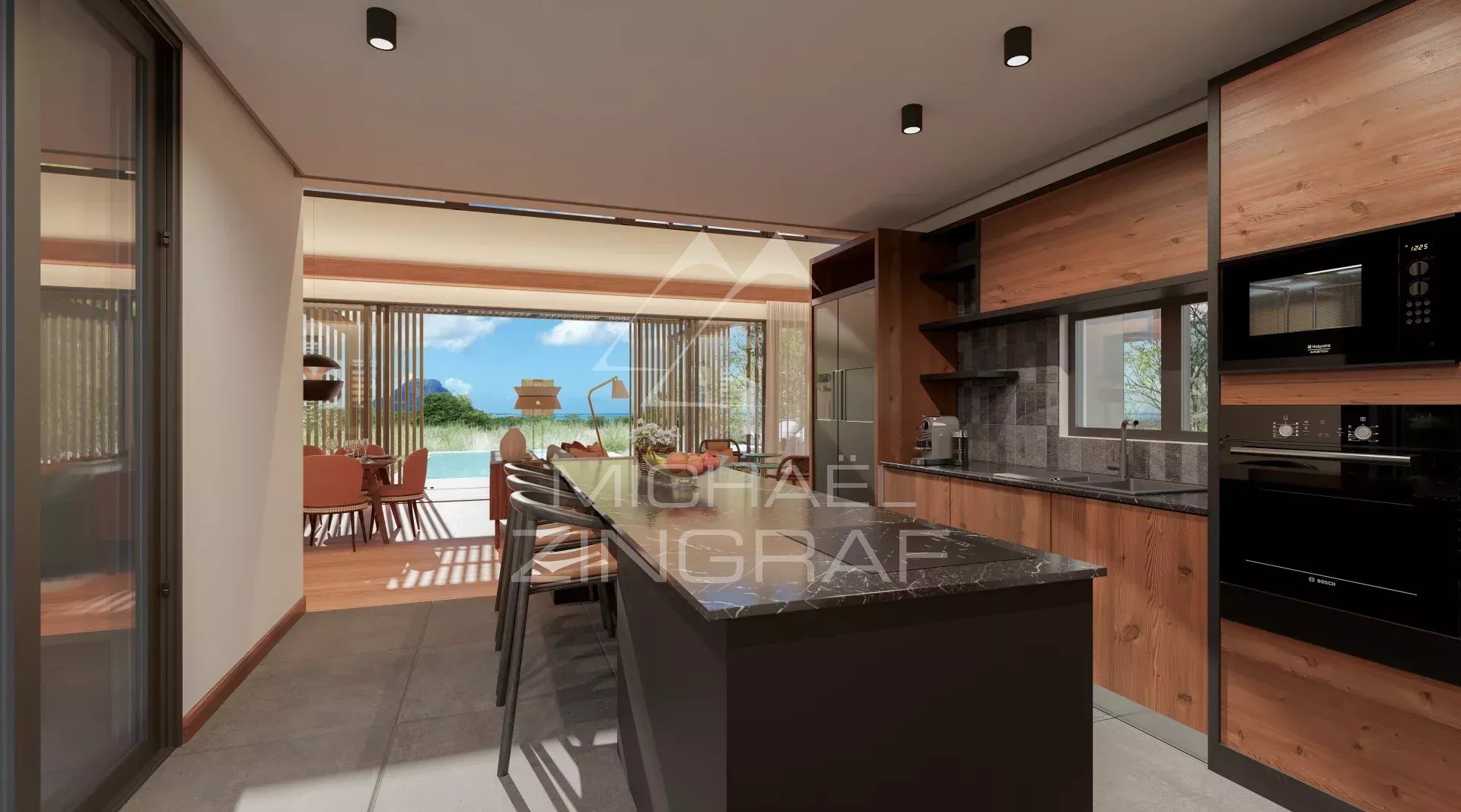 This concept is proposed for 24 villas (in phase 1). Elegant, spacious and intimate, they offer superb views of the sea, the golf course and the Tourelle de Tamarin mountain, while offering an ideal orientation, protected from the winds and fully benefiting from natural light. The patio with tropical landscaping is a green lung around which the life of the household revolves on a daily basis. With three en-suite bedrooms (a 4th bedroom is available as an option) and its large living spaces bringing together the living room, dining room and open kitchen, all facing the outdoor living spaces (kiosk and swimming pool), this is the home tropical family par excellence. Multicultural, heterogeneous, serene, exhilarating... The terms are as numerous as they are varied to describe the signature way of life of this coast of a thousand and one charms. And you, what will be yours? In the heart of the historic Black River Saltworks, facing one of the largest lagoons on the island, this program invites you to vibrate every day to the rhythm of a coast that makes no concessions and perfectly illustrates the pure dolce Mauritian life.