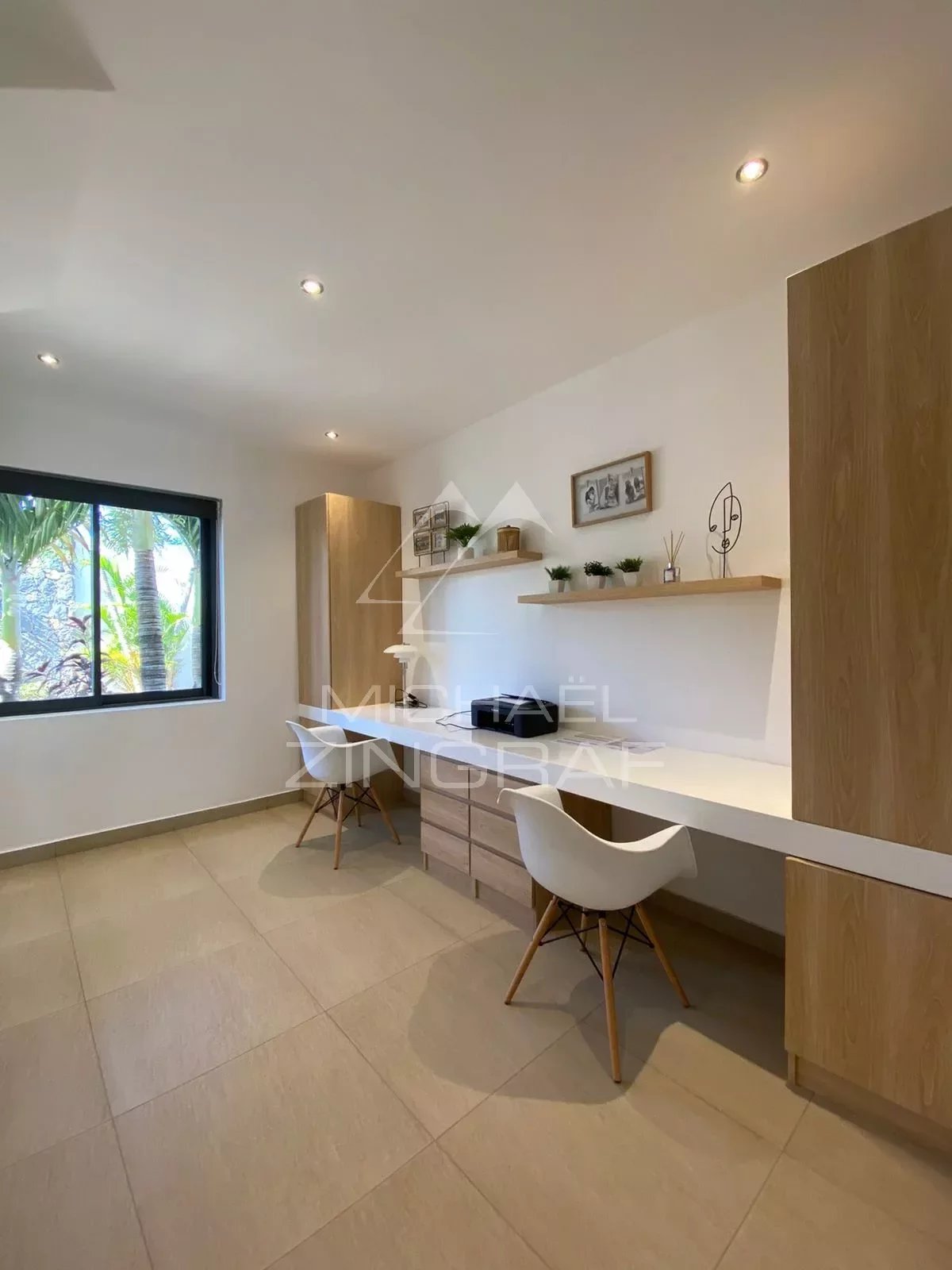 Discover this magnificent modern and authentic villa, located in a secure residence in Grand Bay. Perfectly designed to offer a luxurious and practical living environment, this home will seduce you with its charm and high -end services.