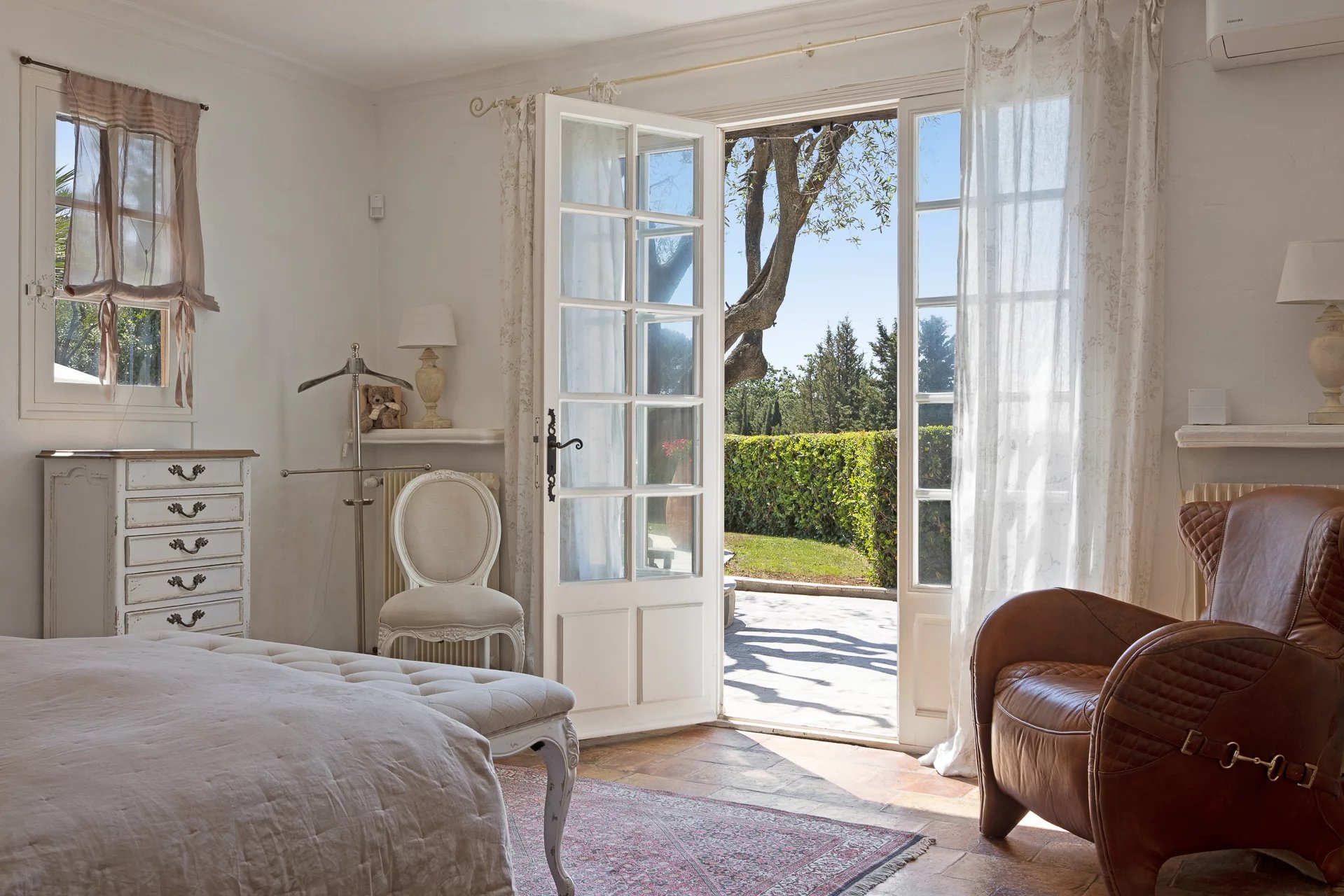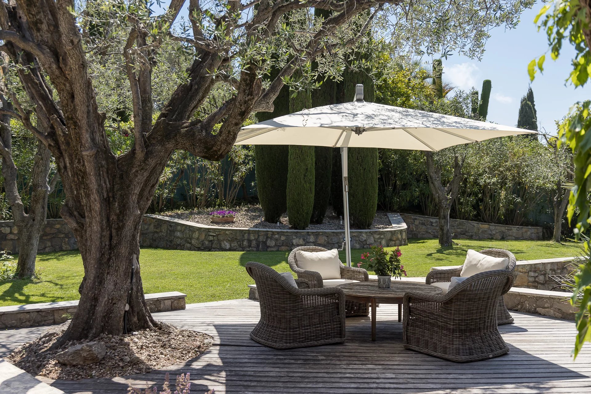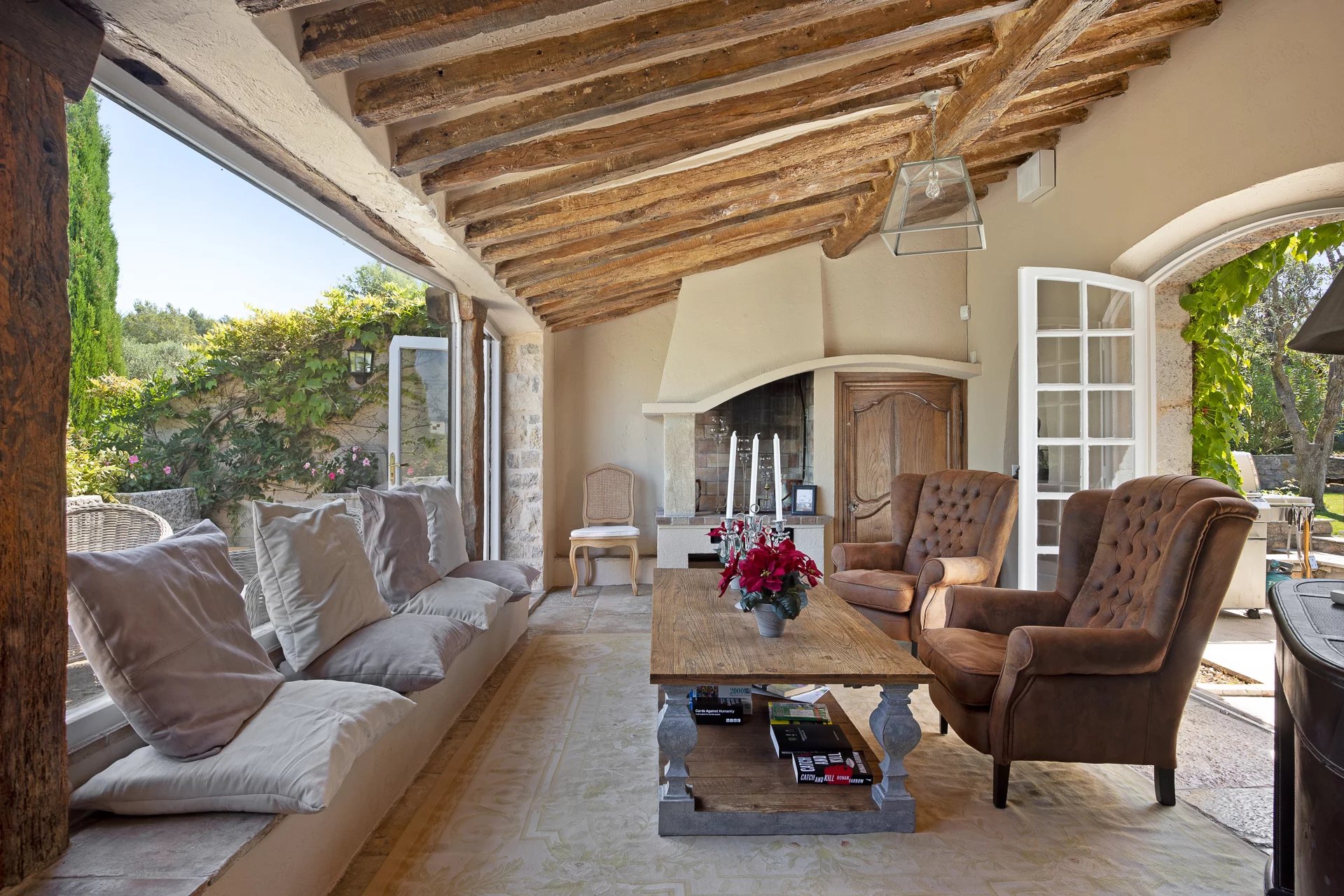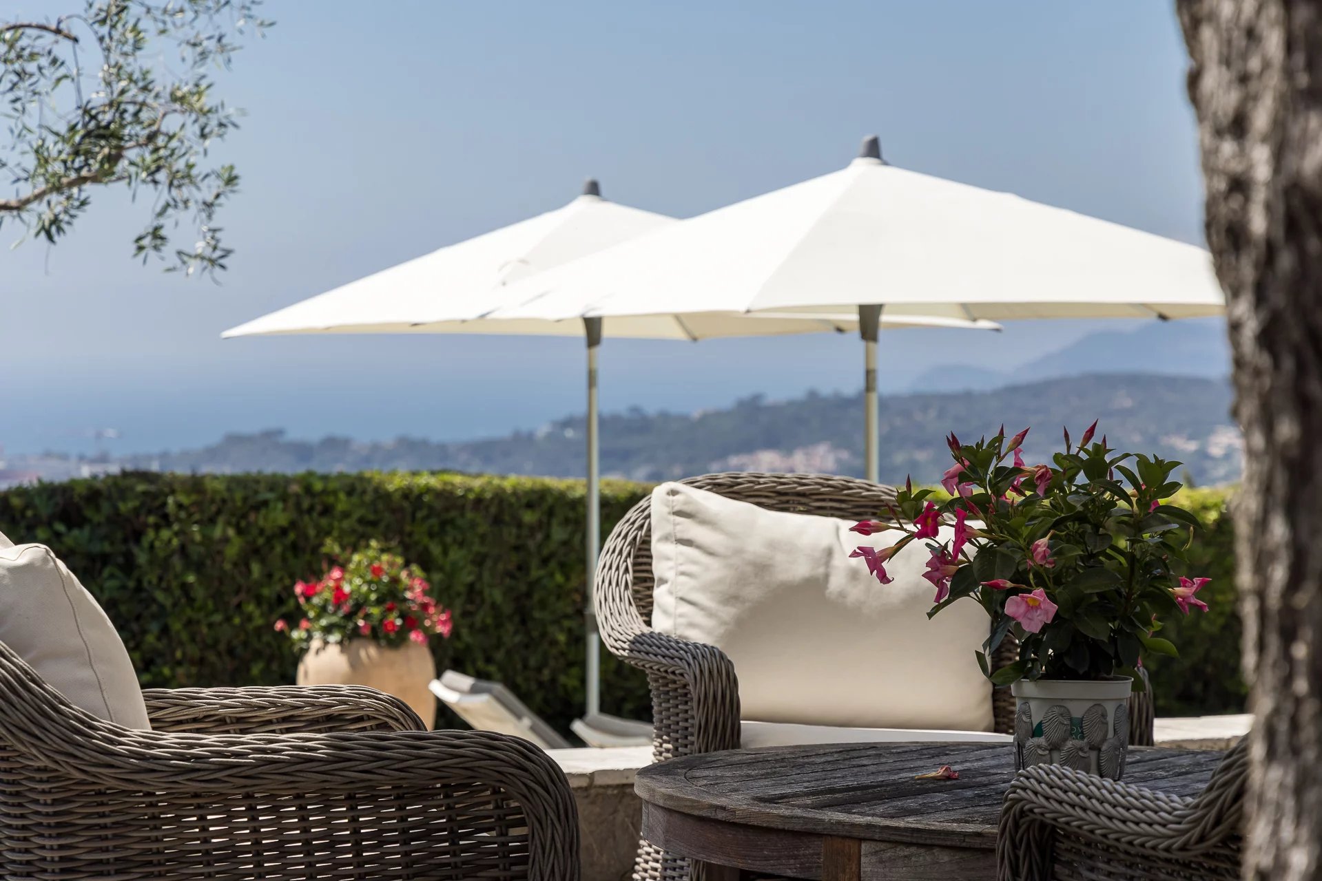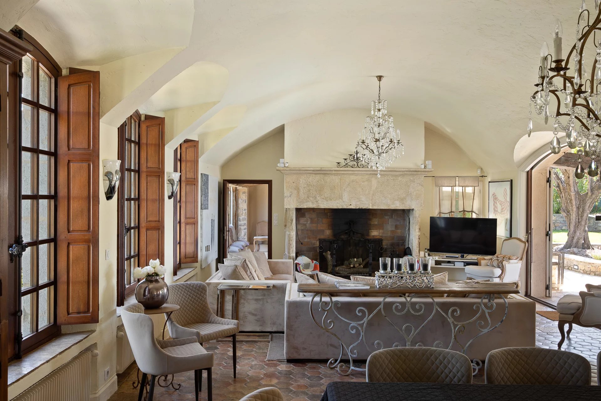 This very elegant property was built by the famous architect Andrei Svetchine for himself. He chose a very strategic location, on the hills of Mougins with superb panoramic views of the sea and the hills, in a residential gated domain surrounded by the forest and only 15 mn away from Cannes.