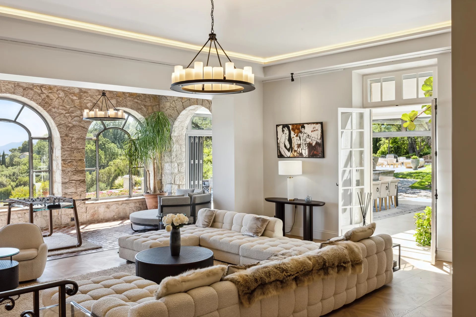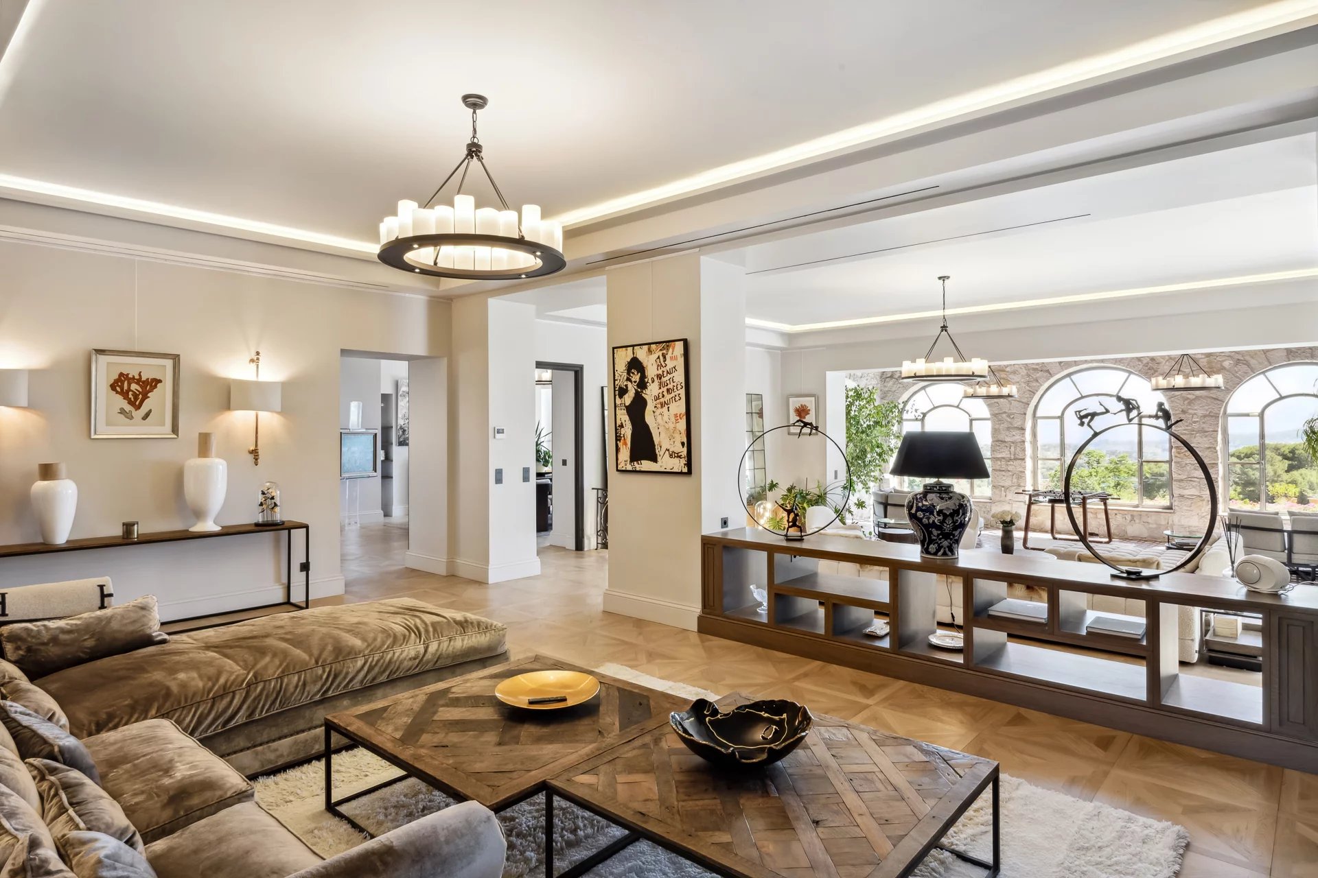 This magnificent bastide, measuring around 960 sqm, has recently been completely renovated in keeping with period traditions. A real jewel on the French Riviera. Its 26,000 sqm of fully landscaped grounds are the work of the famous Jean MUS, with a perfect blend of Mediterranean species, fruit and olive trees, as well as ponds and fountains. A 27 sqm private chapel, a 380 sqm independent guest house, a staff house, a 140 sqm independent appartment with 3 bedrooms, a tennis court, a swimming pool, a fully-equipped pool house and a garage for 6 cars with car wash complete the many assets that make this one of the most emblematic properties in the Cannes hinterland.