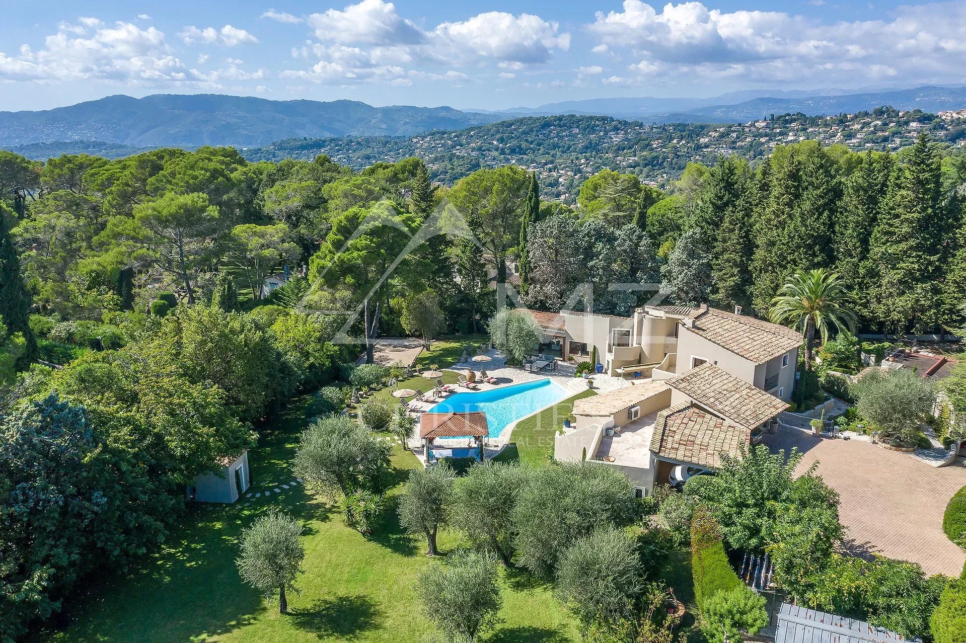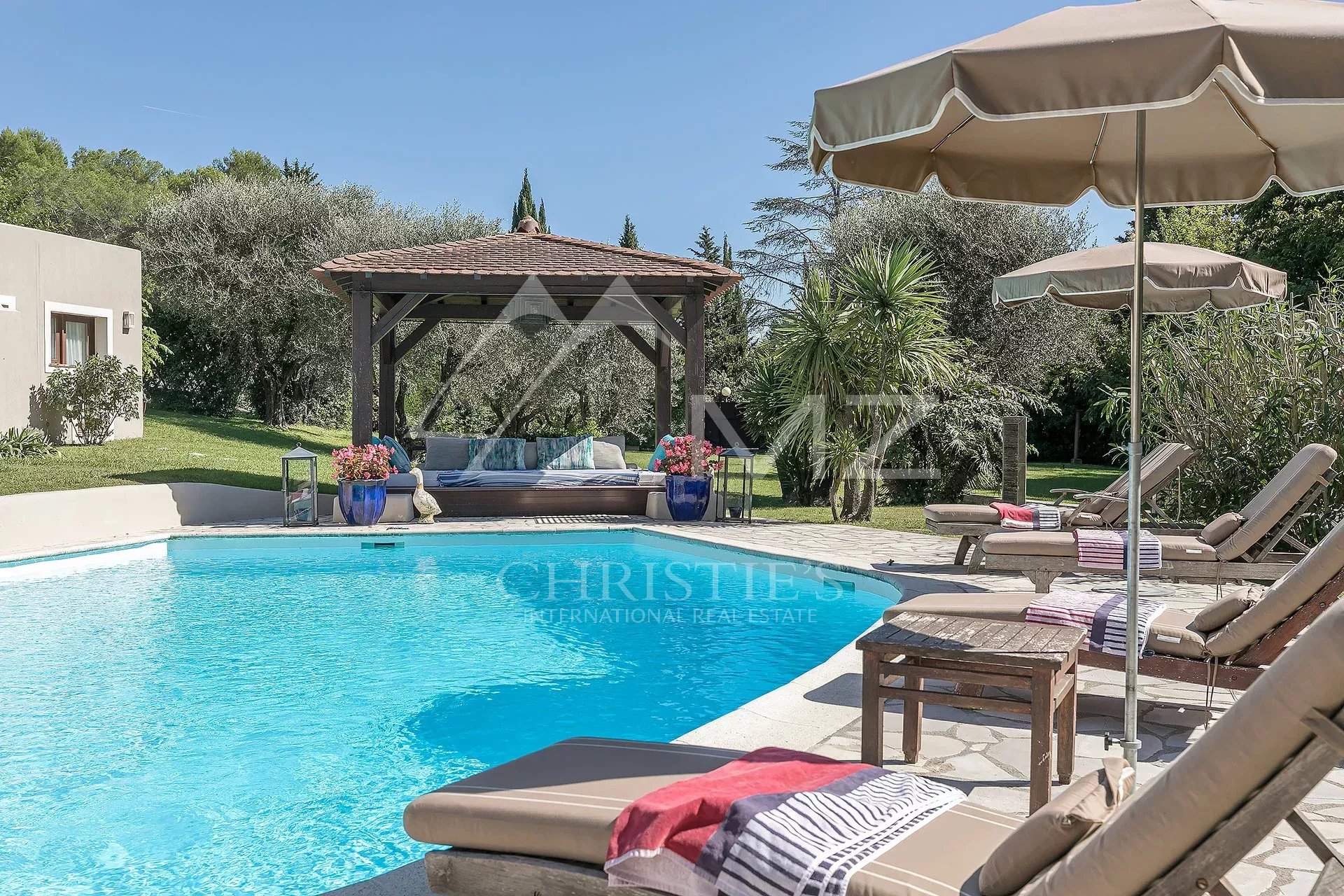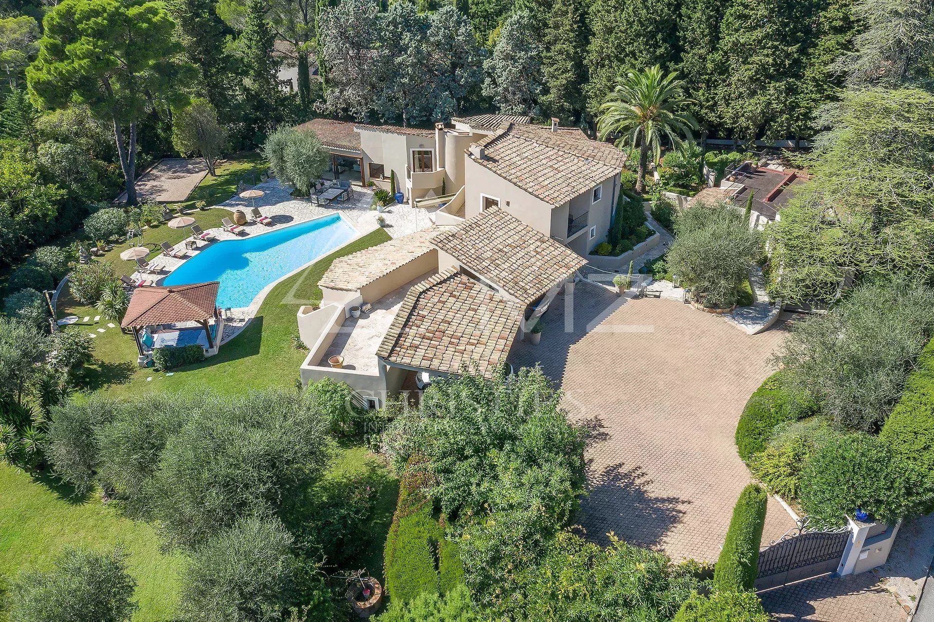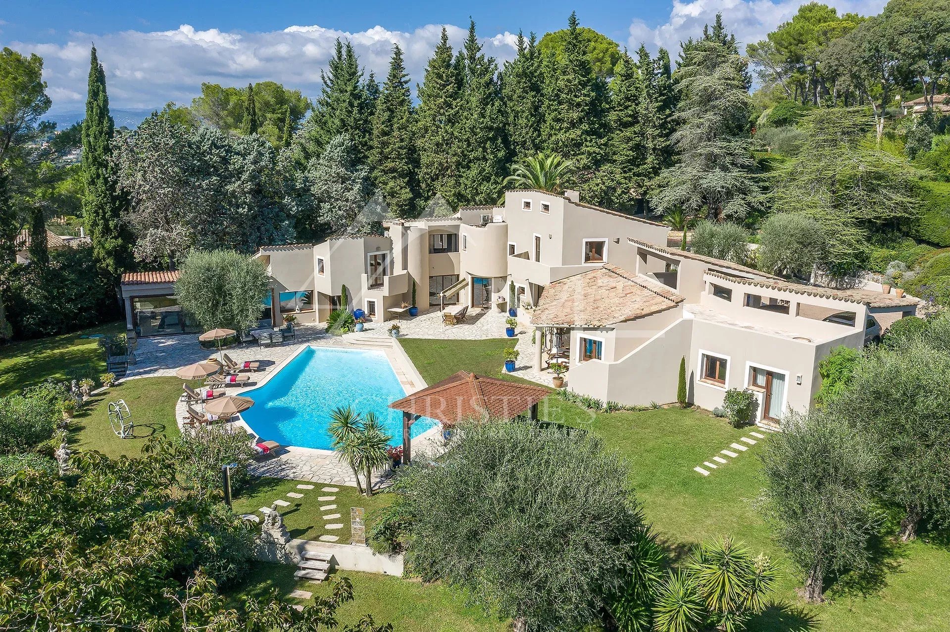 Located in one of the most residential areas of Mougins, in a quiet and green environment, this remarkable villa set on a magnificent flat land of 5000 m2, is a beautiful family and vacation home with 6 bedrooms en suite in the main house + 1 guest apartment with its own terrace. Numerous bright reception rooms and large and beautiful semi-professional equipped kitchen. The outside spaces will make the beautiful part to the convivial moments of relaxation with big terraces, a wooden pergola, a big heated swimming pool, a hammam and a pétanque court. Carport for 4 cars.
