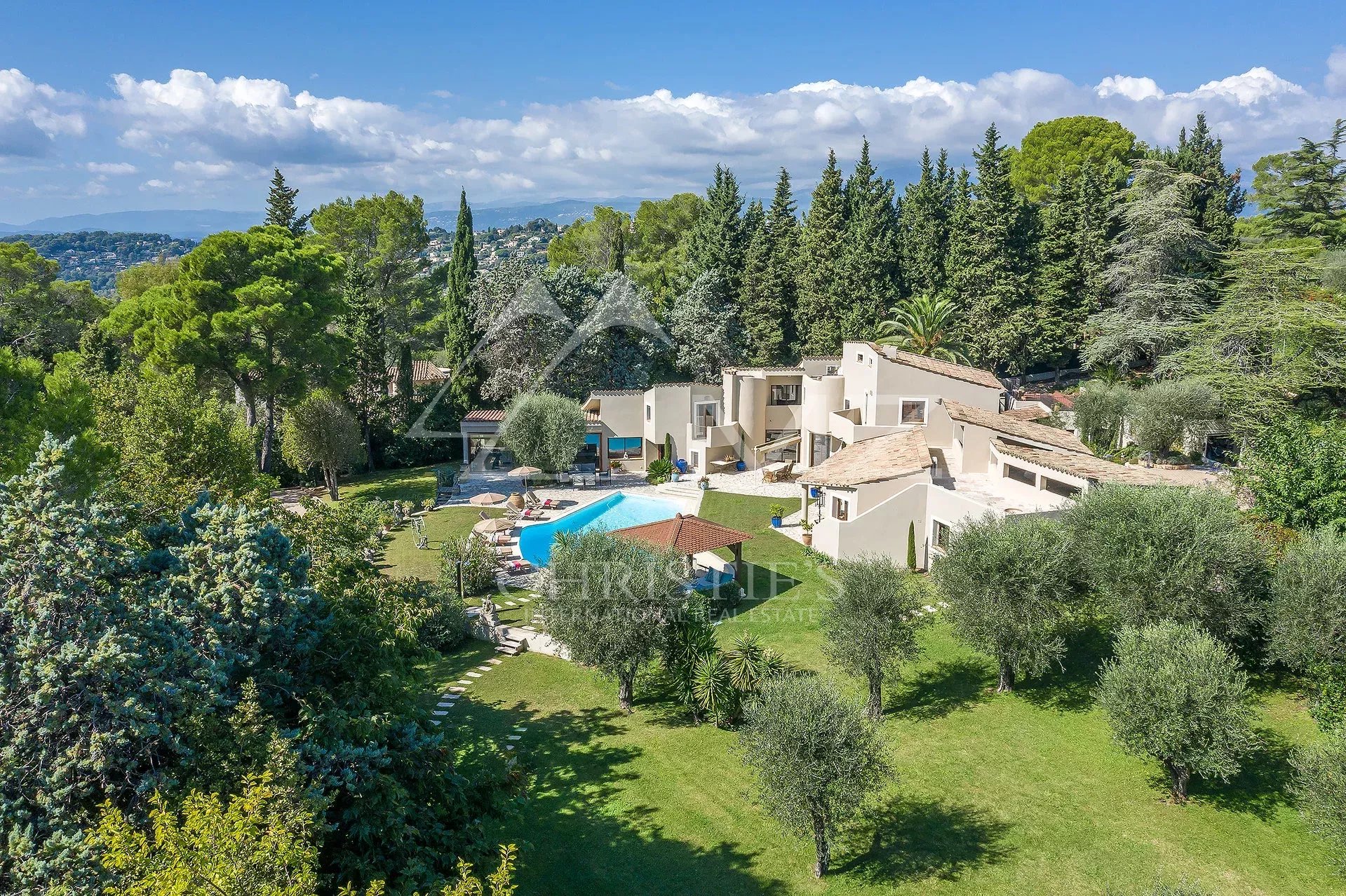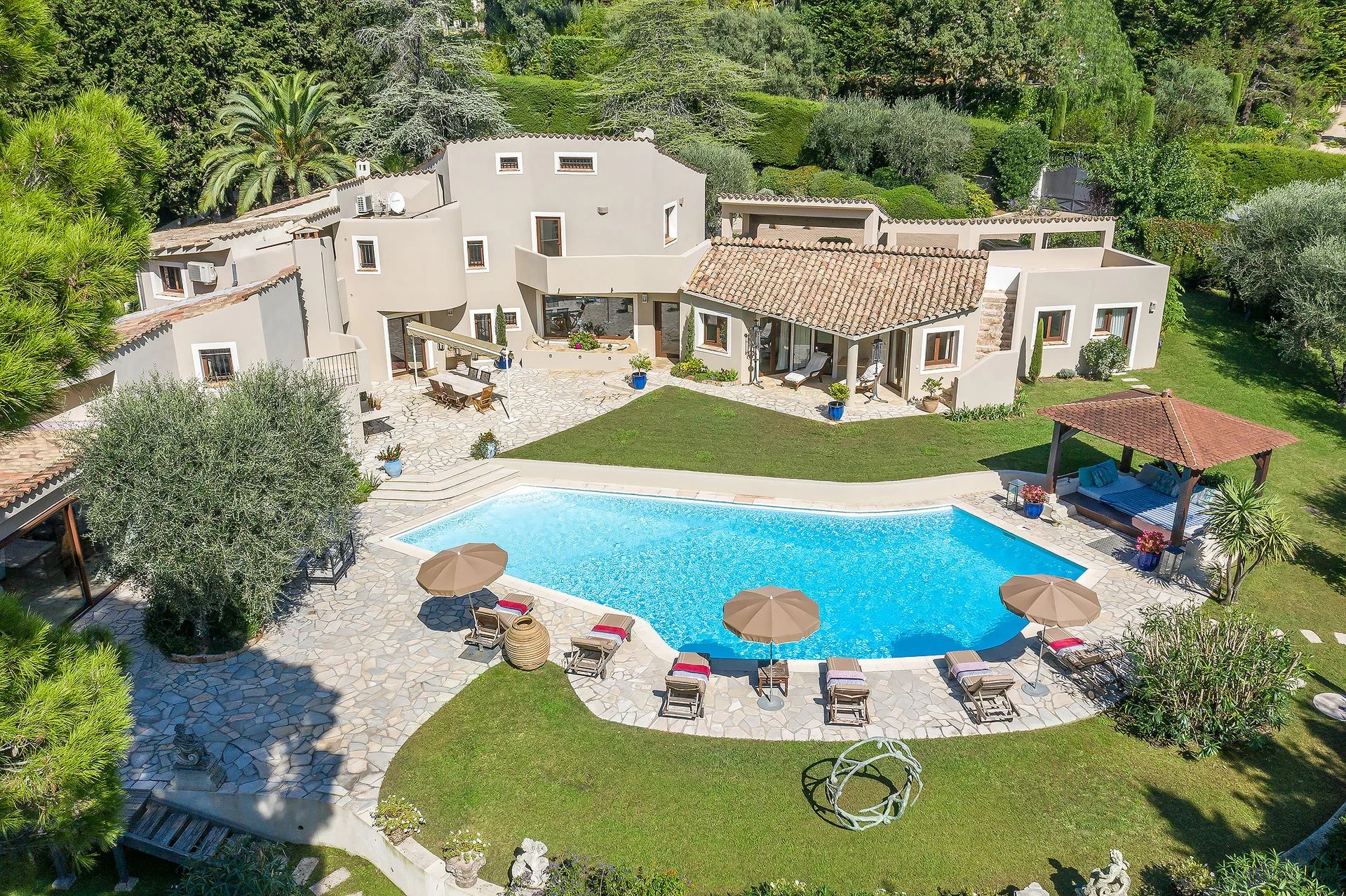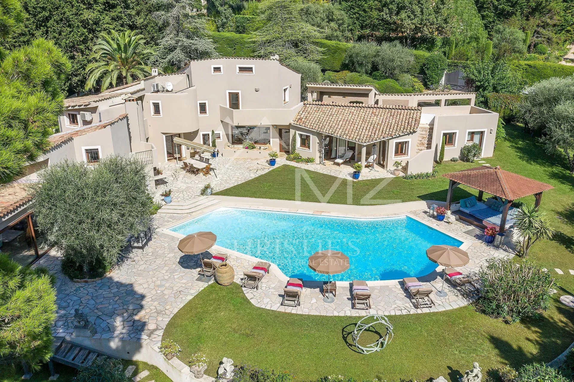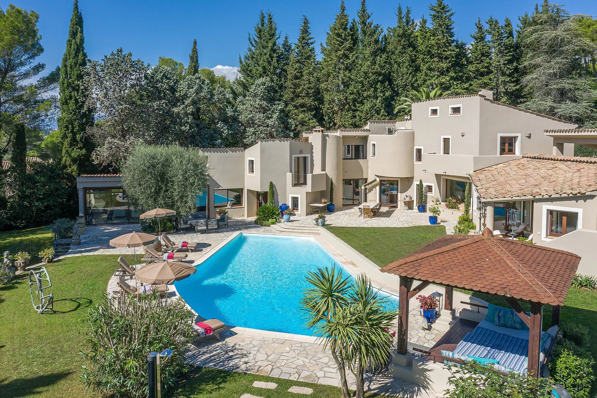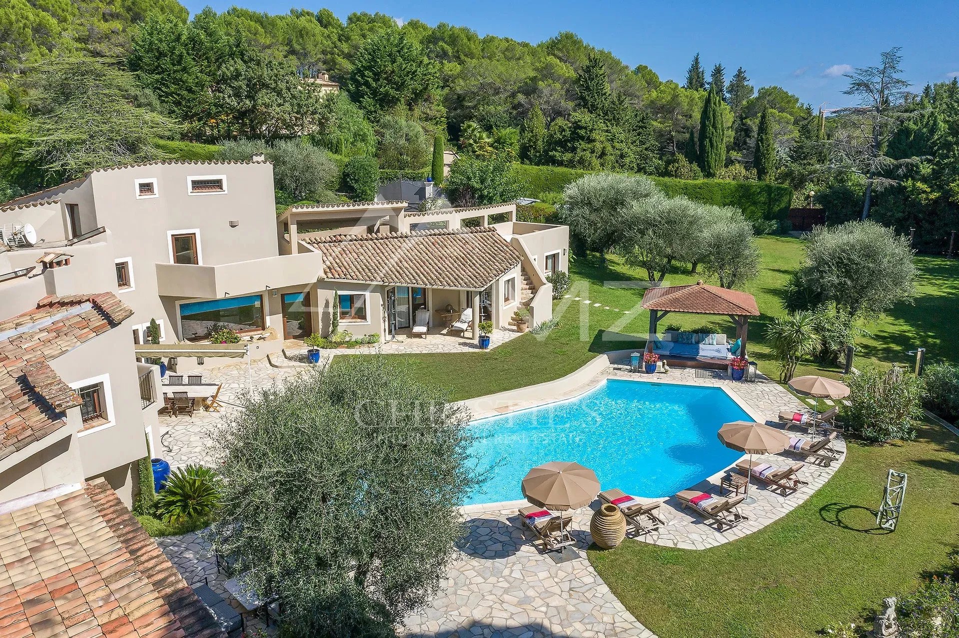 Located in one of the most residential areas of Mougins, in a quiet and green environment, this remarkable villa set on a magnificent flat land of 5000 m2, is a beautiful family and vacation home with 6 bedrooms en suite in the main house + 1 guest apartment with its own terrace. Numerous bright reception rooms and large and beautiful semi-professional equipped kitchen. The outside spaces will make the beautiful part to the convivial moments of relaxation with big terraces, a wooden pergola, a big heated swimming pool, a hammam and a pétanque court. Carport for 4 cars.
