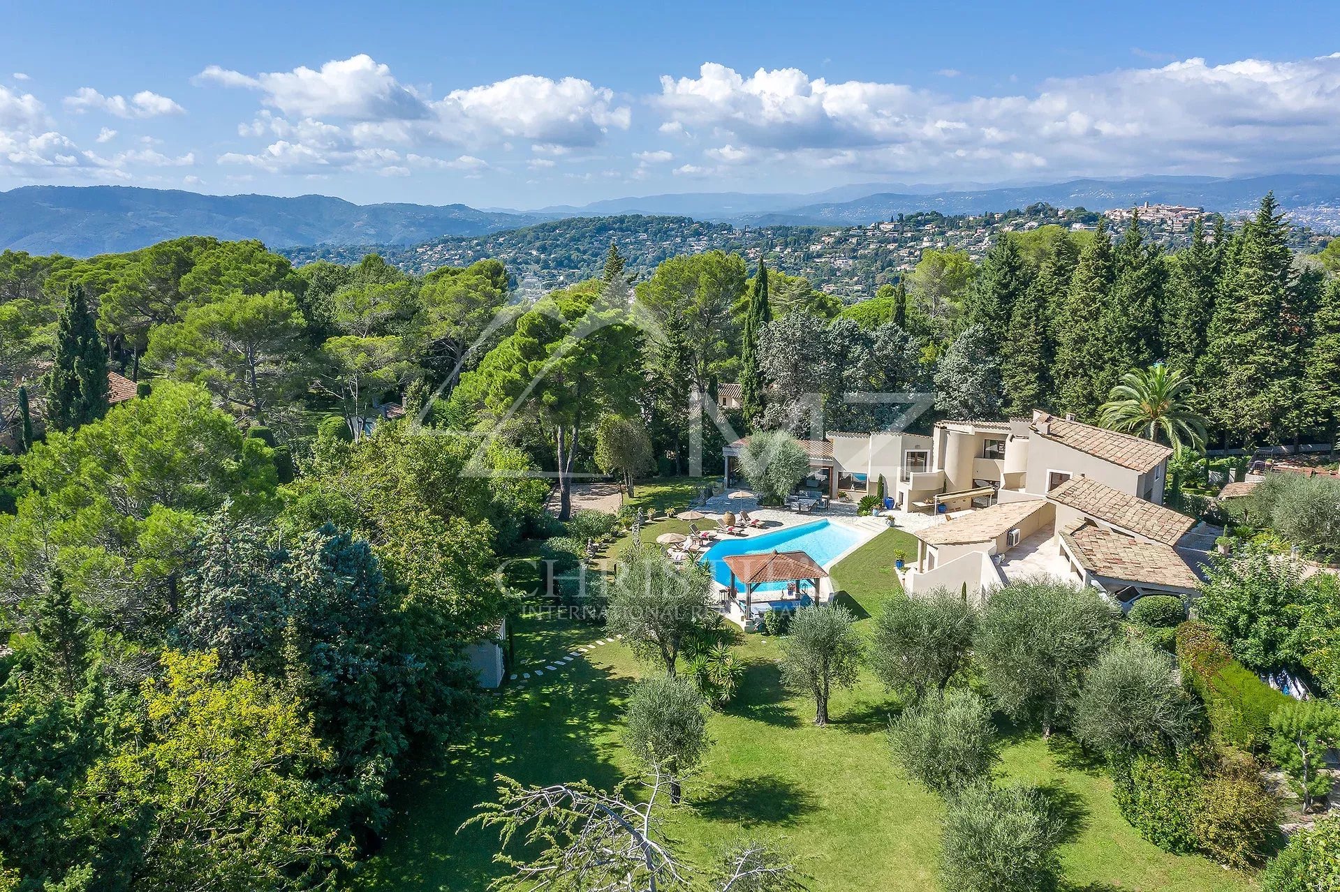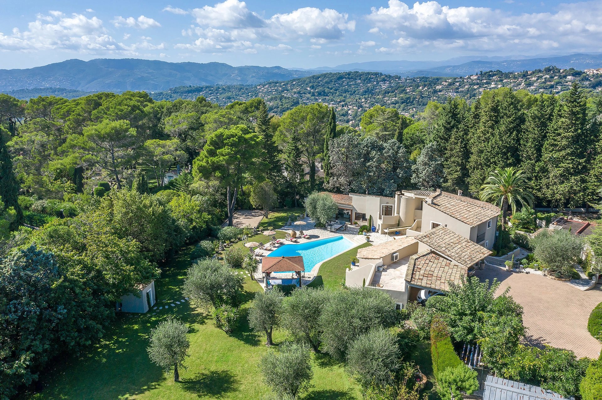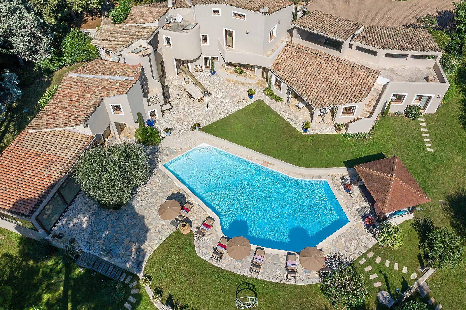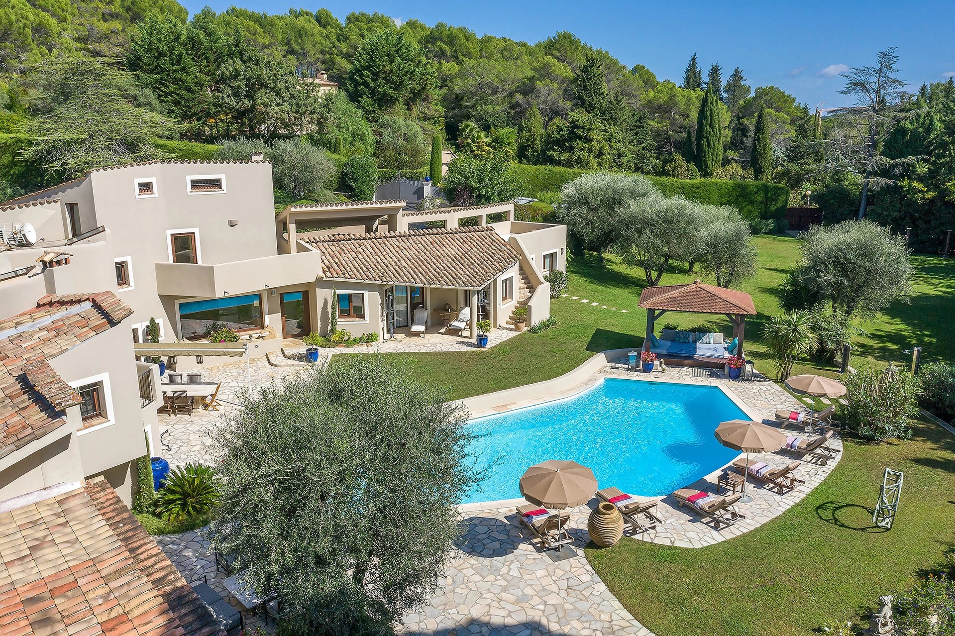 Located in one of the most residential areas of Mougins, in a quiet and green environment, this remarkable villa set on a magnificent flat land of 5000 m2, is a beautiful family and vacation home with 6 bedrooms en suite in the main house + 1 guest apartment with its own terrace. Numerous bright reception rooms and large and beautiful semi-professional equipped kitchen. The outside spaces will make the beautiful part to the convivial moments of relaxation with big terraces, a wooden pergola, a big heated swimming pool, a hammam and a pétanque court. Carport for 4 cars.