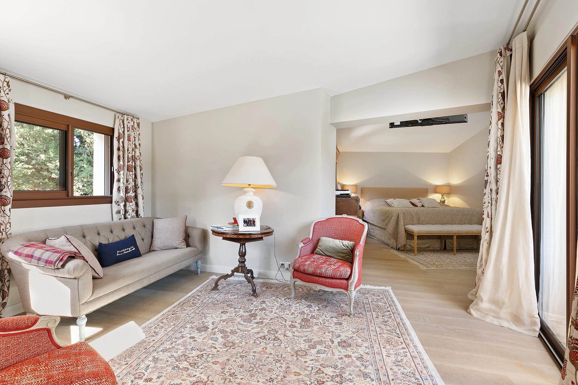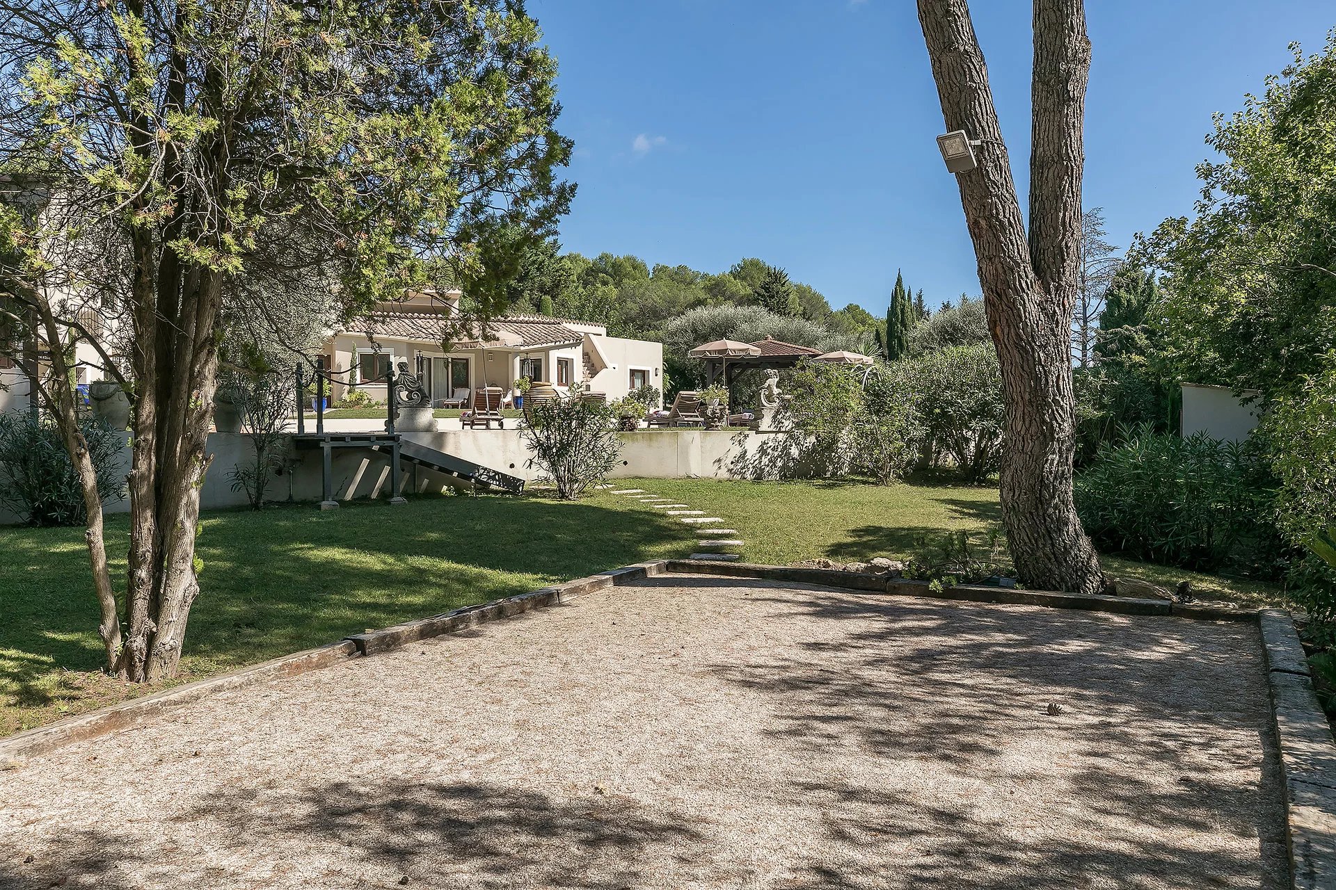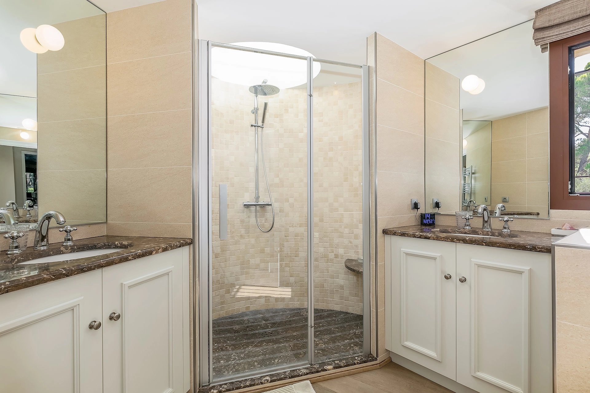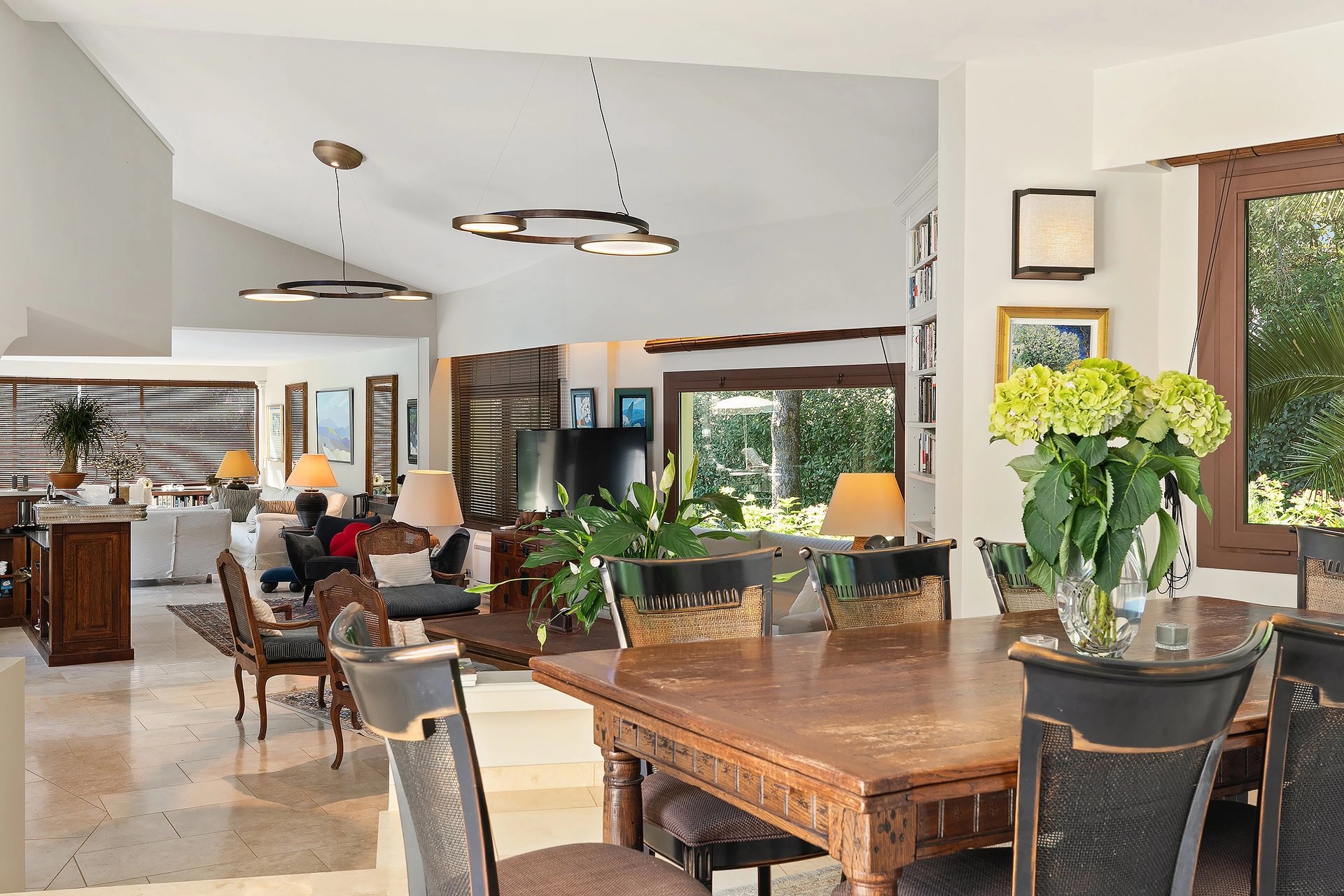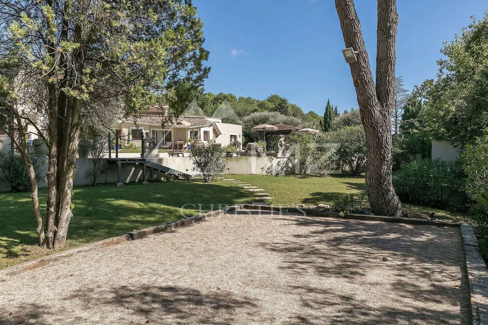 Located in one of the most residential areas of Mougins, in a quiet and green environment, this remarkable villa set on a magnificent flat land of 5000 m2, is a beautiful family and vacation home with 6 bedrooms en suite in the main house + 1 guest apartment with its own terrace. Numerous bright reception rooms and large and beautiful semi-professional equipped kitchen. The outside spaces will make the beautiful part to the convivial moments of relaxation with big terraces, a wooden pergola, a big heated swimming pool, a hammam and a pétanque court. Carport for 4 cars.