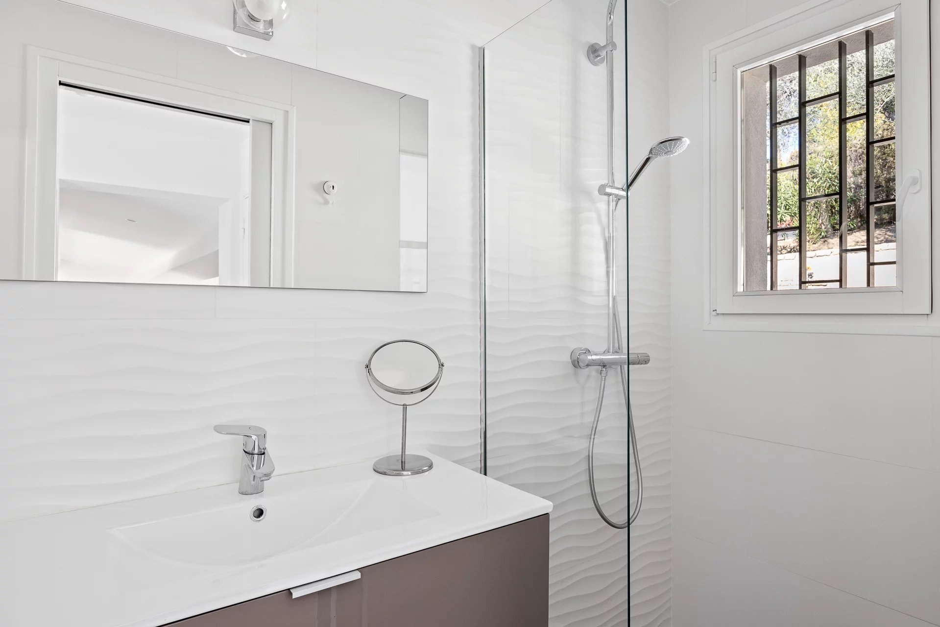 Located in a closed domain, 5 minutes driving to the village of Mougins, this property of approx. 200sqm on 3 levels has been fully renovated. Mediterranean land of approx. 1700sqm with restanques. Panoramic views over the surrounding hills, the Estérel mountains and the village. 4 double bedrooms and their bathrooms. An additional nice terrace located on the 1st floor with an amazing view.