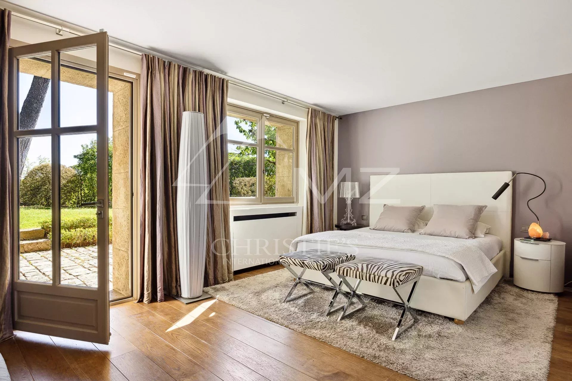 Sole agent. In a gated estate with tennis court, few steps away from the shops, superb Mas from the 18th of around 545 sqm built, combining the charm and the authenticity of a Provencal property with the comfort of a contemporary interior renovated to very high standards. It offers beautiful reception rooms as well as 5 bedrooms, each with ensuite bath or shower room. The independent guest apartment is composed of a living room with kitchen as well as a bedroom with shower and dressing room. Very pleasant flat and landscaped garden with swimming-pool and beautiful views of the old
