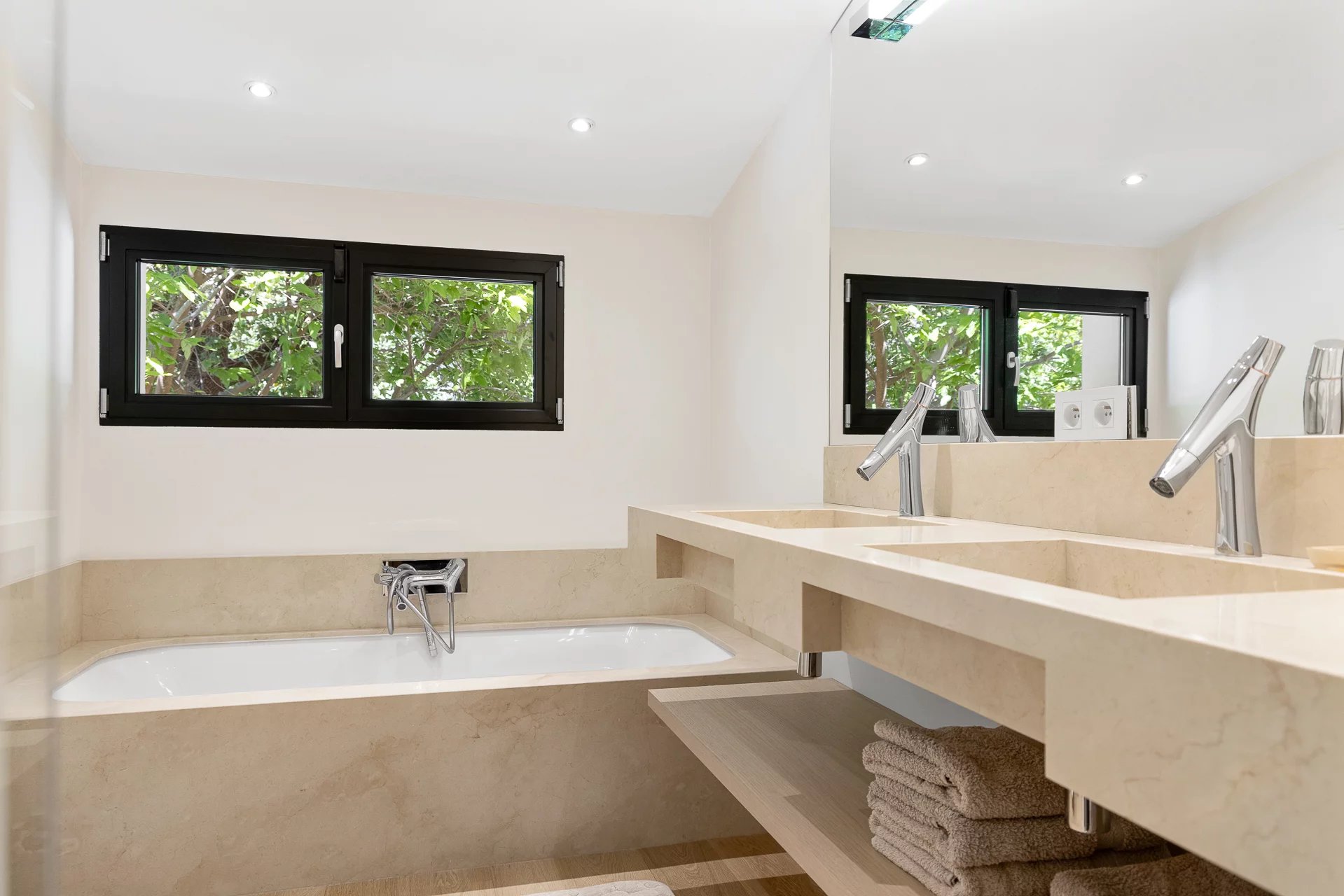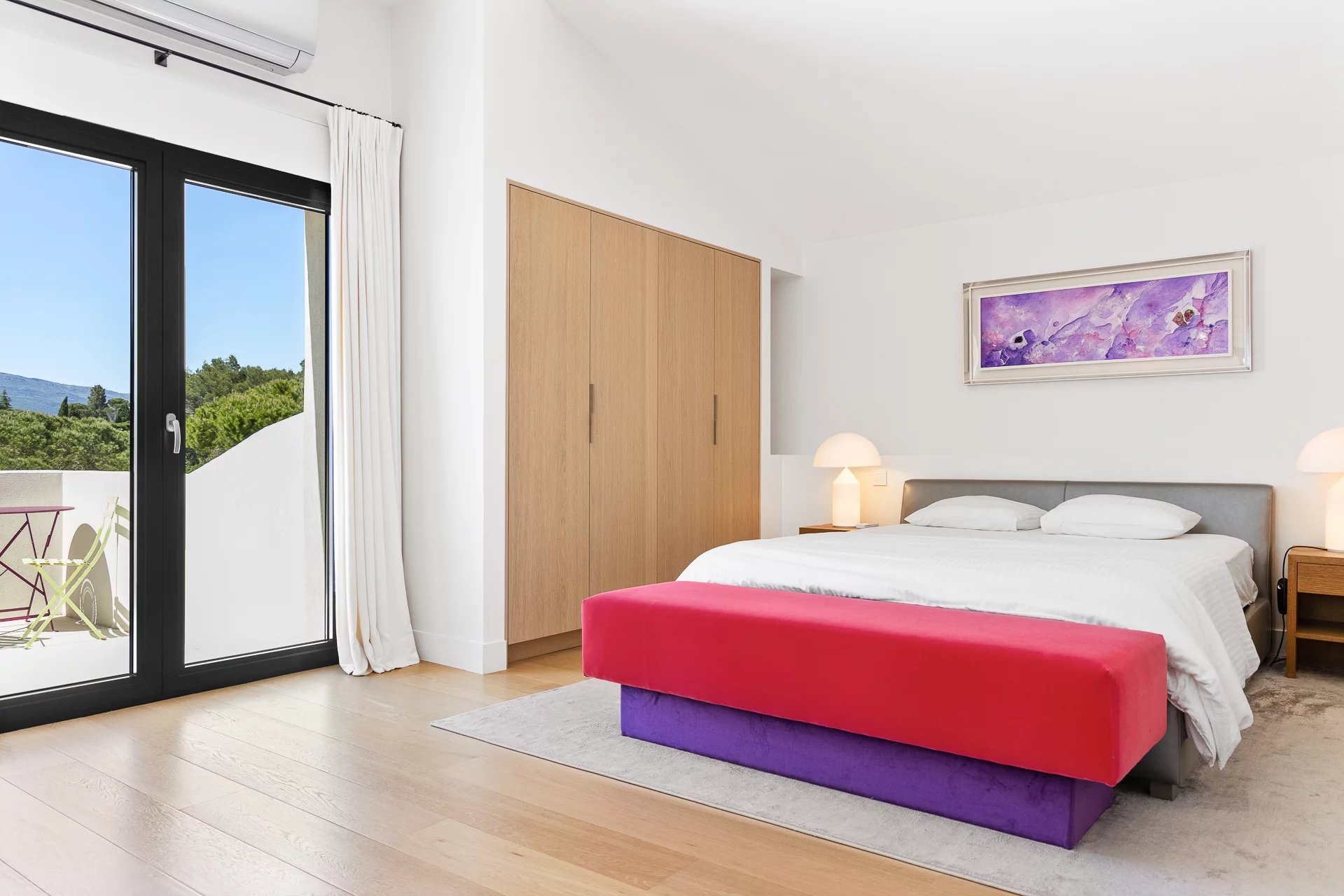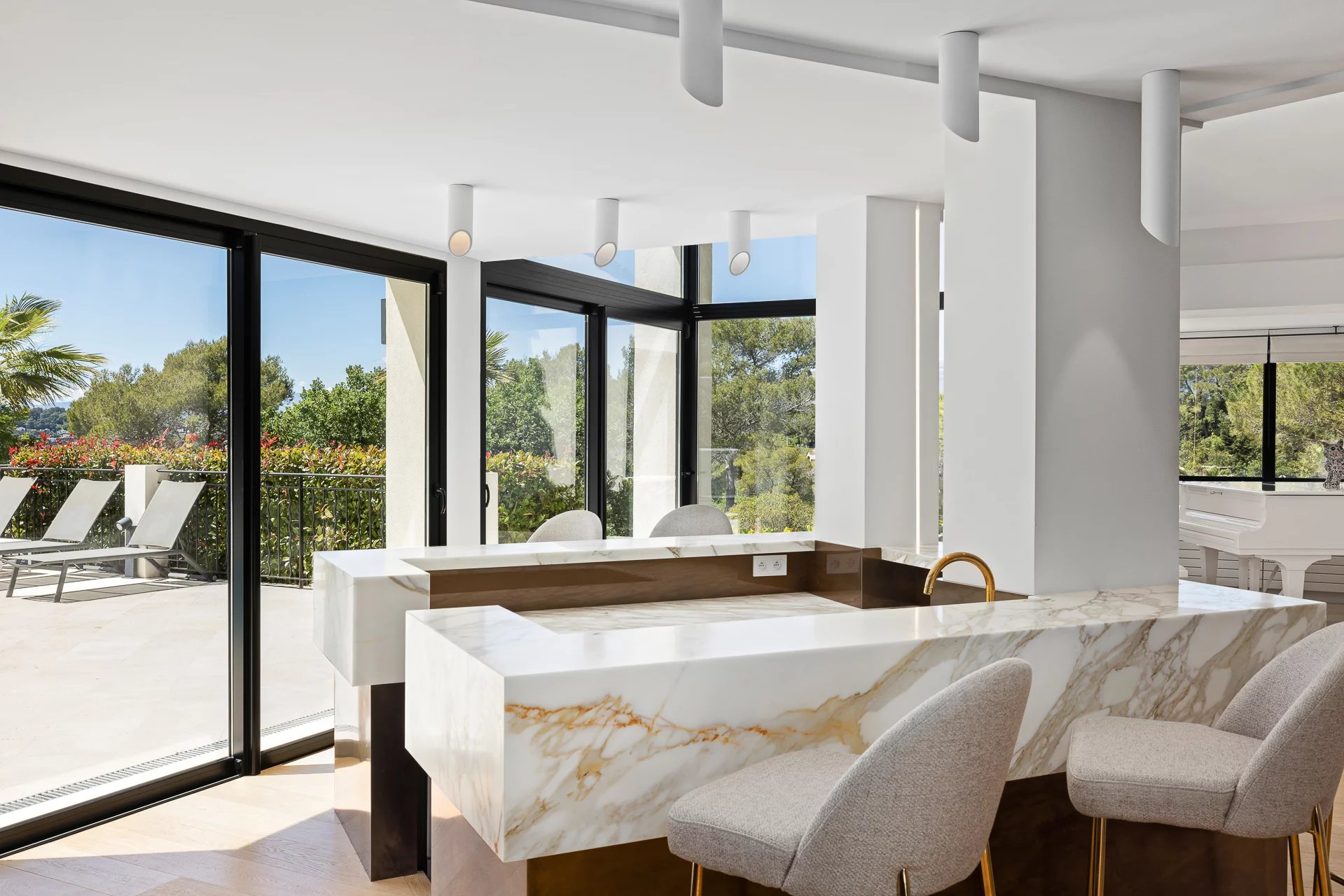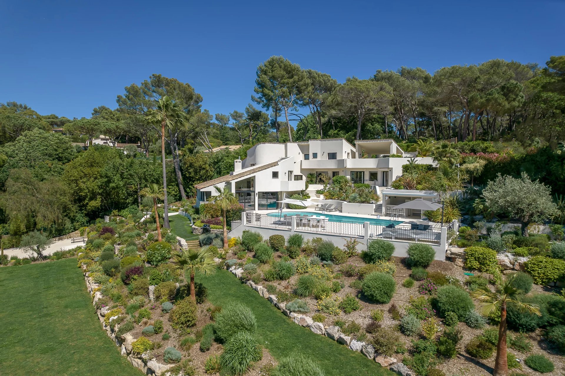 Located in a private domain, in a quiet and residential area, this nice villa of 450m2 has a dominant position and offers 5 double bedrooms and their ensuite bathrooms. Open views over the surrounding hills and old village of Mougins. Tastefully decorated and furnished with high quality furniture, this property also offers several indoor and outdoor lounge areas with its triple reception room opening onto the pool and several fitted terraces. Salted heated pool of 17m. Pool house with a bar, shower and toilet.