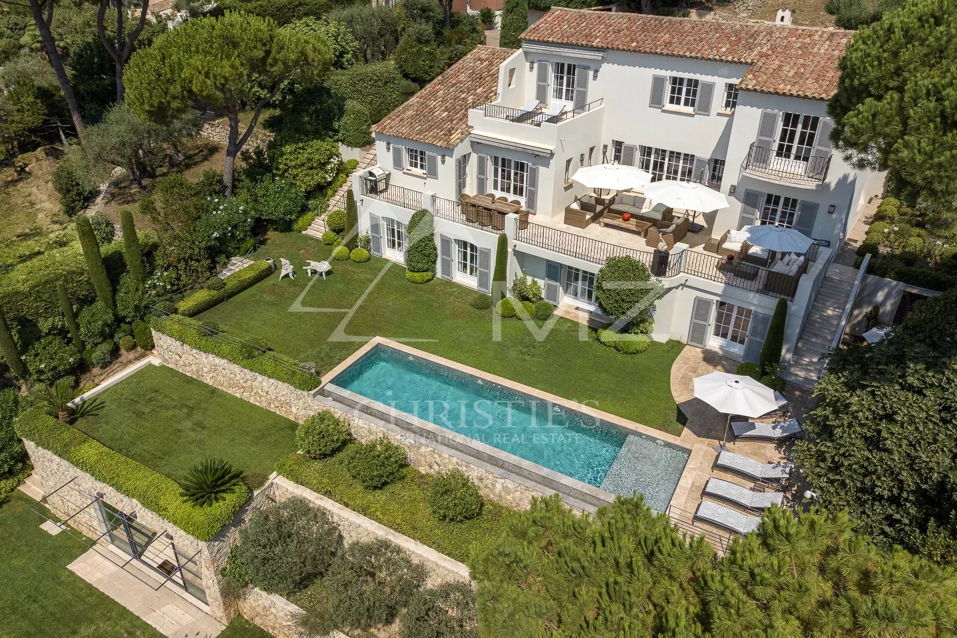 The life of a charming Provencal village with its restaurants and art galleries, while enjoying spectacular views over the bay of Cannes and Mandelieu. This is the fabulous promise of this superb modern Provencal-style property, entirely renovated with top-quality materials. With a surface area of approx. 450m2, it offers all the amenities you would expect from a Côte d'Azur residence: bright, spacious rooms with a large living room, library lounge, dining room, master suite opening onto a south-facing terrace, a guest bedroom with ensuite bathroom and Juliet balcony, 4 bedrooms (including one currently used as an office) each with en suite shower room leading out onto the garden, wine cellar, cinema lounge, gym and caretaker's accommodation.