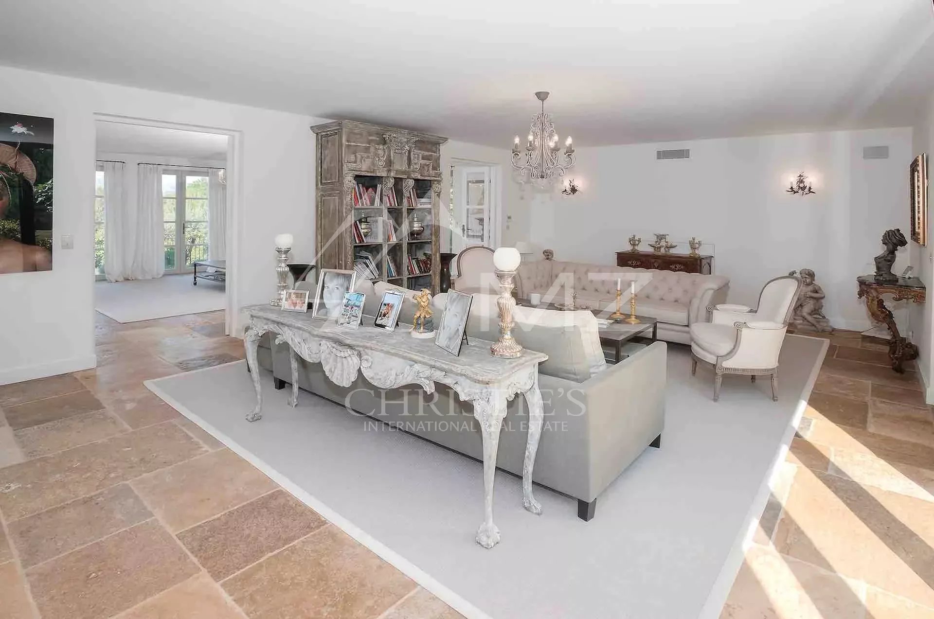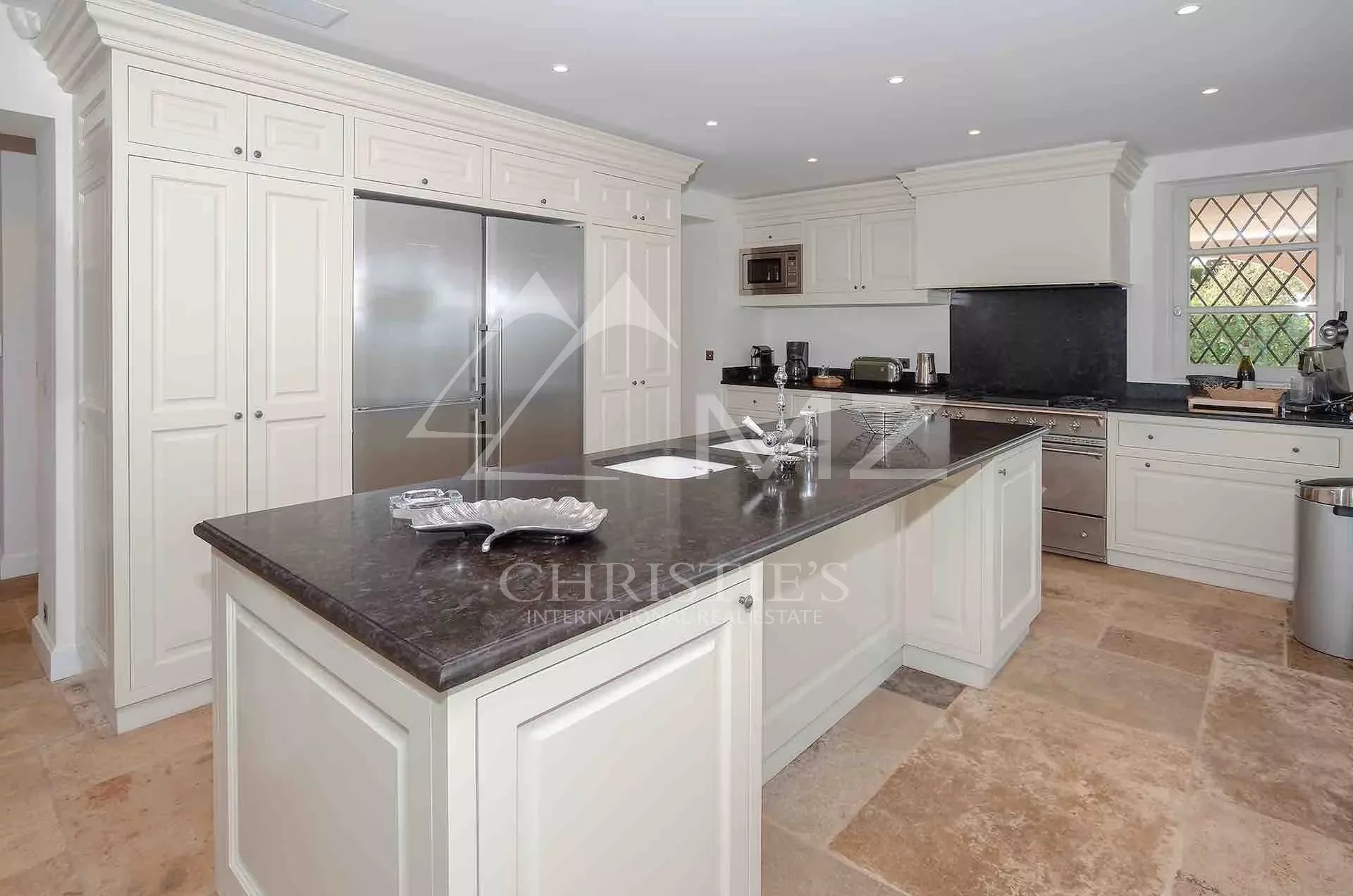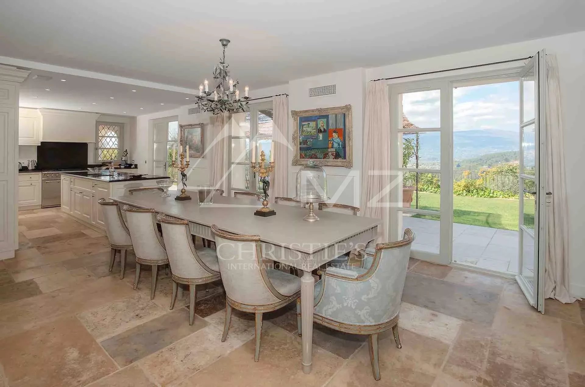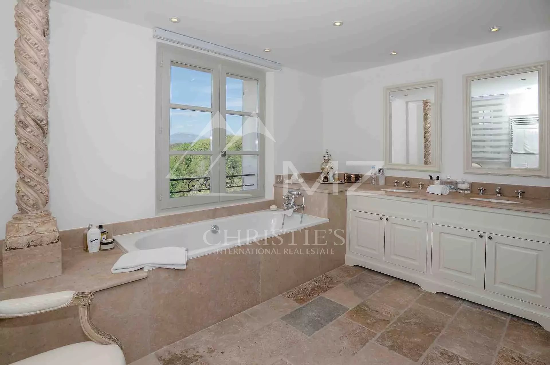 Located within walking distance from the village of Mougins, this superb property enjoys a calm and residential environment. Entirely refurbished, it offers 5 en-suite bedrooms, a heated swimming pool and a tennis court.