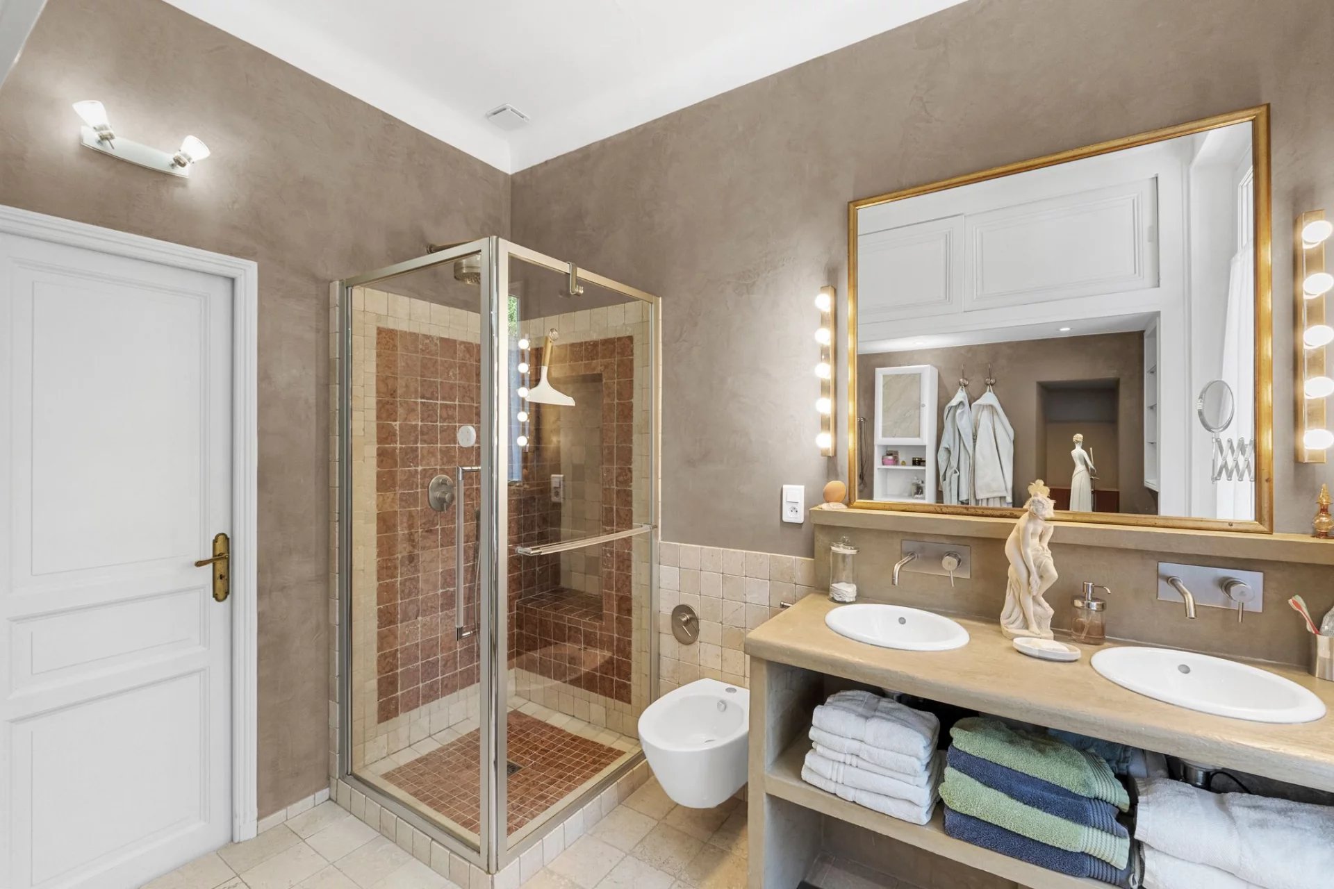 Upstairs, five welcoming bedrooms are arranged around three beautifully finished bathrooms, as well as a dressing room. Outside, the Provençal art of living takes on its full meaning with its rock garden dating from the beginning of the 20th century: a traditional heated swimming pool (10x4 m) with pool house, a pétanque court, a closed garage, a parking space with electric charging station, as well as a charming registered stone outbuilding offering numerous development possibilities.