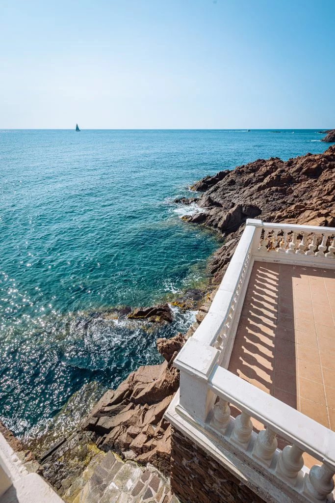 Superb Art Deco-style waterfront villa with approximately 262 sqm of living space on 2 levels, comprising 4 bedrooms and boasting magnificent panoramic sea views. Set in approximately 732 sqm of land. Ideally located in the heart of the Estérel corniche, built on a rocky spur that juts out into the Mediterranean. Direct access to the sea, inviting you to go for a swim or join your boat for a trip to the Lérins Islands or Saint-Tropez. With independent studio, swimming pool and solarium. To renovate in order to meet today's taste. 5 minutes from Agay shops, close to Cannes-Mandelieu airport and 45 minutes from the Croisette.