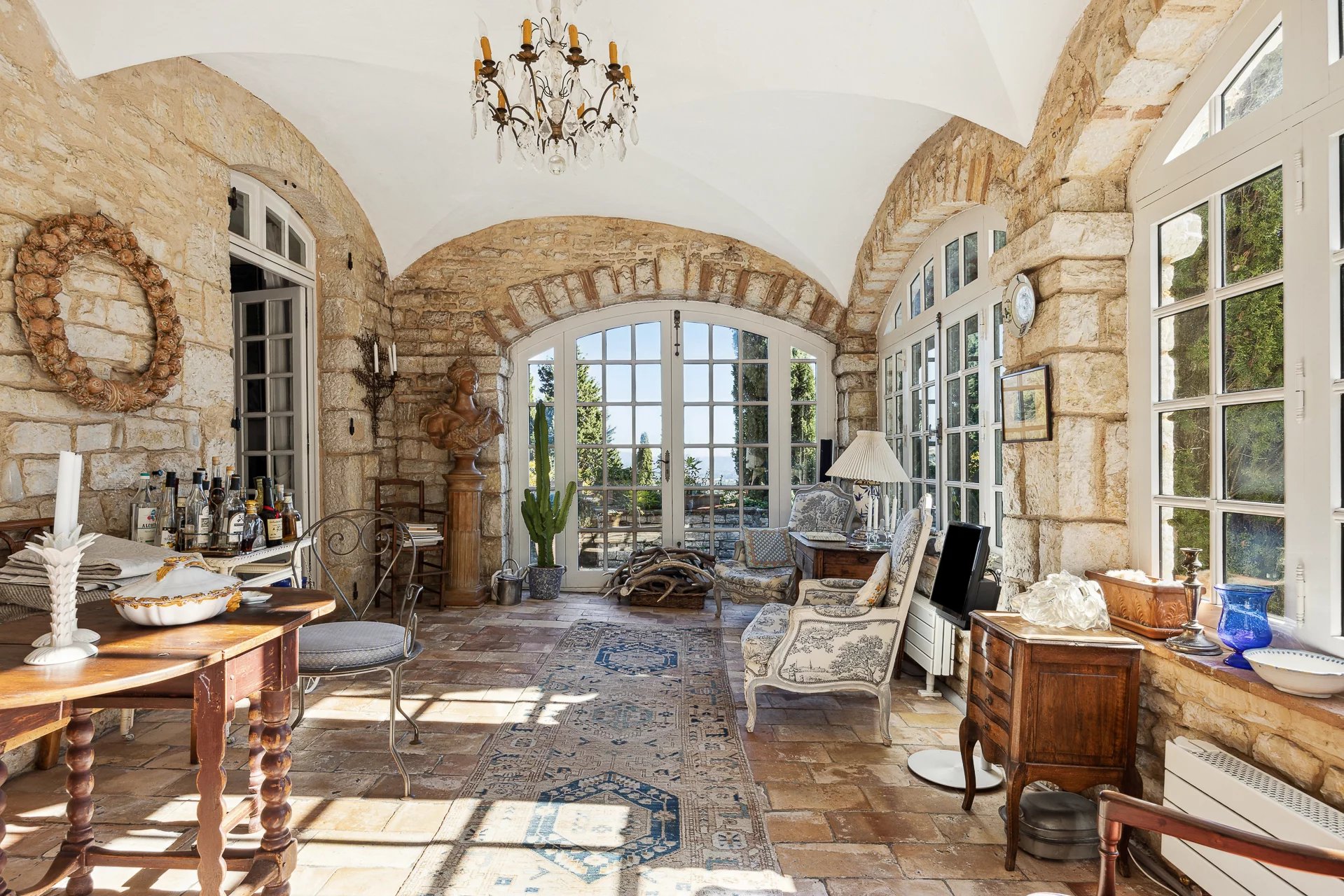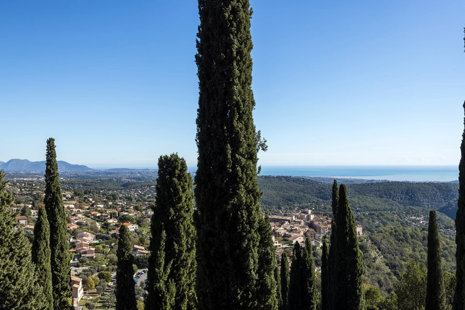 In a dominant position, walking distance to the village of Tourrettes-sur-Loup and nestled in the heart of a 3-hectare park with over 265 olive trees, this stunning and superb Svetchine masterpiece offers breathtaking panoramic views over the village of Tourrettes-sur-Loup and the sea, from Saint-Jean-Cap-Ferrat to Cap d'Antibes.